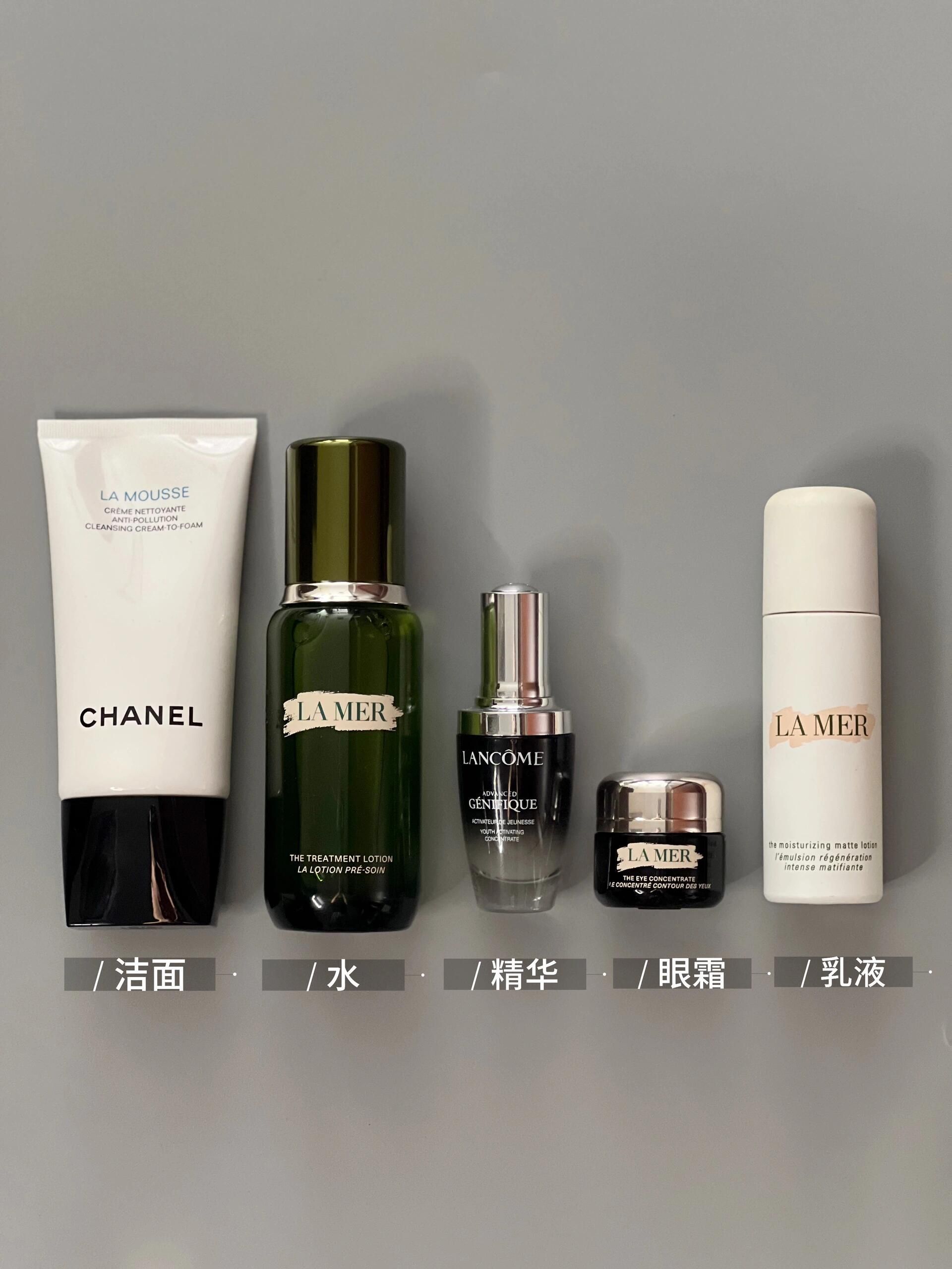 我的年度爱用好物终于来啦 今天分享的是我自用很多空瓶的 可以说真的是心头爱了 适合绝大多数男生的肤质 我的皮肤属于混油 T区出油 面颊偏干 - 护肤步骤:洁面-水-精华-眼霜-面霜 - ▪️洁面:Chanel香奈儿山茶花洁面 ▪️水:Lamer海蓝之谜精粹液 ▪️精华:Lancome兰蔻小黑瓶 ▪️眼霜:Lamer海蓝之谜修护眼霜 ▪️面霜:Lamer海蓝之谜乳液 - 彩妆步骤:妆前隔离-粉底液-...