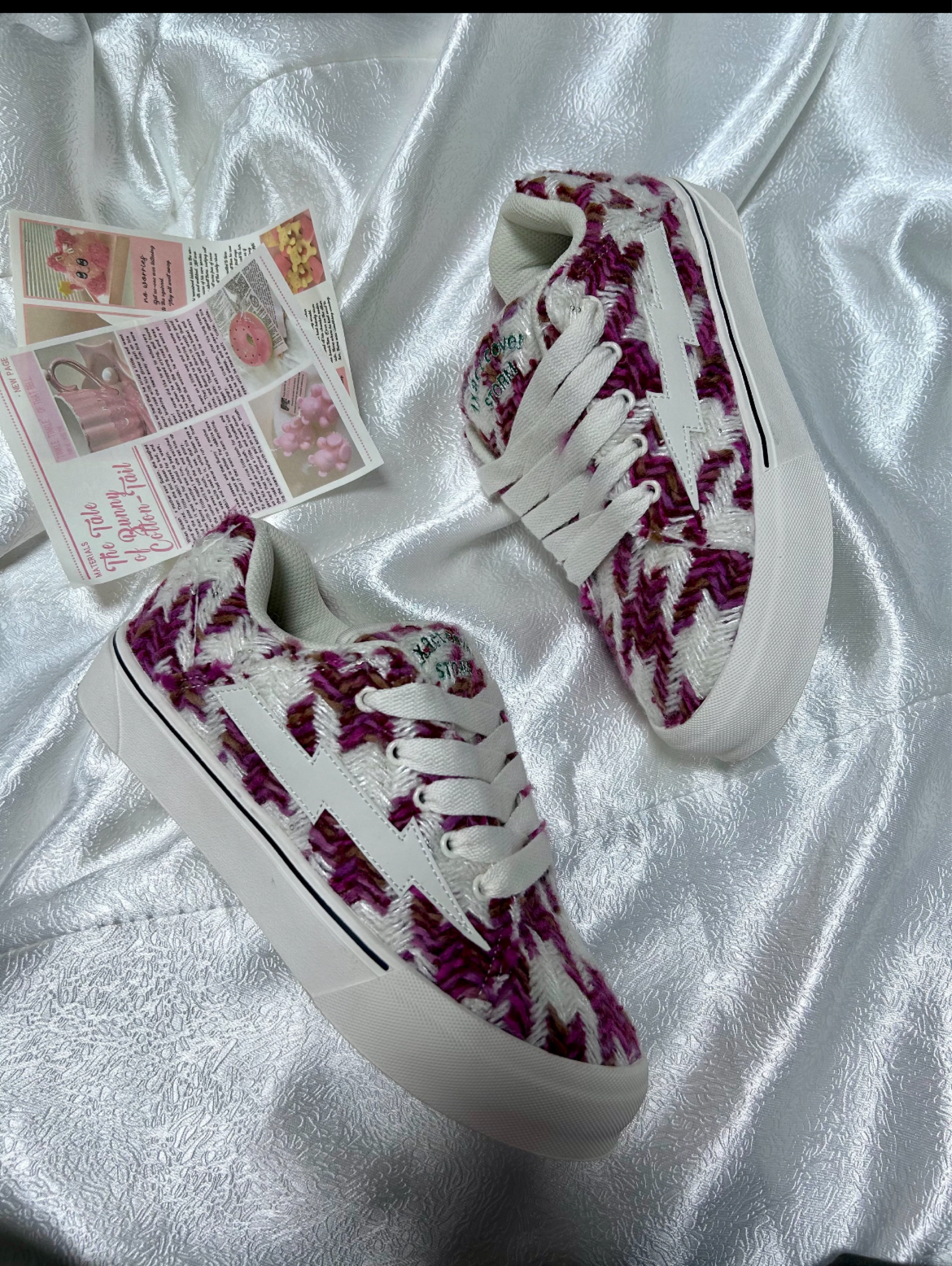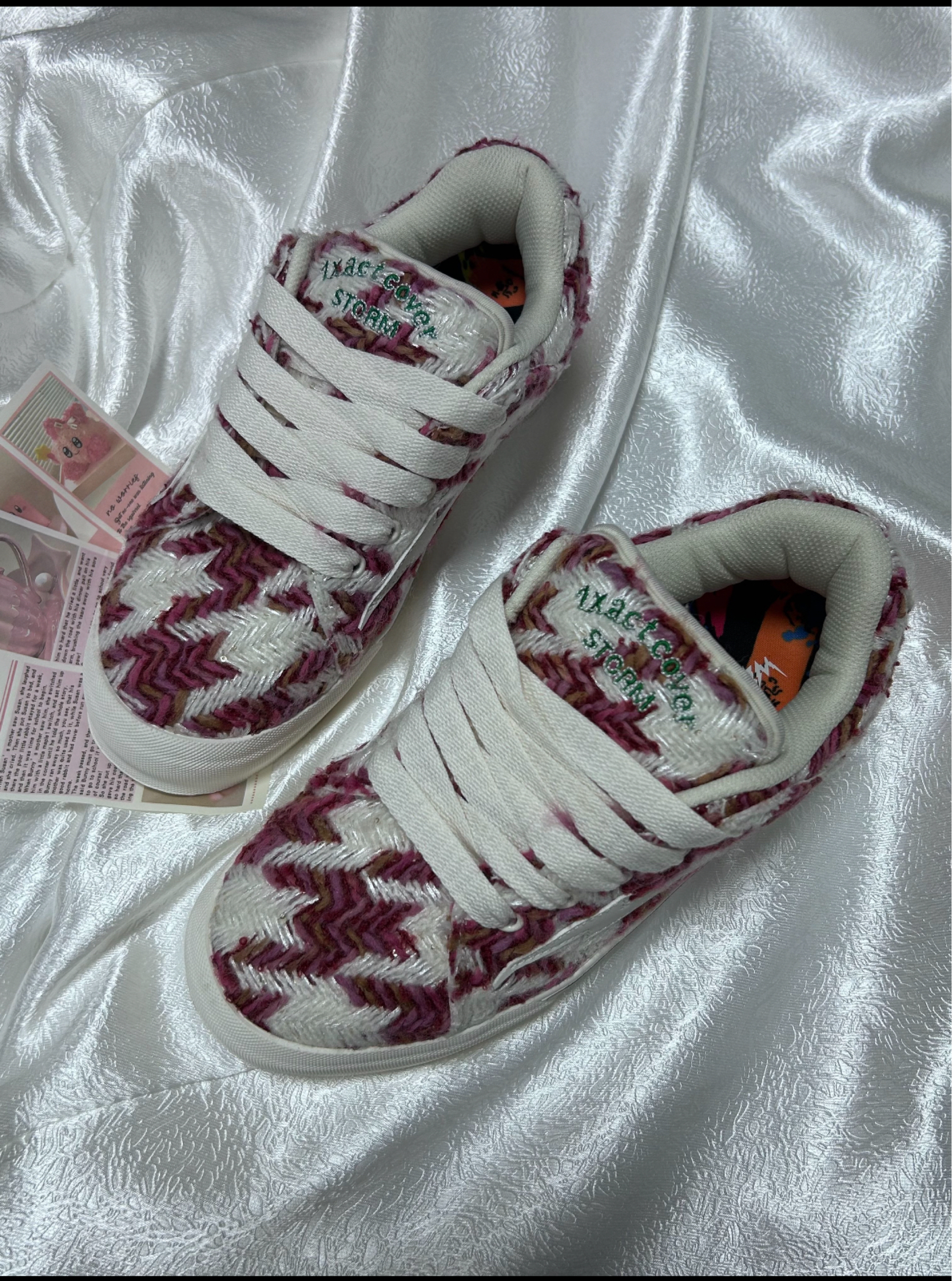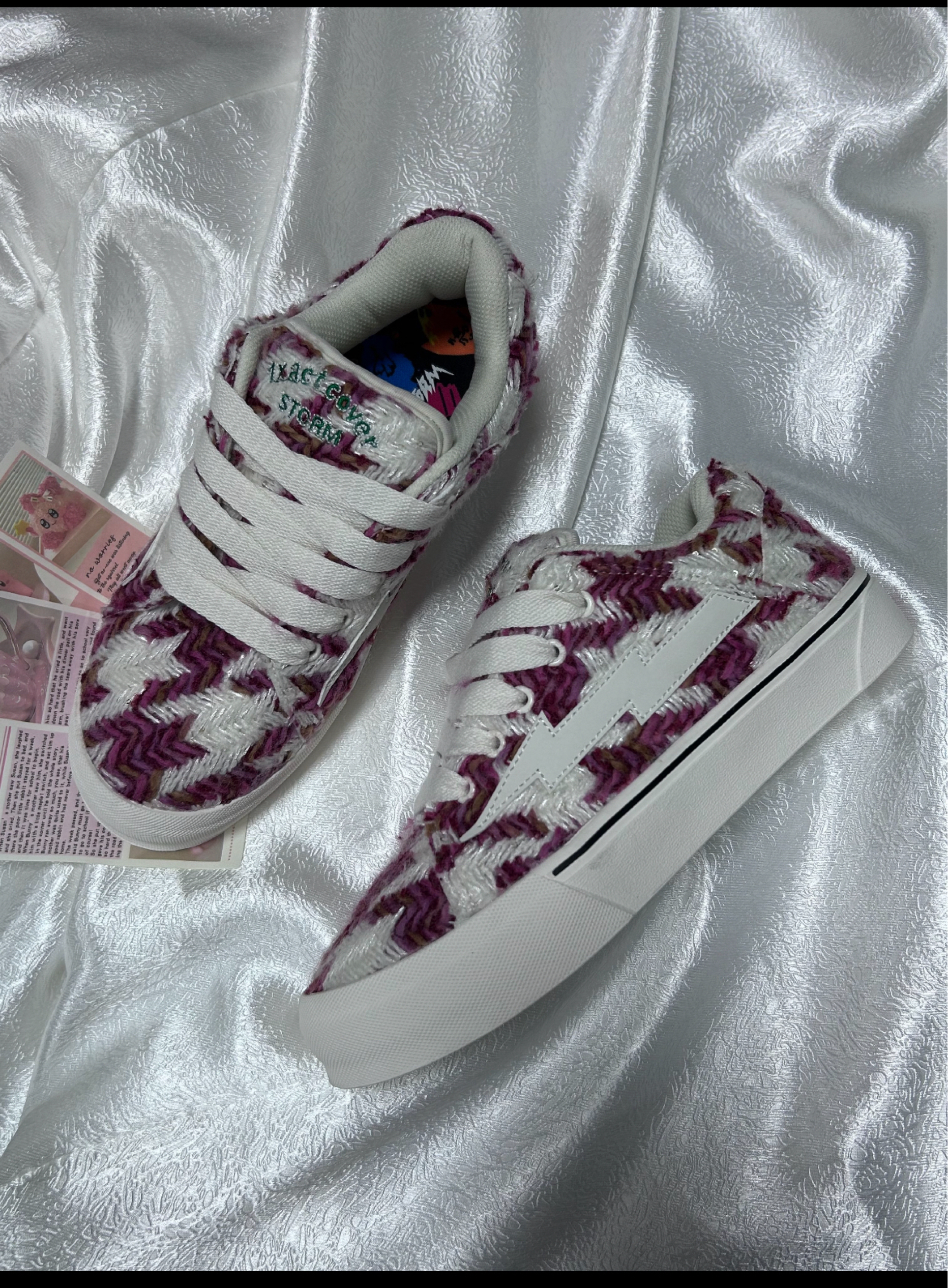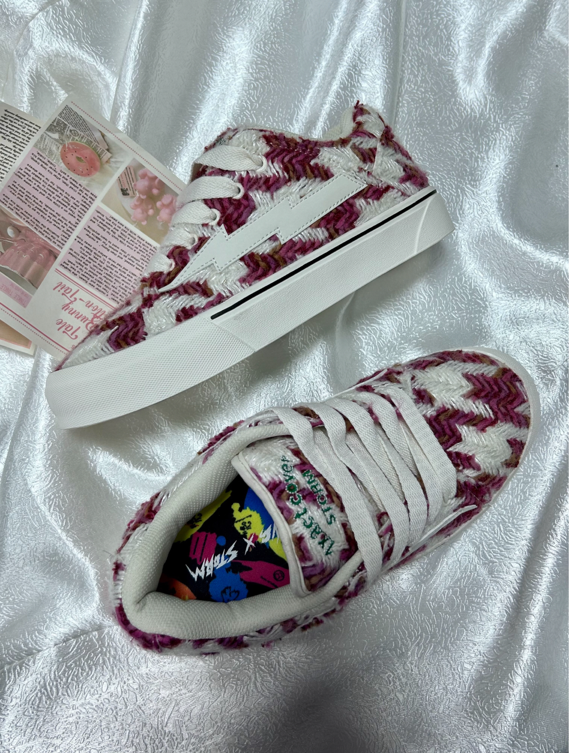 刷到Lightning X Storm×毕加索联名款时,手指直接戳进购物车! 葡萄红撞黑色线条太绝了,复古感直接拉满,低帮版型衬得脚踝细细的,偷偷藏的内增高刚好垫出3cm,小个子穿直筒裤也能有“三七分”比例✨ 鞋面软乎乎像踩云朵,透气网布夏天穿不闷脚,周末踩滑板、逛文创市集全靠它,鞋底防滑又软弹,暴走一下午脚后跟也不磨~ 39码脚感正正好,现在出门不用想搭配,套上牛仔裤卷个边,随便拍都有那种“没刻...