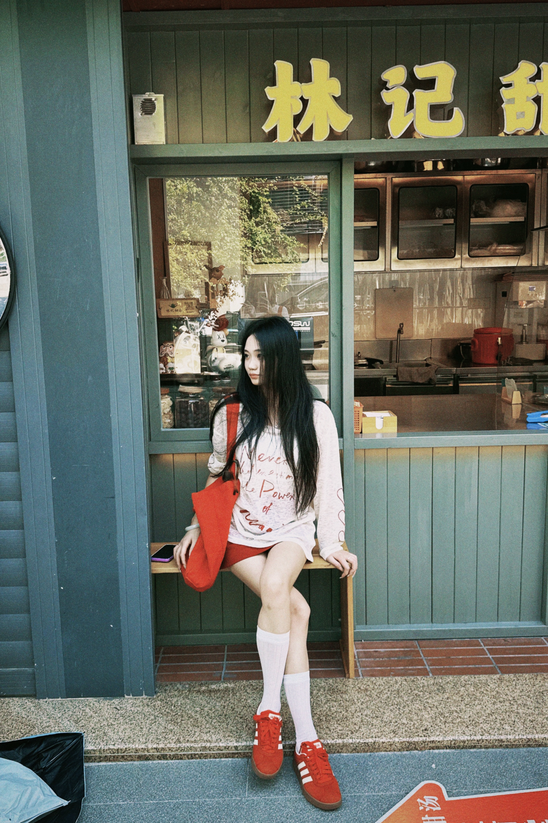 多巴胺的一天👣 这一套搭红色包包真的好出片!! 拍照位置很多,都可以出片~