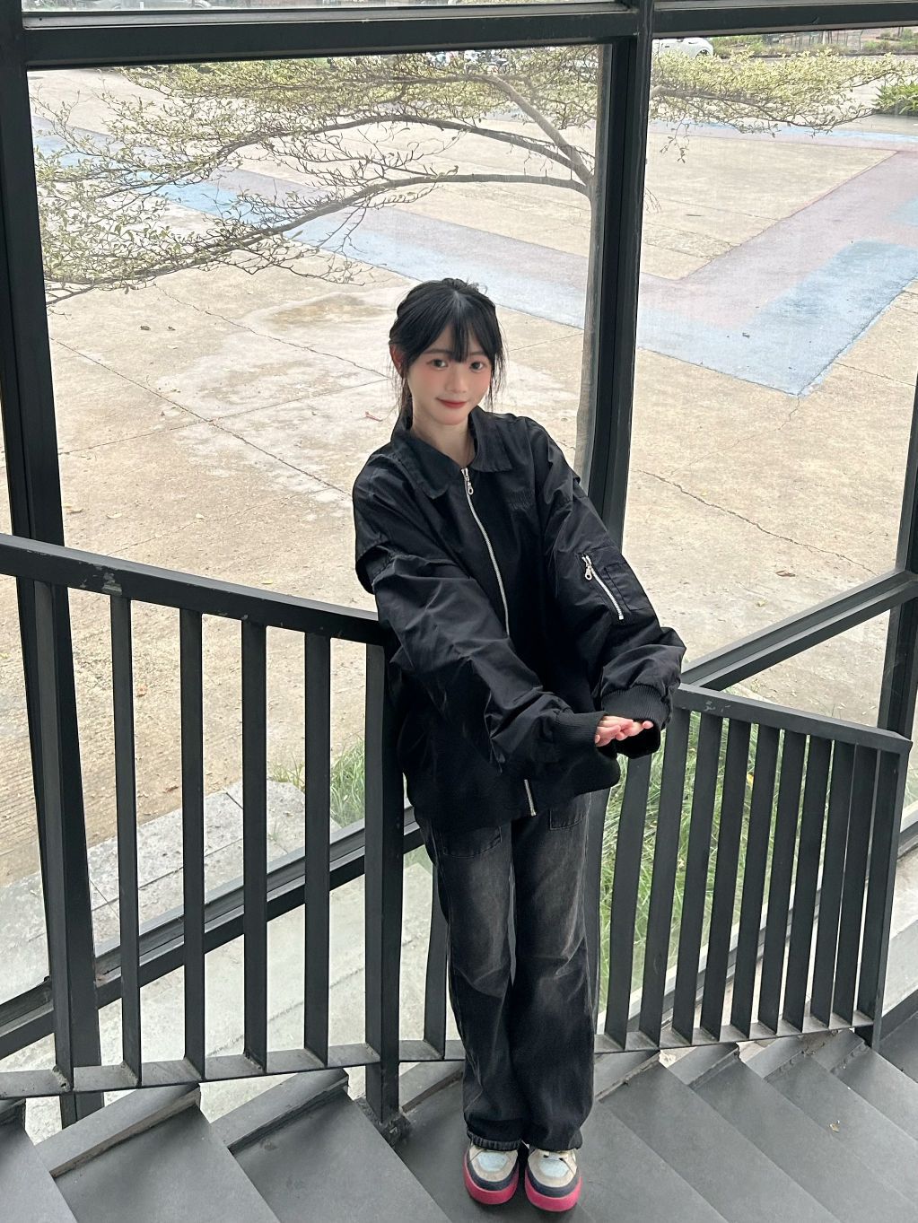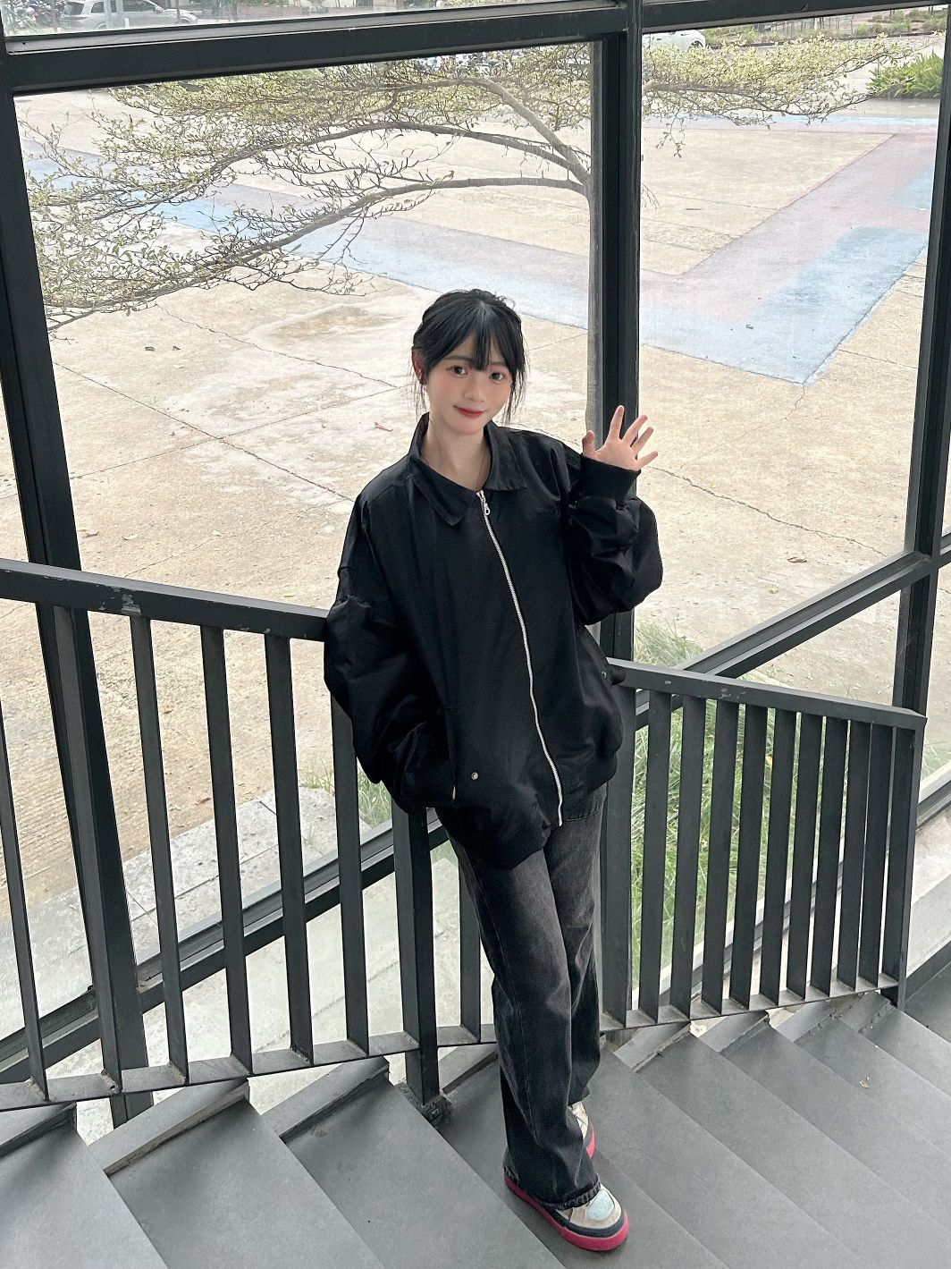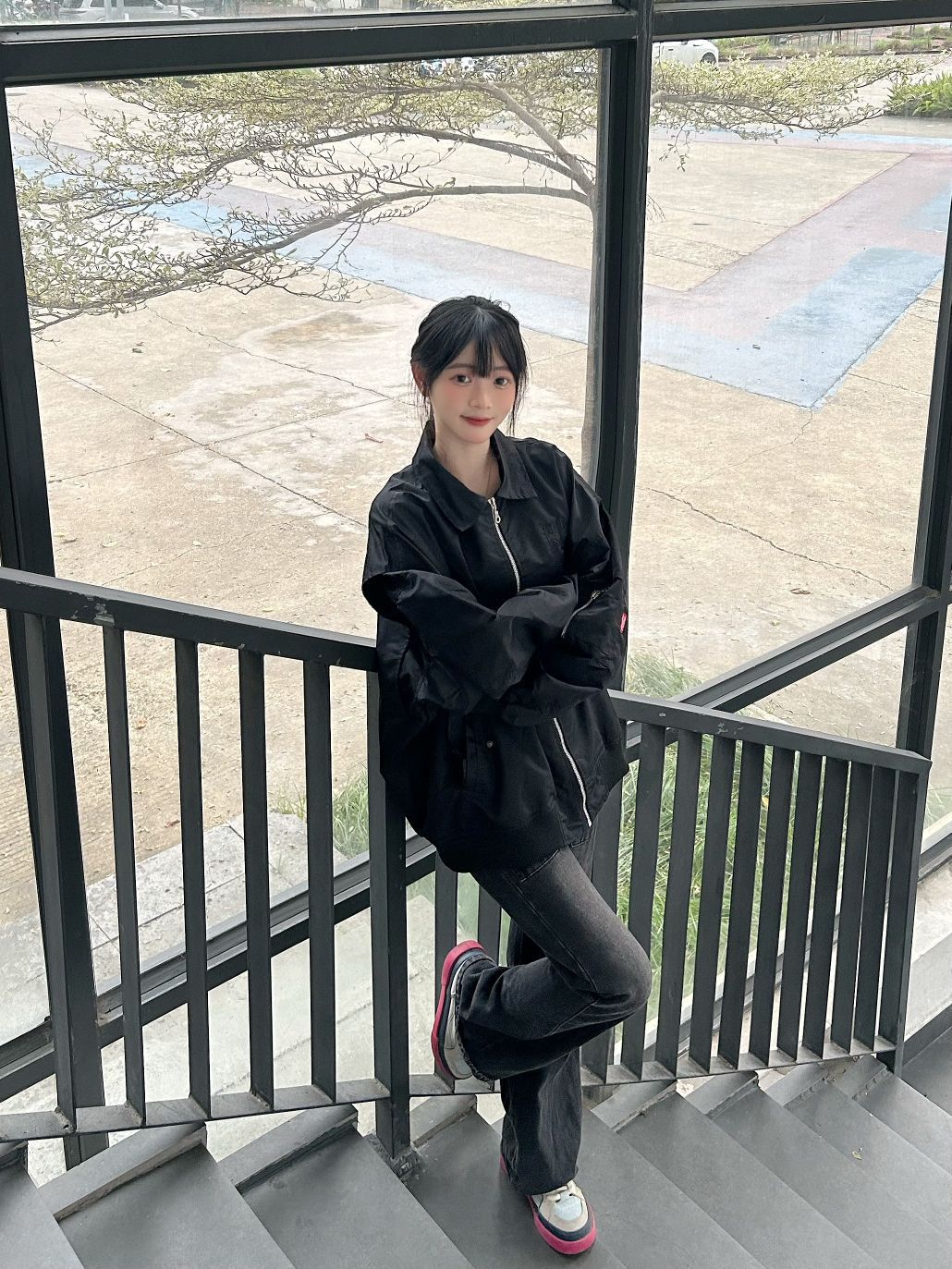 哈喽,家人们,今天的第一套穿搭分享来喽,是一套入秋学院休闲风穿搭~ 上半身: 黑色拉链蝙蝠袖外套 下半身: 黑色直筒牛仔裤+白蓝色低帮板鞋 入秋学院休闲风穿搭get~ 穿搭借鉴:160、90 衣服:m 裤子:m 鞋子:36