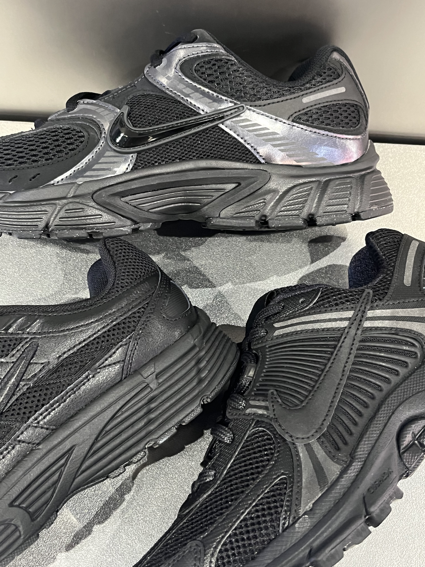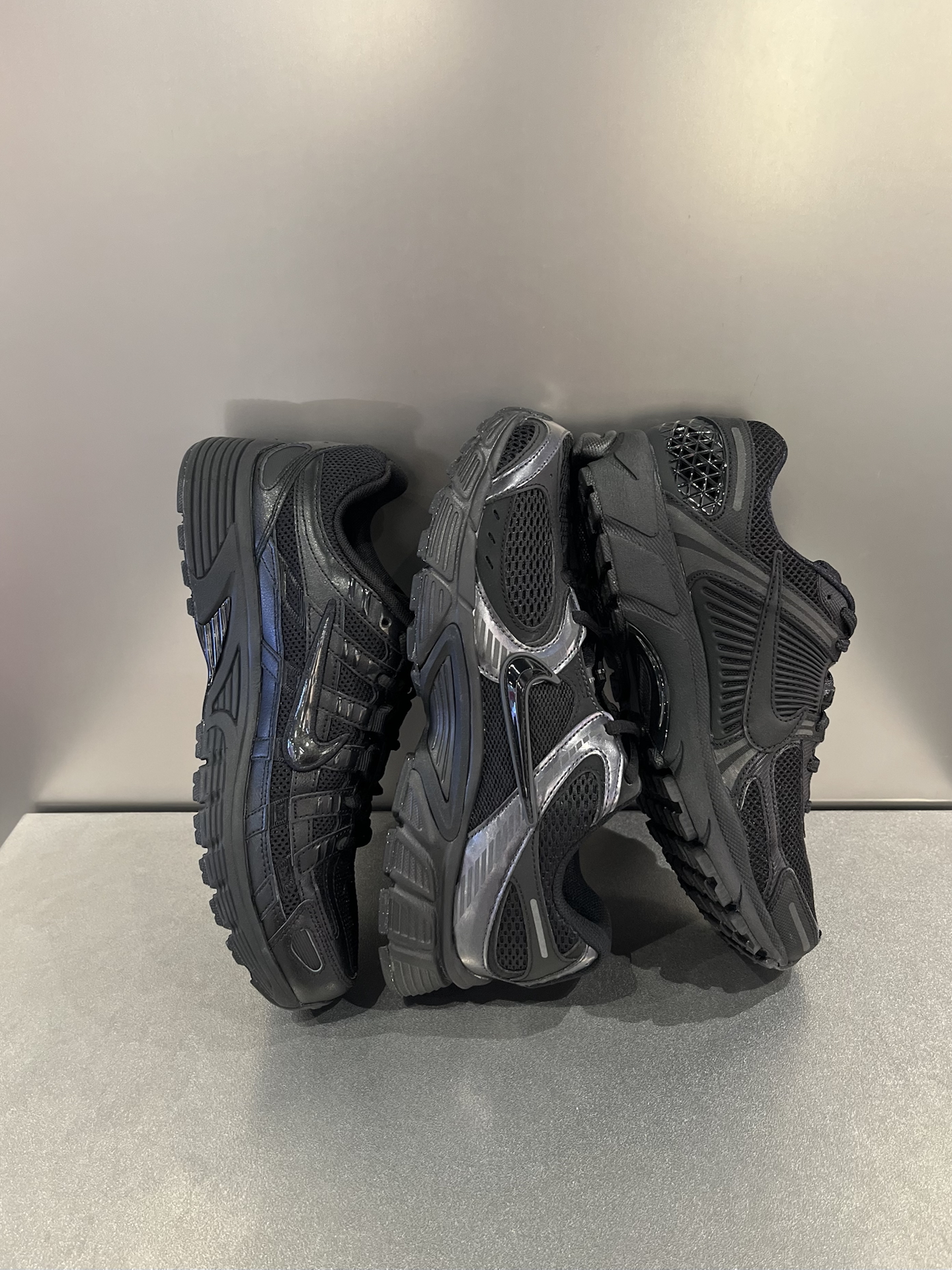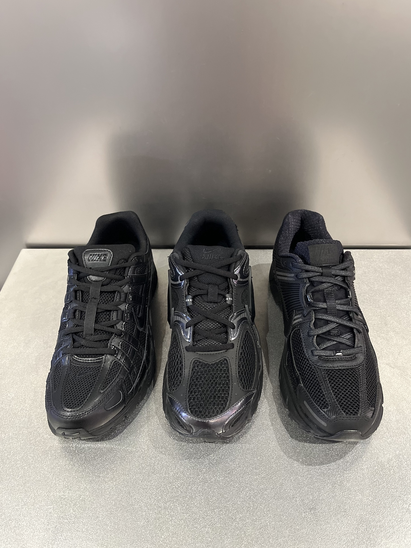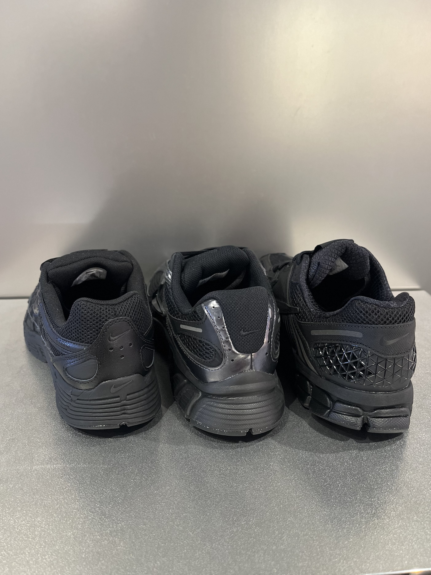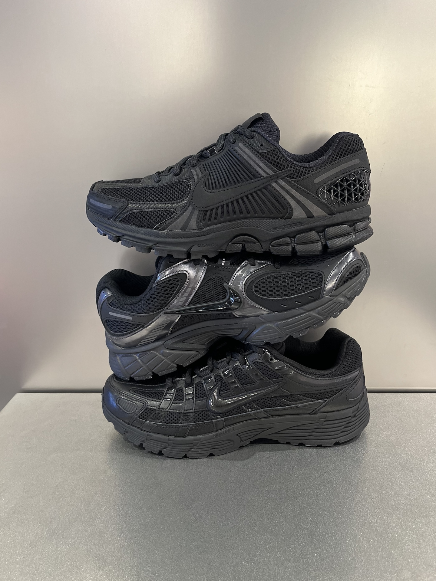 三双黑武士老爹鞋放一起,远看都差不多,但细看的话,区别还是很明显的: Vomero 5:带气垫的脚感,舒适度比较好;同样是网布鞋面,透气性不错;黑色偏哑光,勾子比较低调,日常穿搭真的很好配。 P-6000:重量轻,上脚没太大负担;厚度和V5差不多,但脚感偏平,整体更简洁一些。 V5 RNR:个人感觉脚感可以排第二位,会比P6000舒服,整体很有层次感~ 三双都是纯黑色复古鞋,耐看又很好搭衣服...