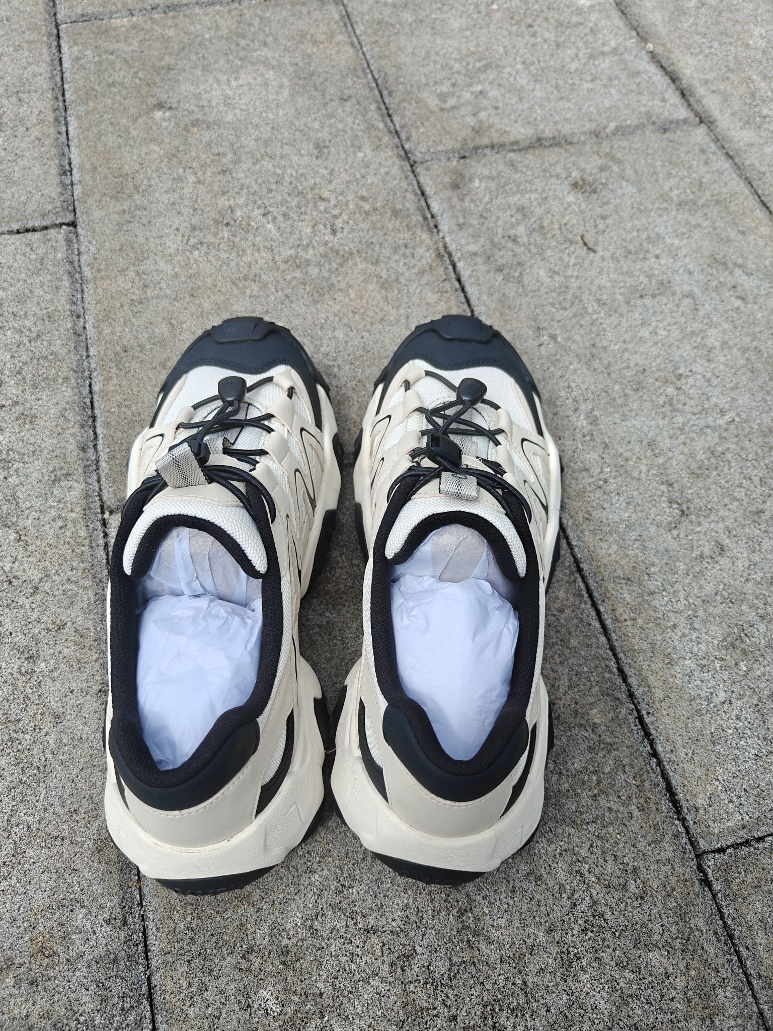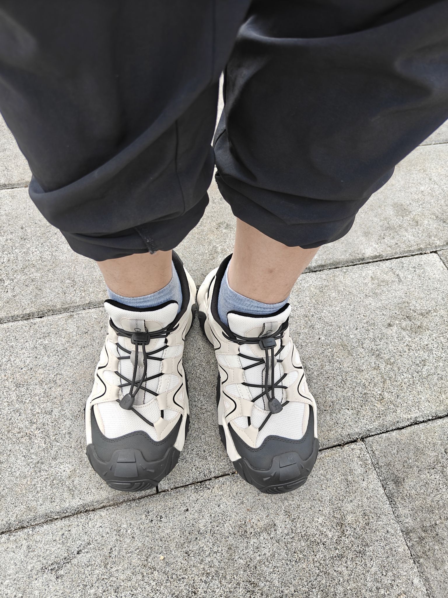先看外观,米黑撞色很有设计感,老爹鞋型潮酷吸睛,户外风、日常通勤搭都不违和。 到户外实测性能,鞋底抓地力在线,崎岖路面走起来稳当;鞋面材质耐磨,小石子剐蹭没痕迹。 脚感方面,上脚包裹感挺舒服,久走不累,软弹中底缓冲做得不错。 当然也有小缺点,鞋型偏宽,脚瘦的朋友可能觉得有点空;另外自重稍沉,追求极致轻量化的慎选。 整体来说,颜值、性能、脚感平衡得不错,户外撒野或日常出街,它都能打!...