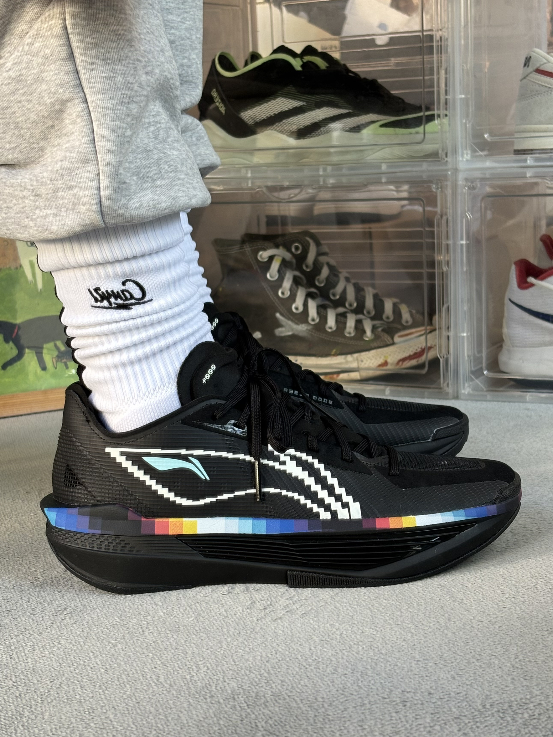 今天分享的这双纯黑色球鞋 上脚很轻很快的感觉 而且质感也很不错 颜值方面有一点点像gtcut 个人觉得性能和颜值都不错 但是有点不明白为什么火不起来