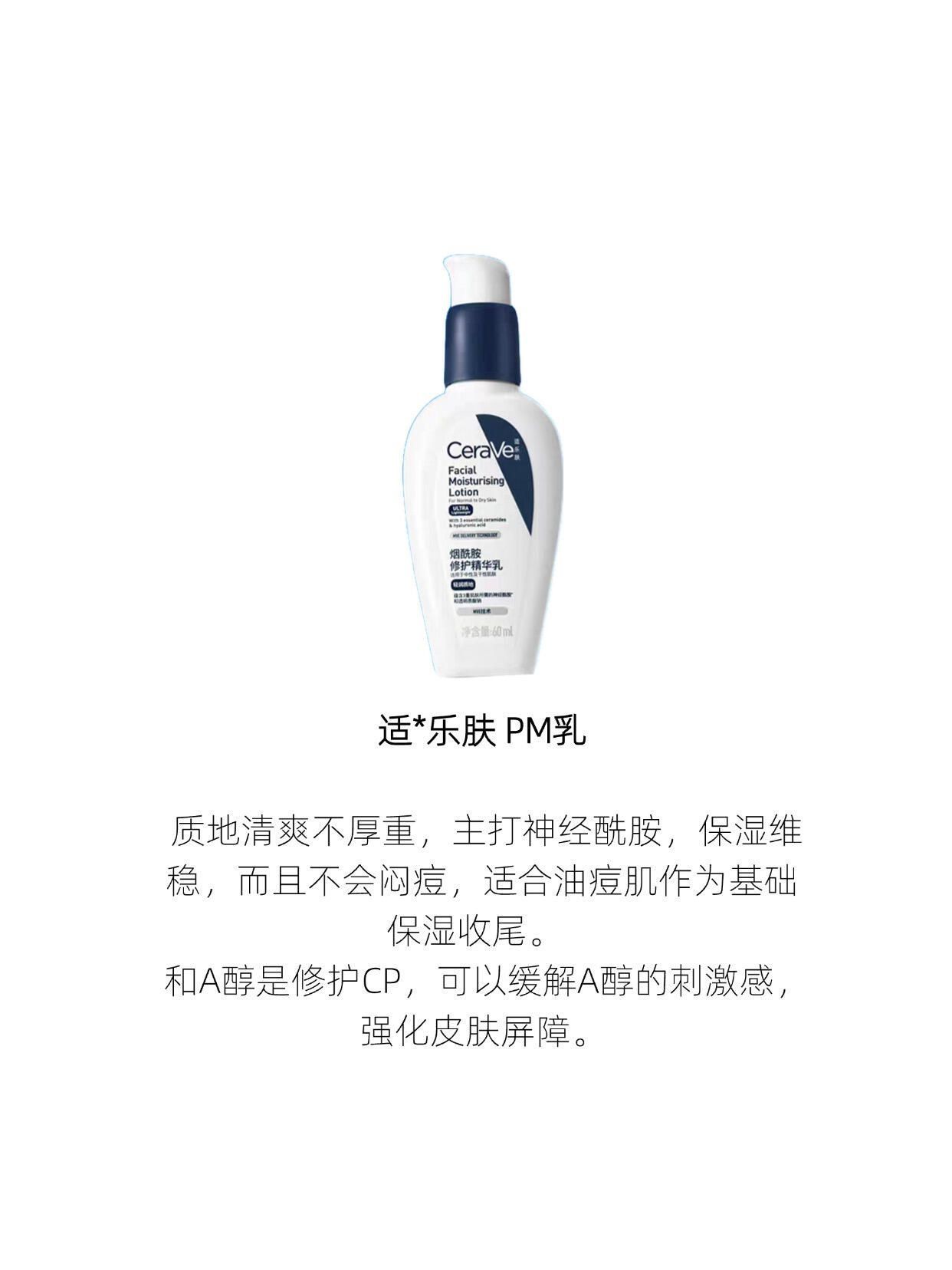 本篇笔记关联了CeraVe/适乐肤 PM乳烟酰胺精华乳液 清爽修护毛孔焕亮肤色 国产版、CeraVe/适乐肤 水杨酸温和嫩肤泡沫洁面啫喱 清洁控油祛痘去闭口去黑头去角质疏通毛孔 法国版0.5%浓度、Neutrogena/露得清 维A醇晚霜 细腻养肤紧致抗皱淡化面部细纹 【1.0】小蓝管等商品,为用户提供真实的使用体验和购买参考。