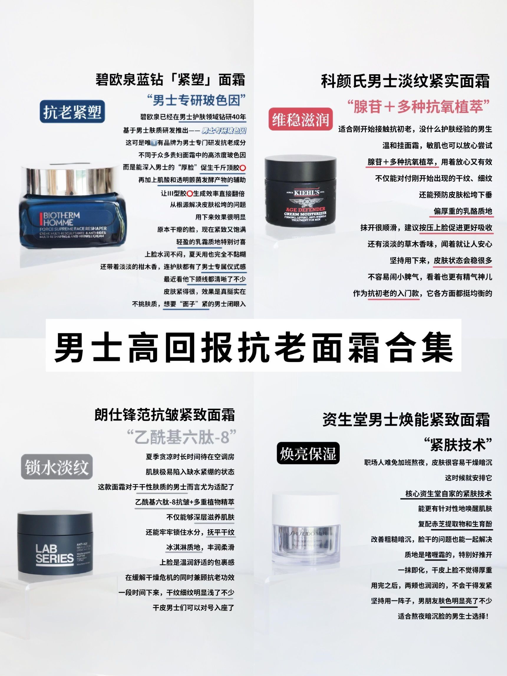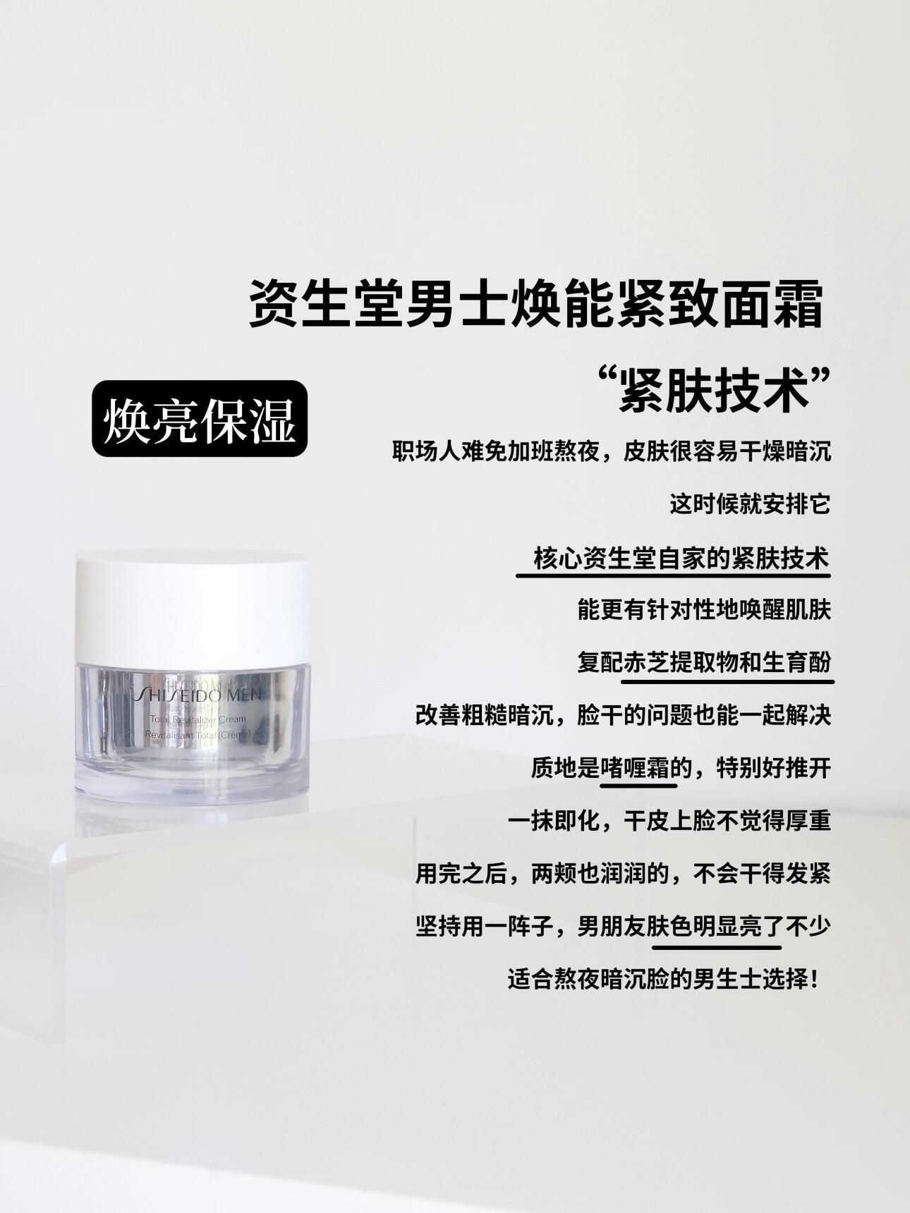 本篇笔记关联了Shiseido/资生堂 新男士焕能紧致凝霜 50ml、Biotherm/碧欧泉 男士蓝钻青春面霜 滋润玻色因抗老淡纹紧致 保湿、Shiseido/资生堂 男士护理保湿滋润紧致面霜 50g等商品,为用户提供真实的使用体验和购买参考。