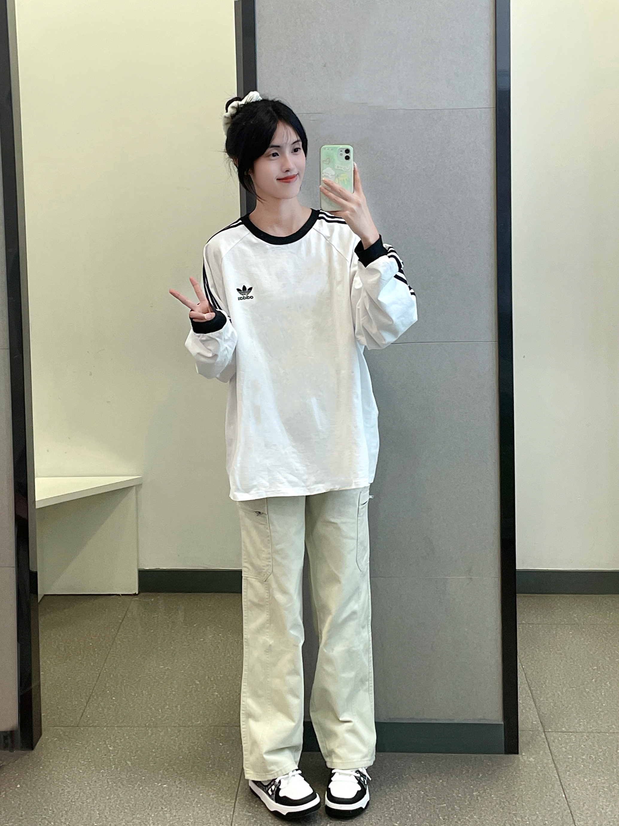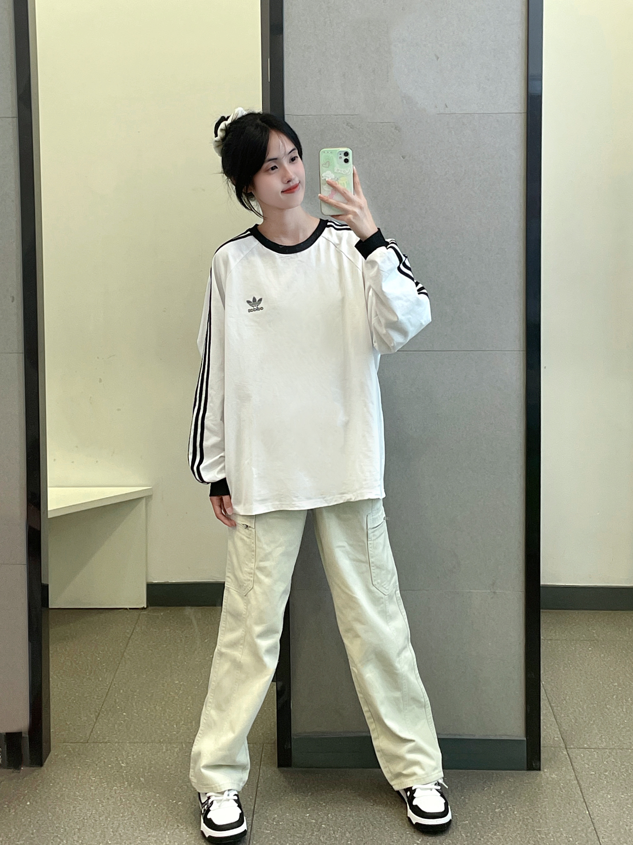 今日/OOTD 👔 :adidas条纹长袖 👖 :teenie weenie米色牛仔裤 👟 :回力板鞋