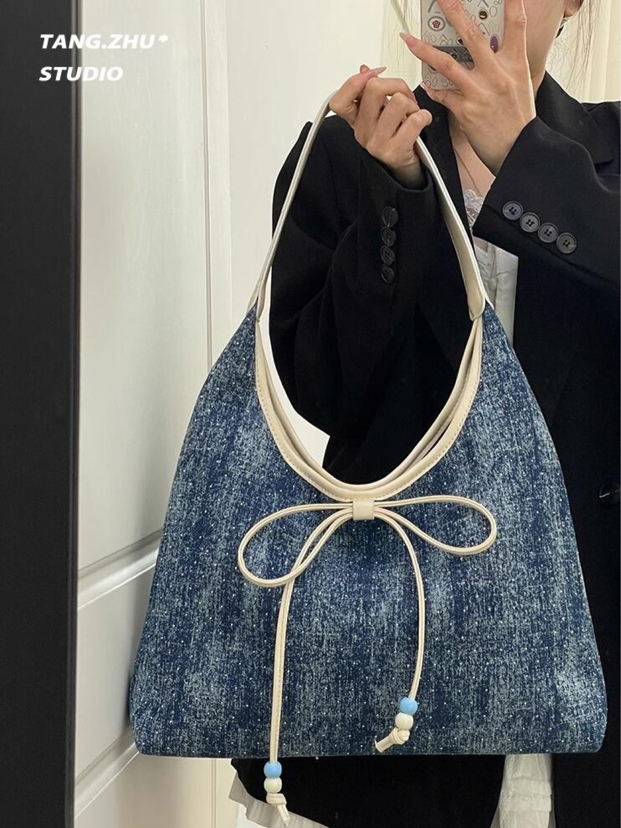 姐妹们!真的不夸张,这款牛仔大容量女包简直是神仙单品!日常通勤、短途旅行、逛街约会,一个包全搞定!大容量设计,手机、钱包、化妆品、甚至小水壶都能轻松装下,再也不用担心东西塞不下! 材质超耐磨,牛仔面料复古又百搭,搭配任何风格都毫无压力!无论是酷girl风还是温柔小姐姐,都能轻松驾驭 重点是,价格超级亲民!性价比炸裂!学生党、上班族都能闭眼入!