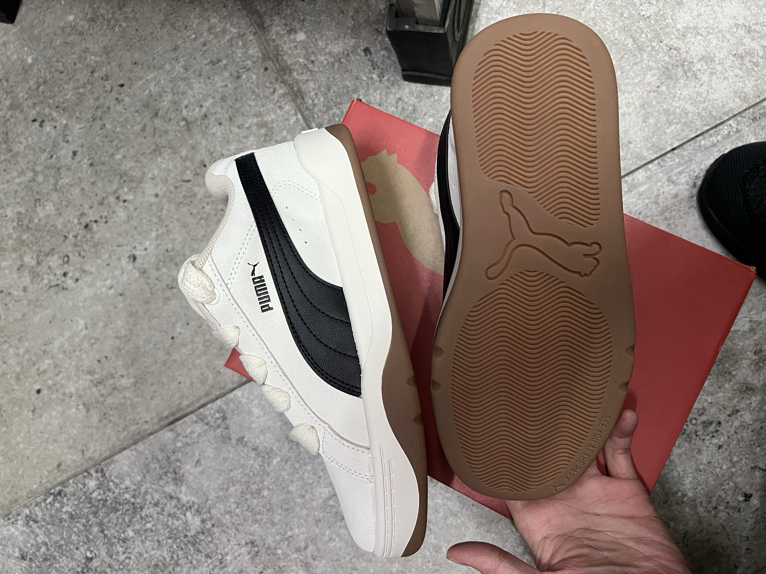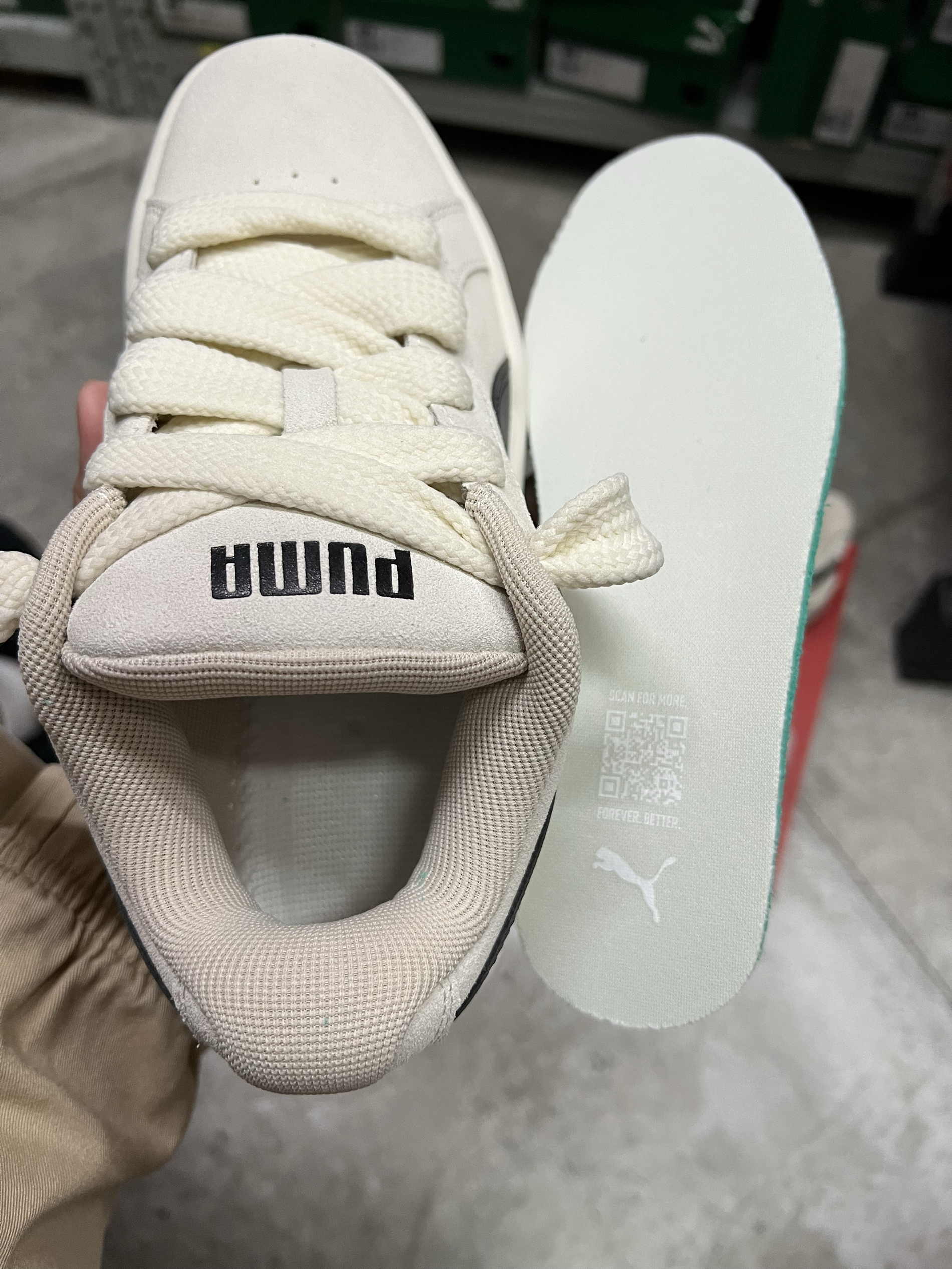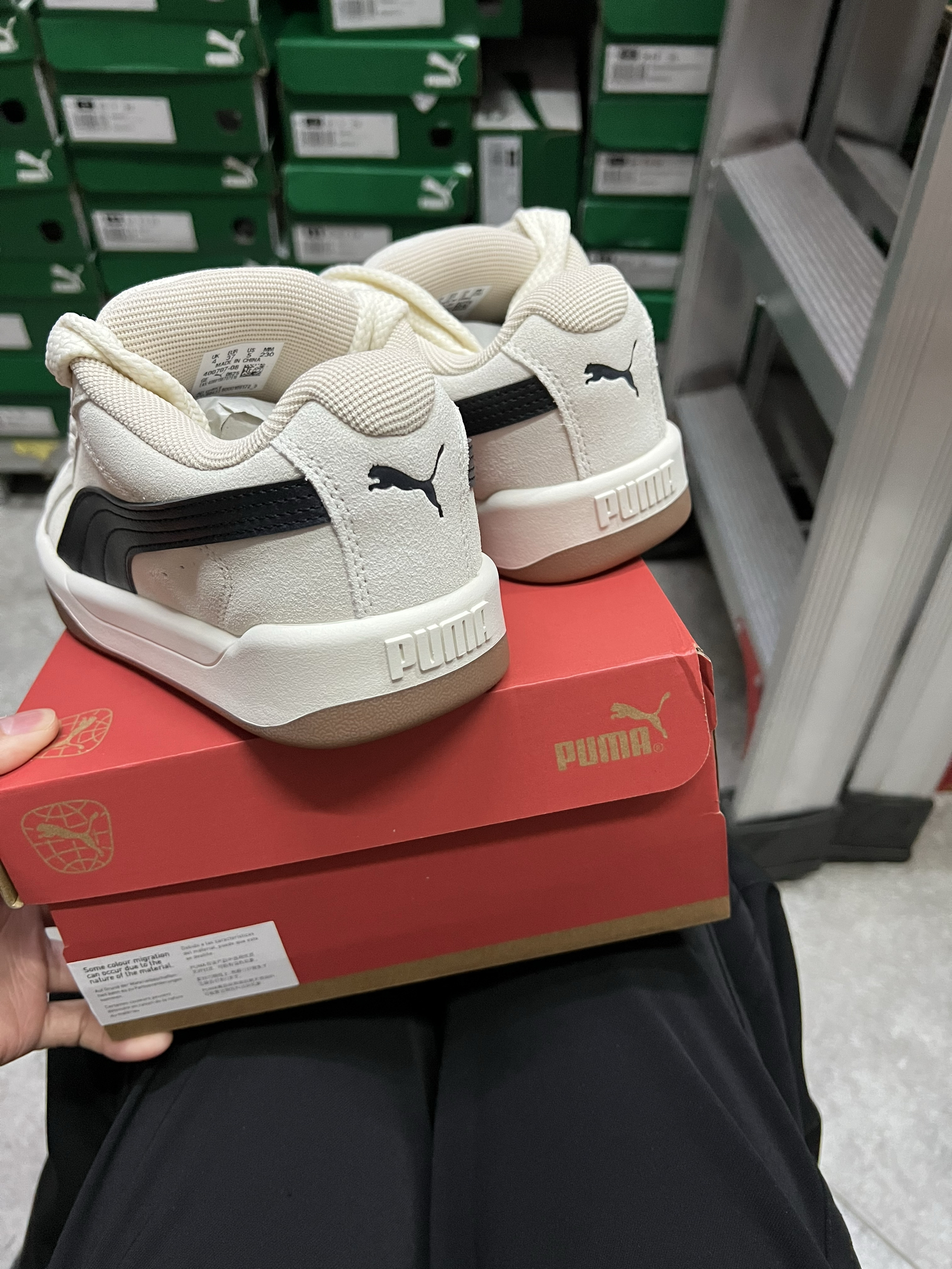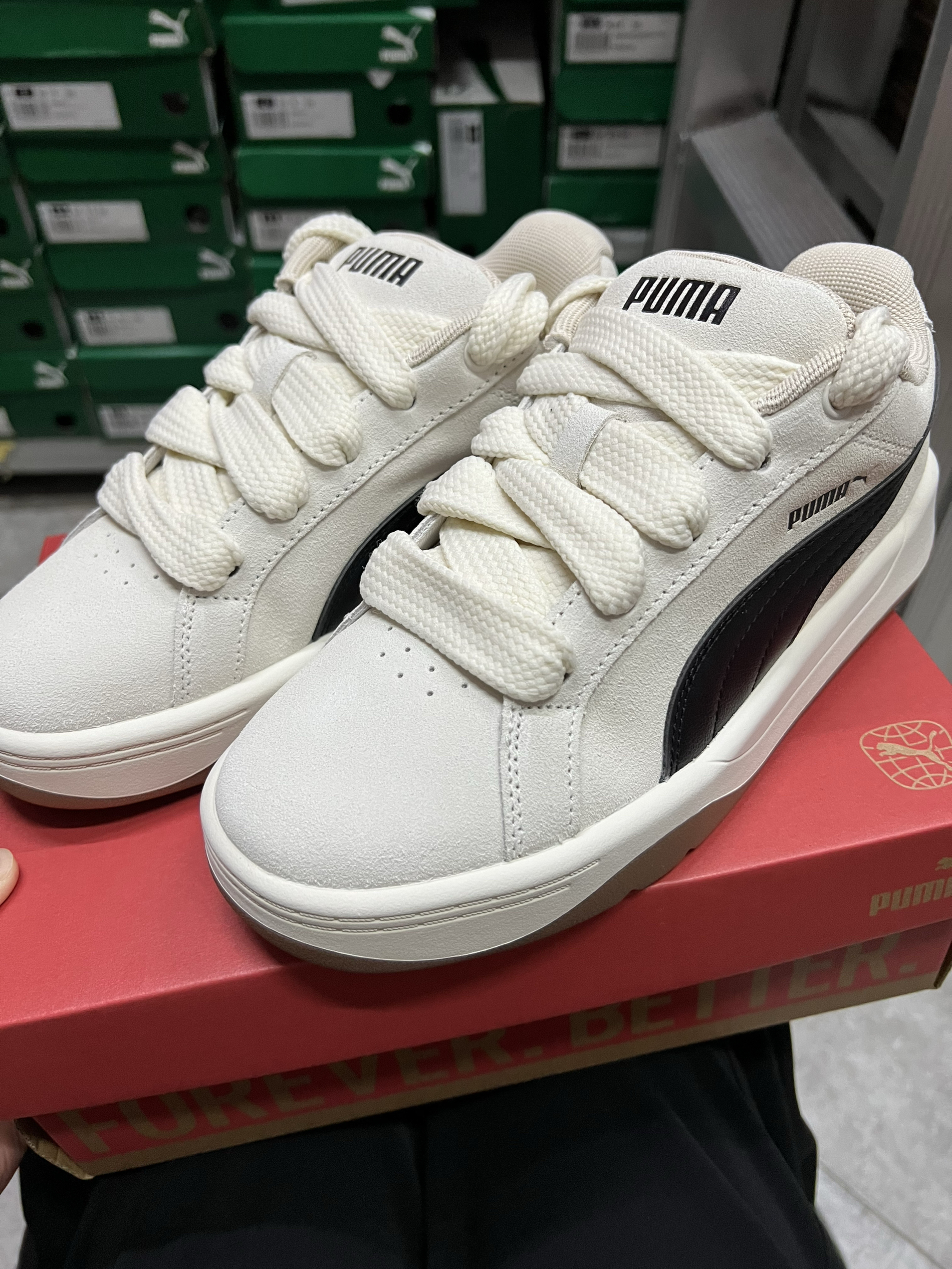谁懂啊家人们!这双PUMA新板鞋真的长在审美点上! 米白麂皮搭配经典黑色彪马条纹,复古感直接拉满~粗绳鞋带的设计太有辨识度了,随便一系都很有造型感,甜酷女孩必备好吗! 上脚更是惊喜,鞋垫软乎乎的像踩在云朵上,日常出街暴走一天都不累脚。鞋底的厚度还很显腿细,搭配牛仔裤、短裙都很绝,一鞋多搭的快乐谁穿谁知道! 别犹豫了,这种颜值与舒适并存的神仙板鞋,冲就完事儿!