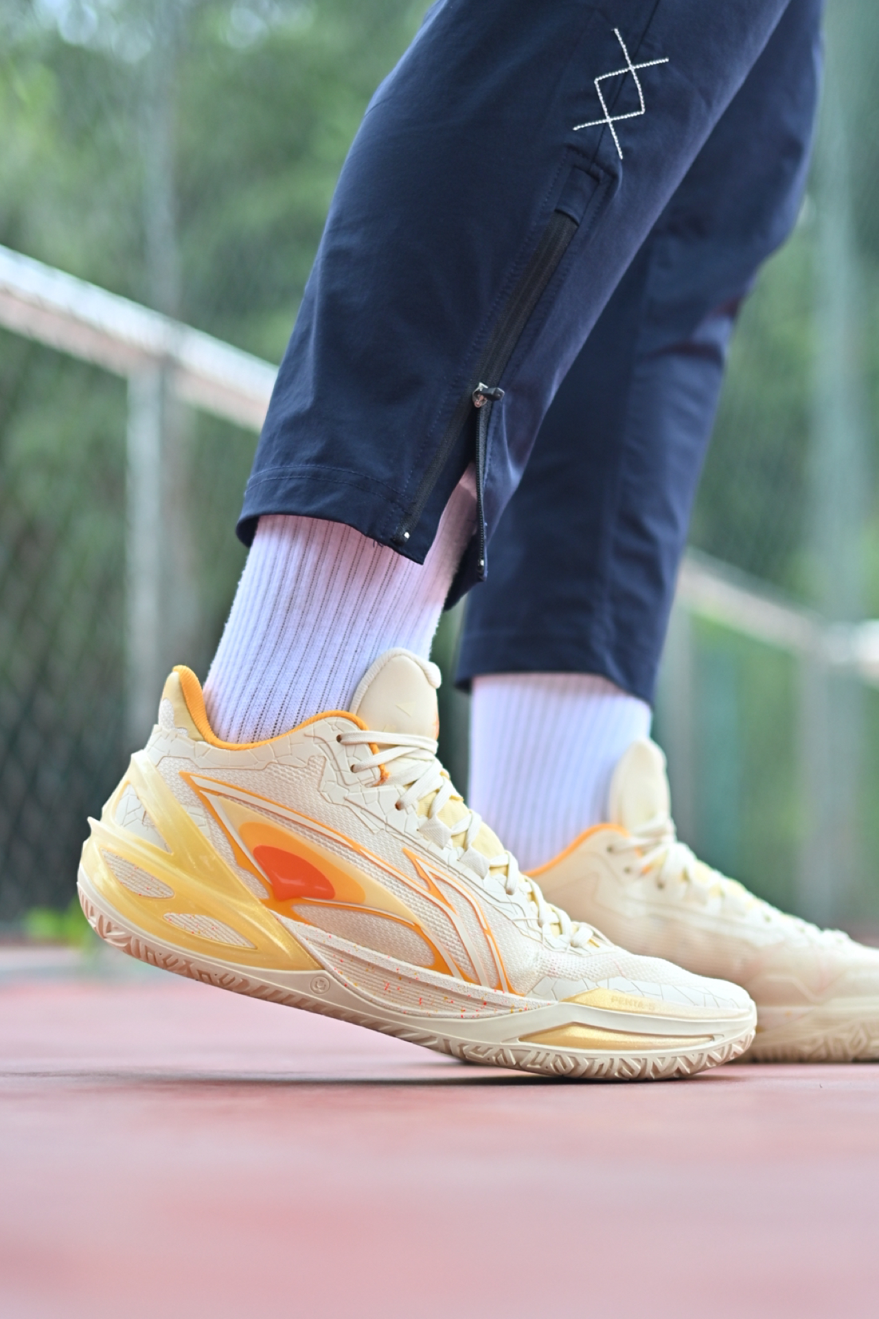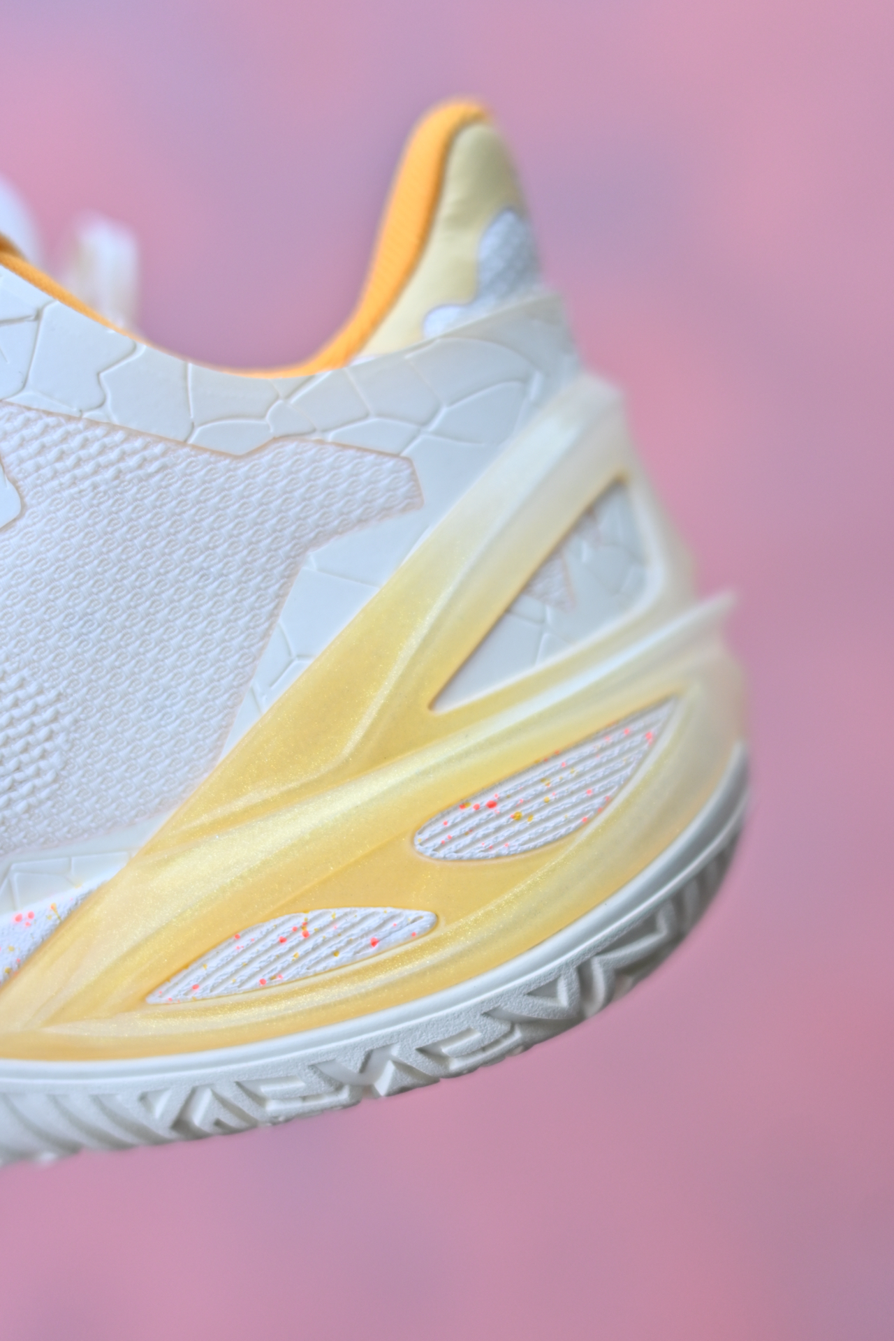 宁子的利刃6代的又一个配色啊,叫溏心蛋,logo也做成这种溏心蛋的效果,设计这块细节很多~ 那这次可以重点关注一下,宁子的这块PENTA-S的新科技,就是冲着横向移动提速、启动爆发设计的! 当然依旧是TUFF RB的大底啊,这点也是宁子团队实战鞋标配了~ #开学季球鞋指南 #新鞋零时差 #一脚蹬进秋天 #利刃6