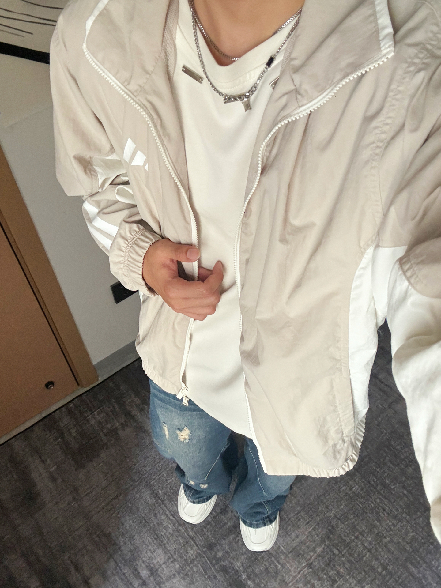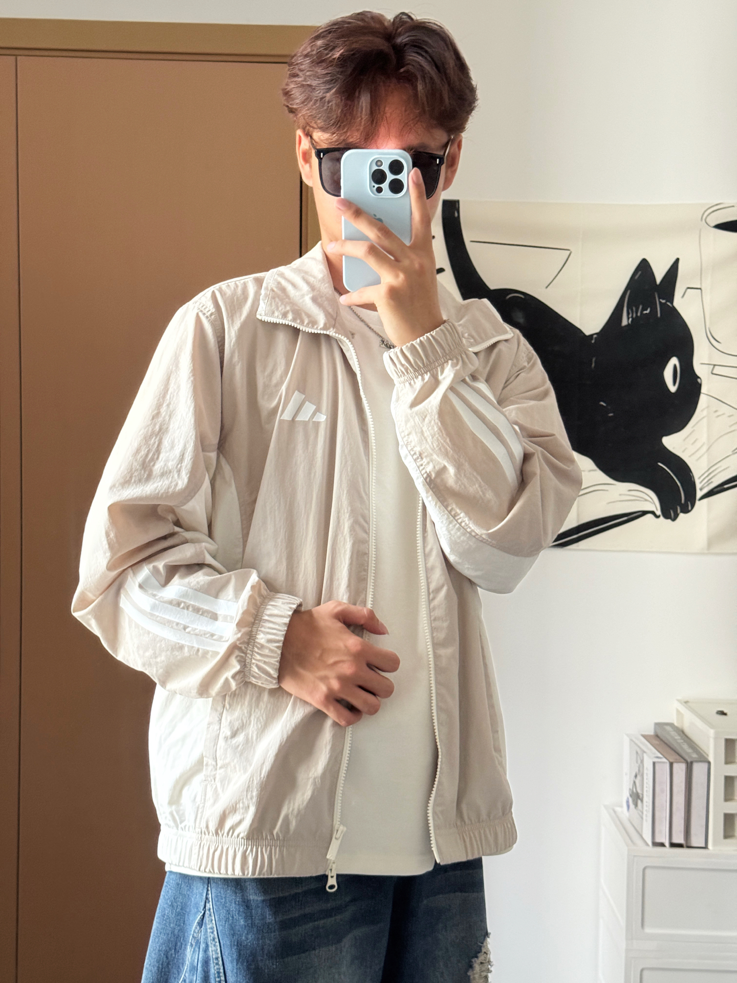 跟风入了件阿迪这款浅卡其立领夹克,上身试了套新搭配,松弛感拉满还挺惊喜~面料轻薄透气,夏天穿也不闷汗,运动完速干这点很省心💨 不过浅色系打理起来有点小心机,有没有搭子分享下浅衣日常咋洗护不发黄? 或者推荐些同风格的下装组合? 想把少年感焊在身上hhh~