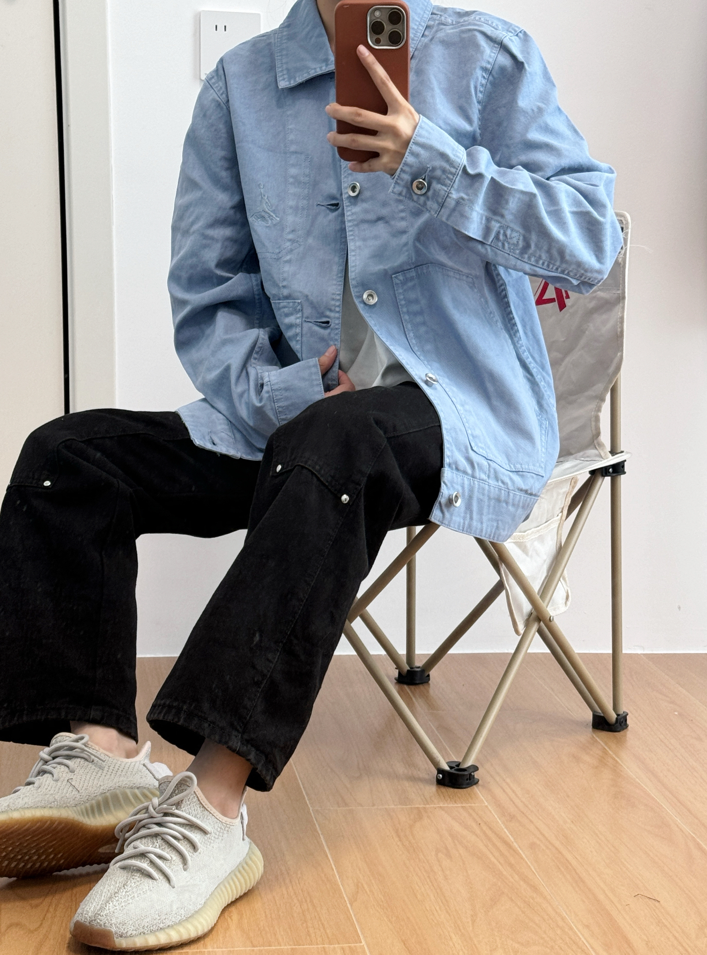 我发现这件浅蓝夹克好适合秋天穿!料子摸着像亚麻,上身舒服又透气,干净清爽的感觉拉满~不过码数我觉得有点偏大,我选的合身款也有点宽松感。现在早晚温差大,内搭白T正合适,配黑裤和运动鞋,日常通勤或出门逛逛都很OK,已经成我秋冬常穿单品啦~ 图片源自网络侵删