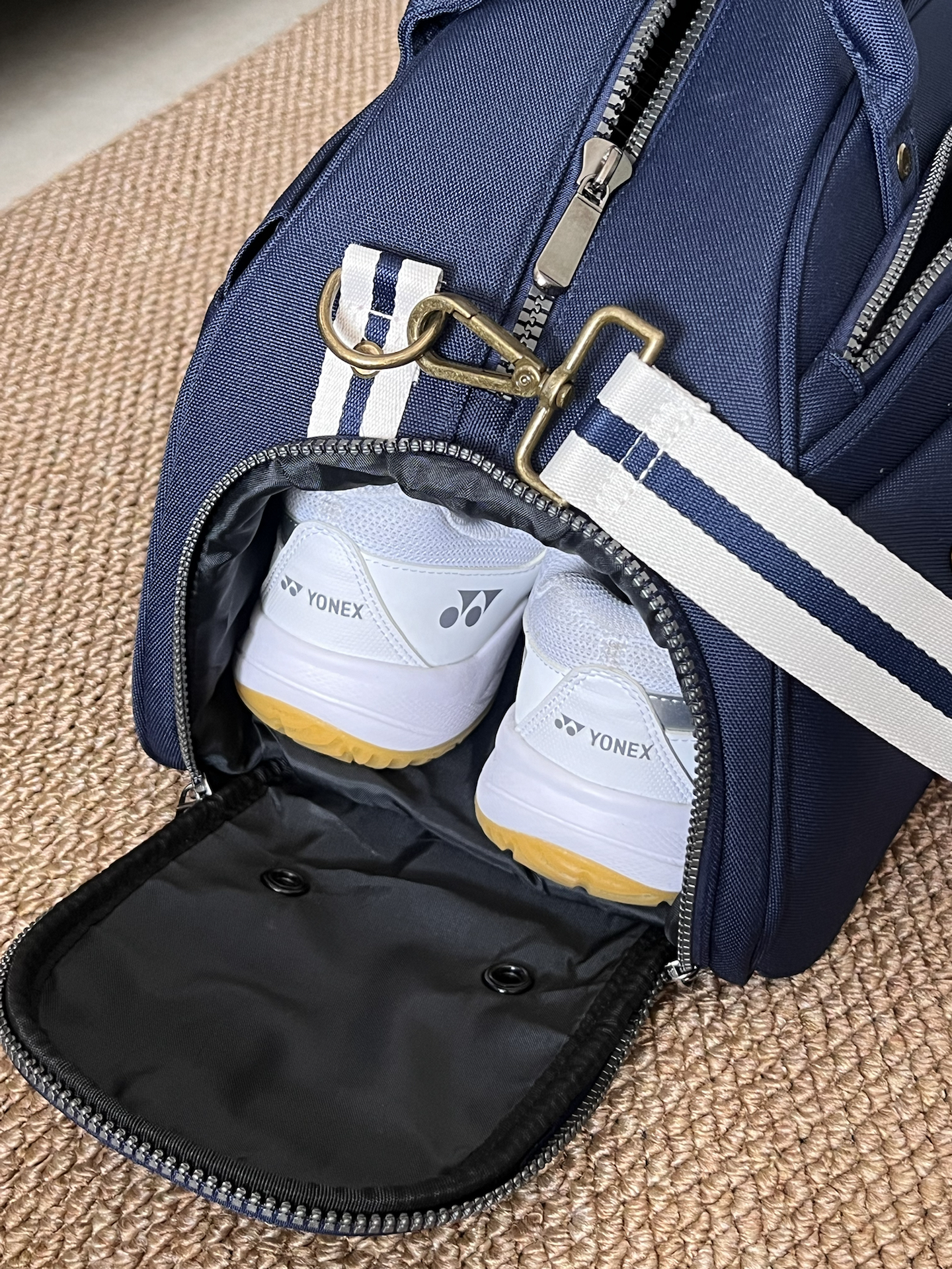本篇笔记关联了YONEX/尤尼克斯 情侣款简约时尚字母印花人造革高尔夫单肩斜挎羽毛球包波士顿包手提包 藏青色 等商品,为用户提供真实的使用体验和购买参考。