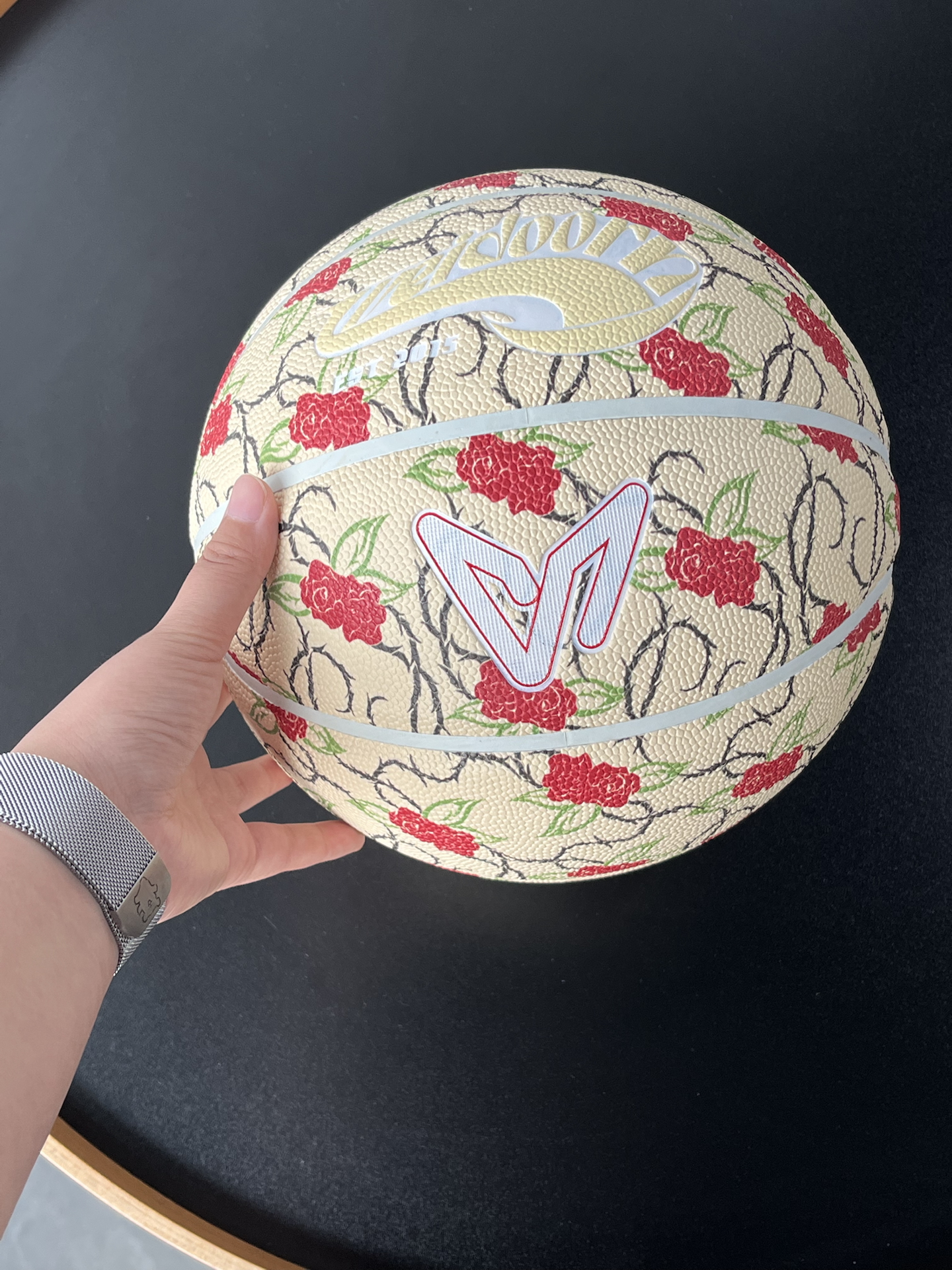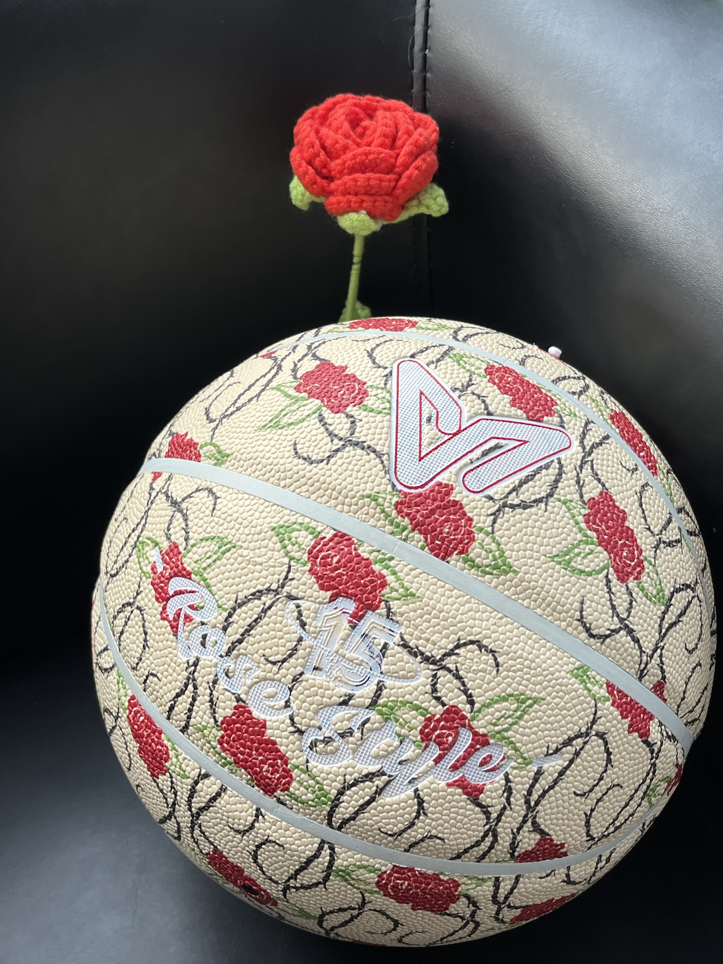 我给爱打球的男友挑了这颗玫瑰款篮球~花纹设计好特别,他收到超惊喜!不过限量款价格小贵🥹 但pu材质手感好,室内外打都耐磨,他每次打球带着,我感觉我俩羁绊更深啦~