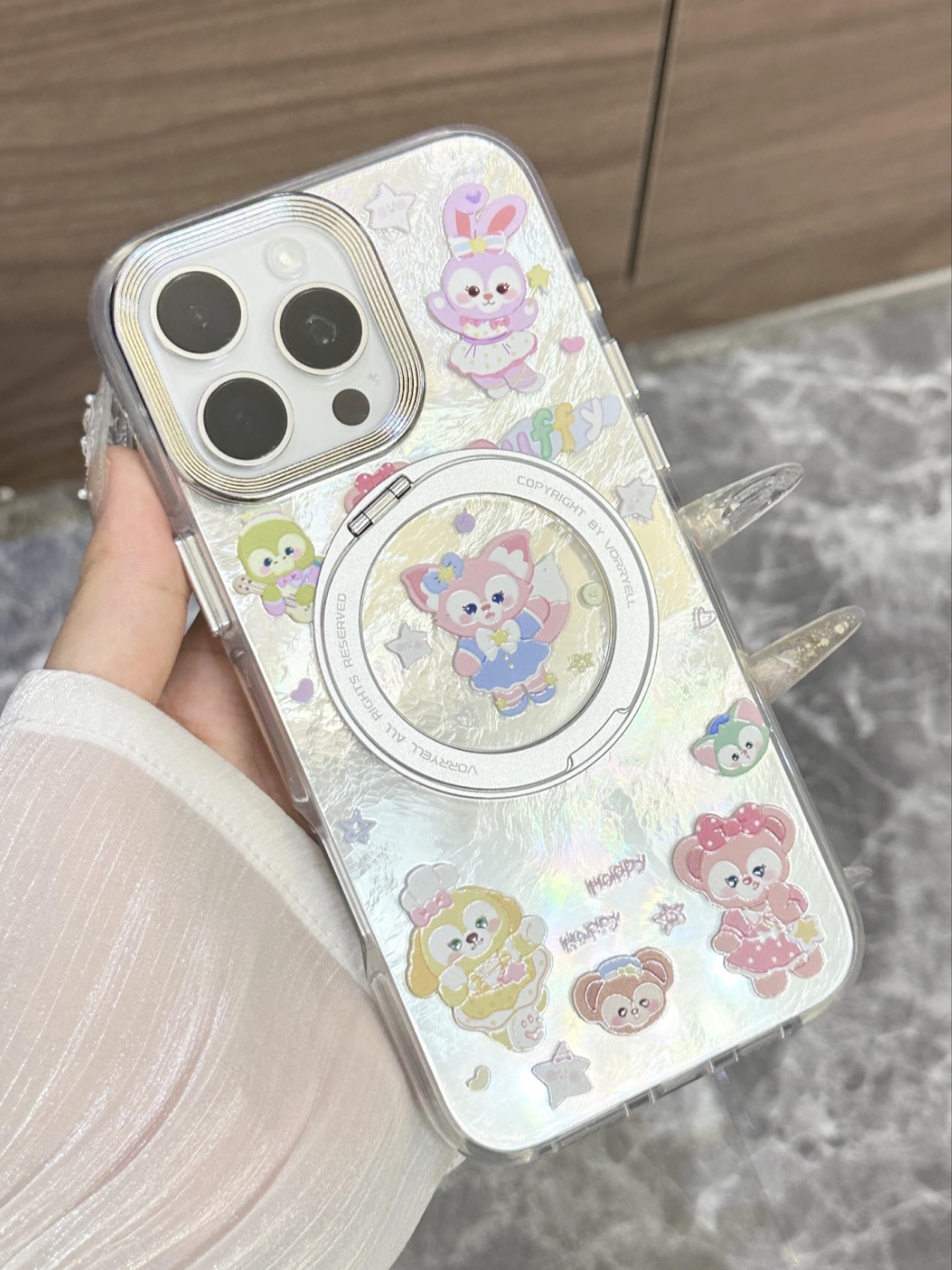 哇塞呀好喜欢我的介个新手机壳子呀 也是让穿上迪士尼七宝的壳子啦 我觉得介个图案真的好可爱呀 而且边框摸起来手感我觉得不错呢 自带支架用起来也方便许多呢! 旅行我们带着出门真的好方便