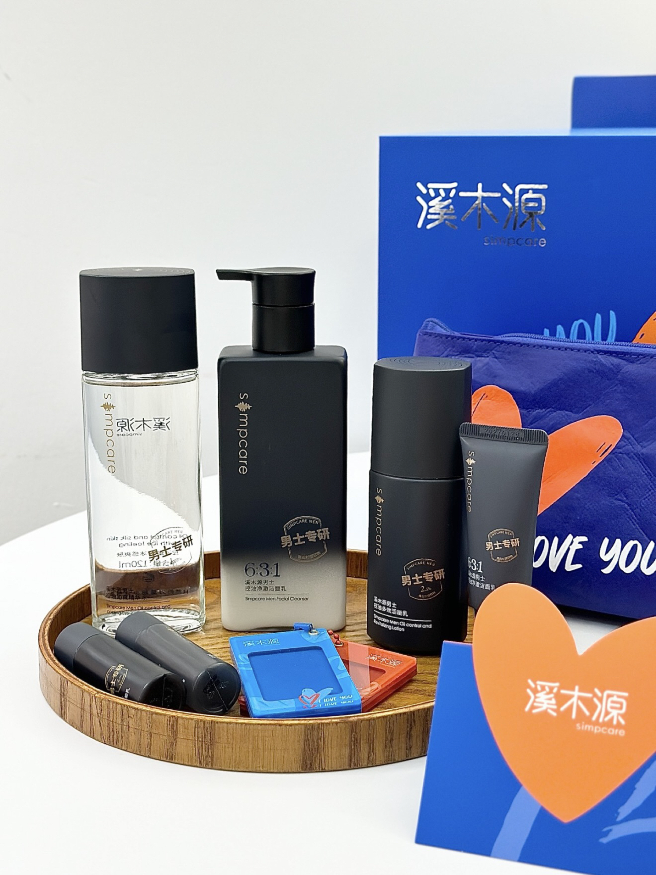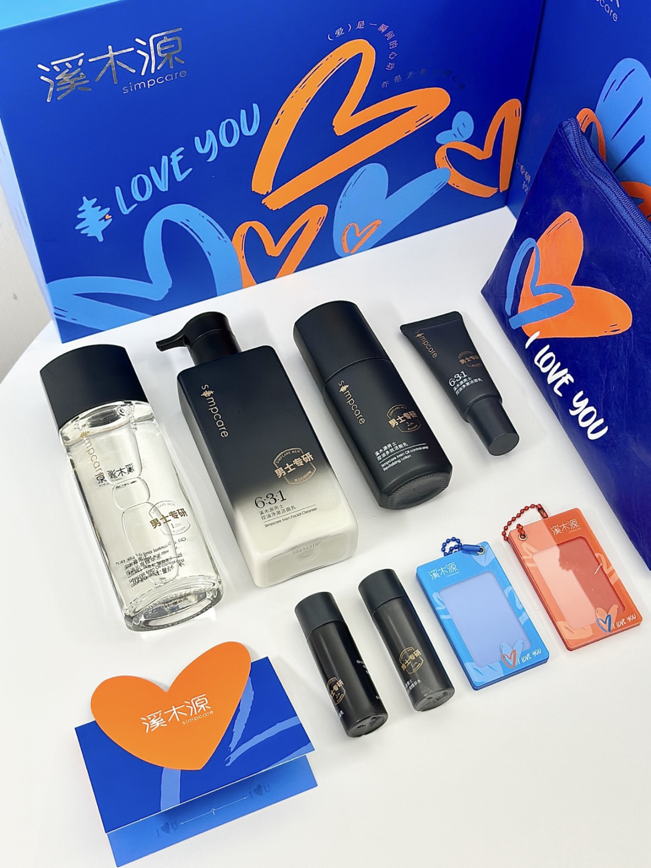 溪木源家的这套男士水乳礼盒 蓝橙配色的礼盒上还有好多爱心 节日氛围感这不就有了嘛 打开之后是满满一大盒护肤品:洁面、水、乳、洁面小样、水乳小样 洁面洗感舒服 洗的干净的同时又不会拔干 水的流动性hin强 上脸好吸收 乳的质地轻盈 上脸好推开 还送了限定小相框和收纳袋~ 这仪式感 哪个男孩子会不喜欢啊?!
