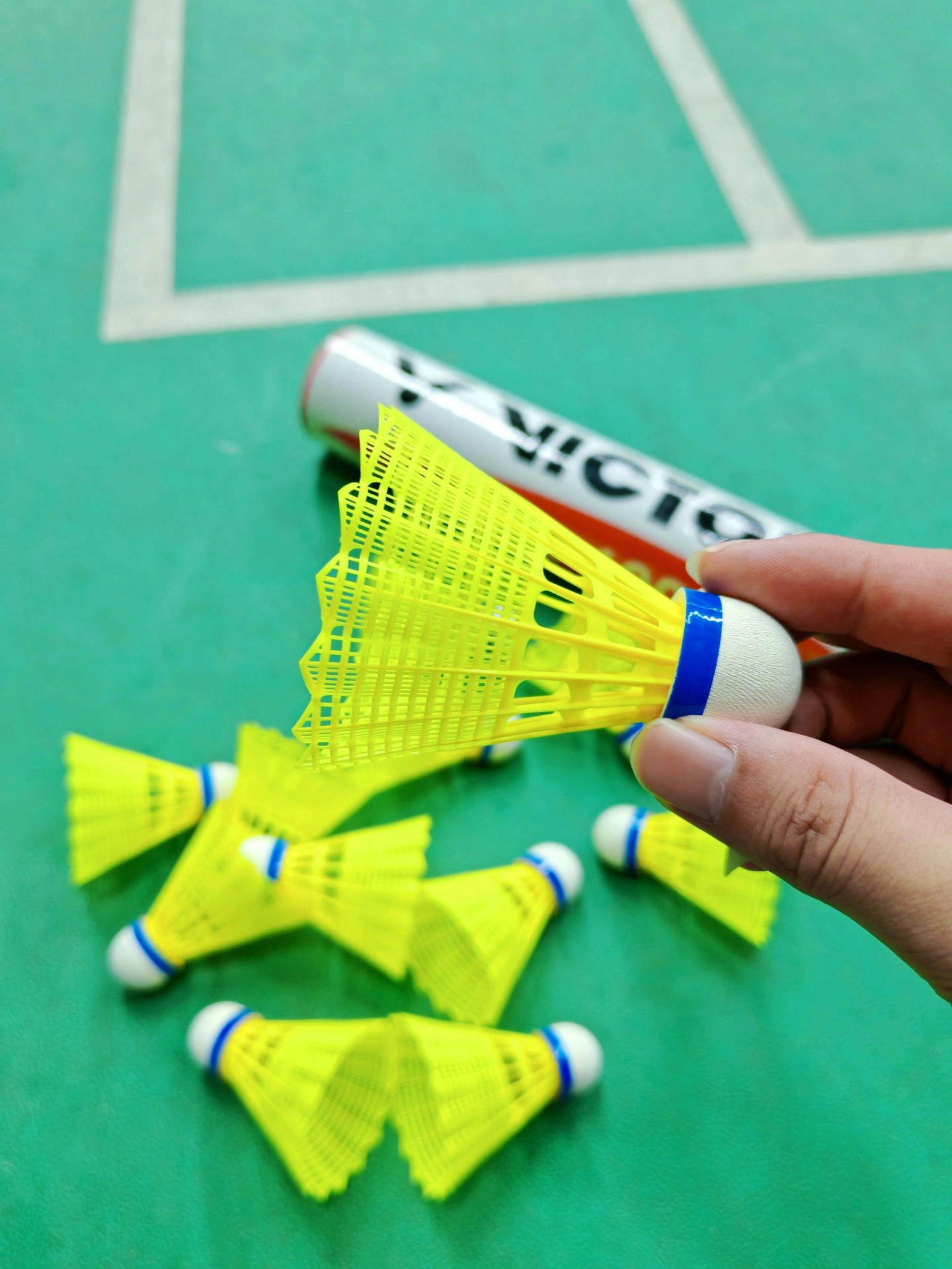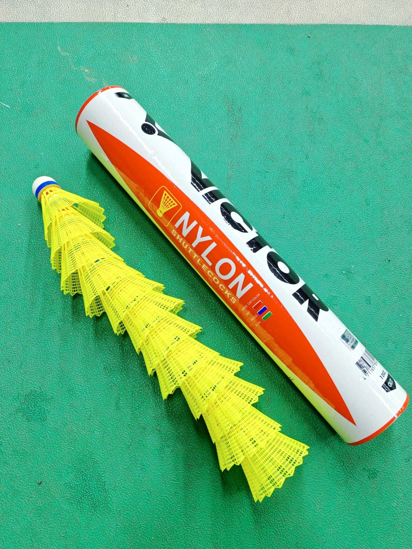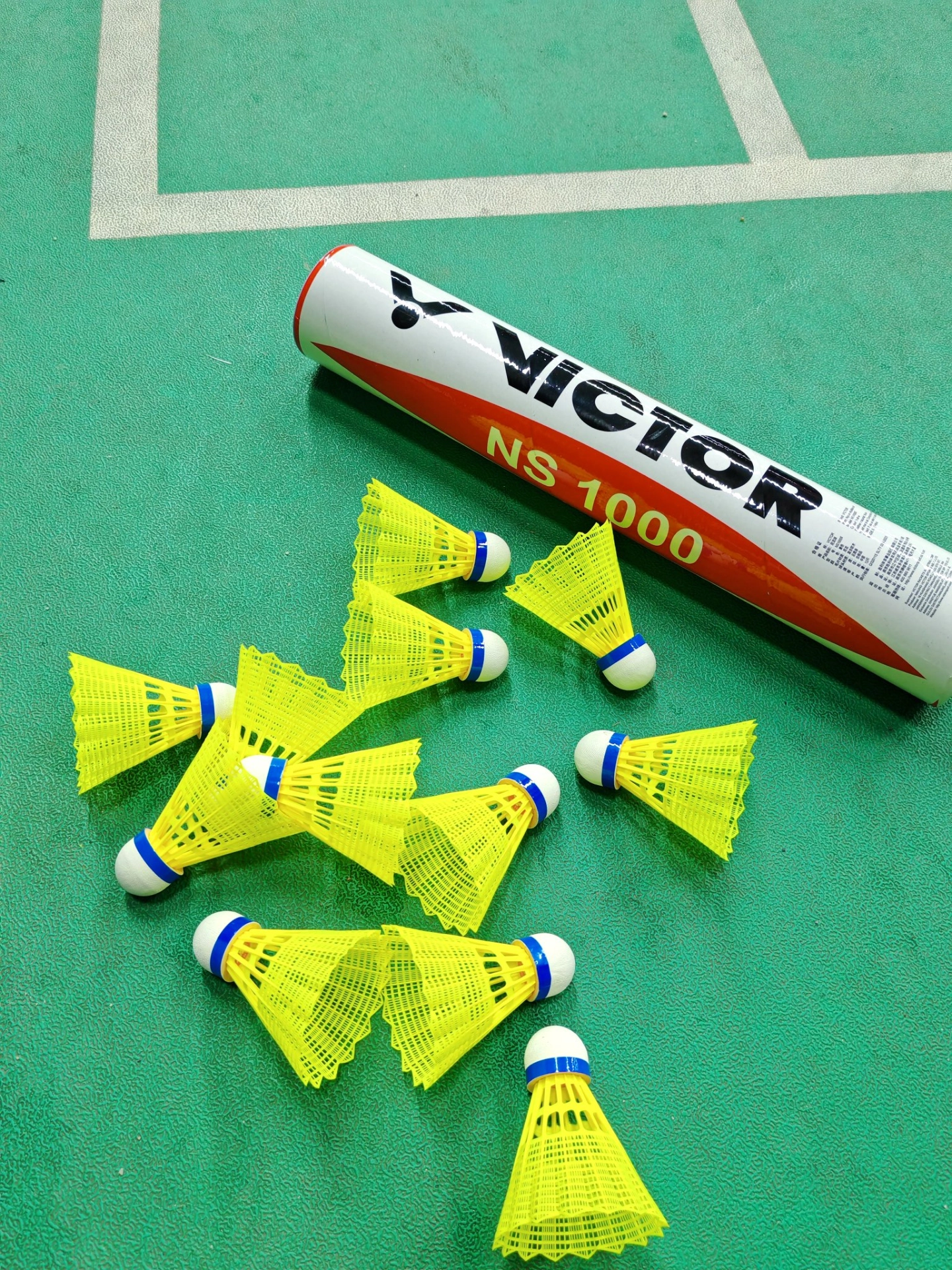 这是胜利的耐打尼龙球,一桶有12个装 飞行还是比较稳定的,出球落点精准 是一款能满足日常娱乐训练的一款耐打球 手感和传统羽毛球有点差别,习惯羽毛球的宝子得适应下~