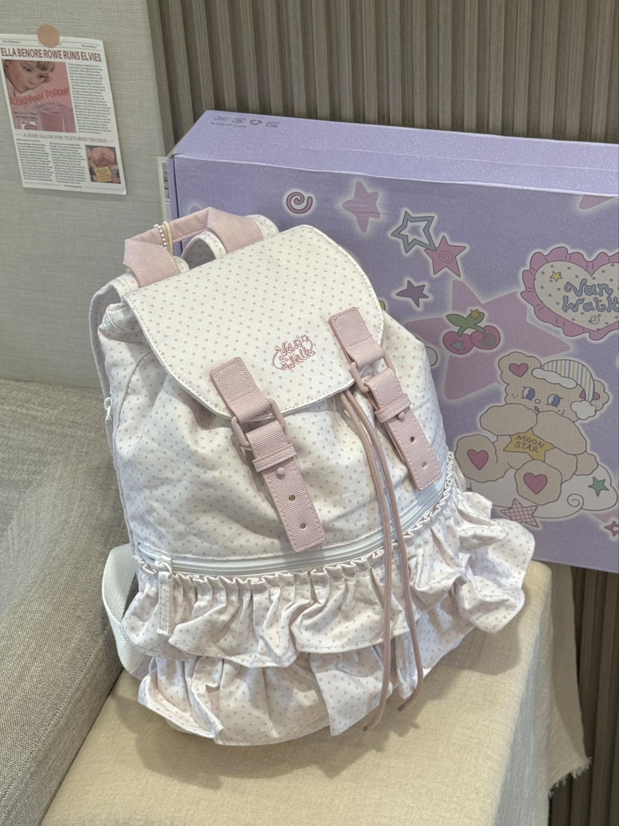 奶呼呼💨的小书包我敲爱! 嫩嫩的淡粉色波点搭配上小裙边 也泰乖巧显嫩啦~ 包包还是抽绳的设计,拿取东西蛮方便的 我觉得容量也OK 装得下平板电脑和课本 平时上课或者出去玩背很出片耶!