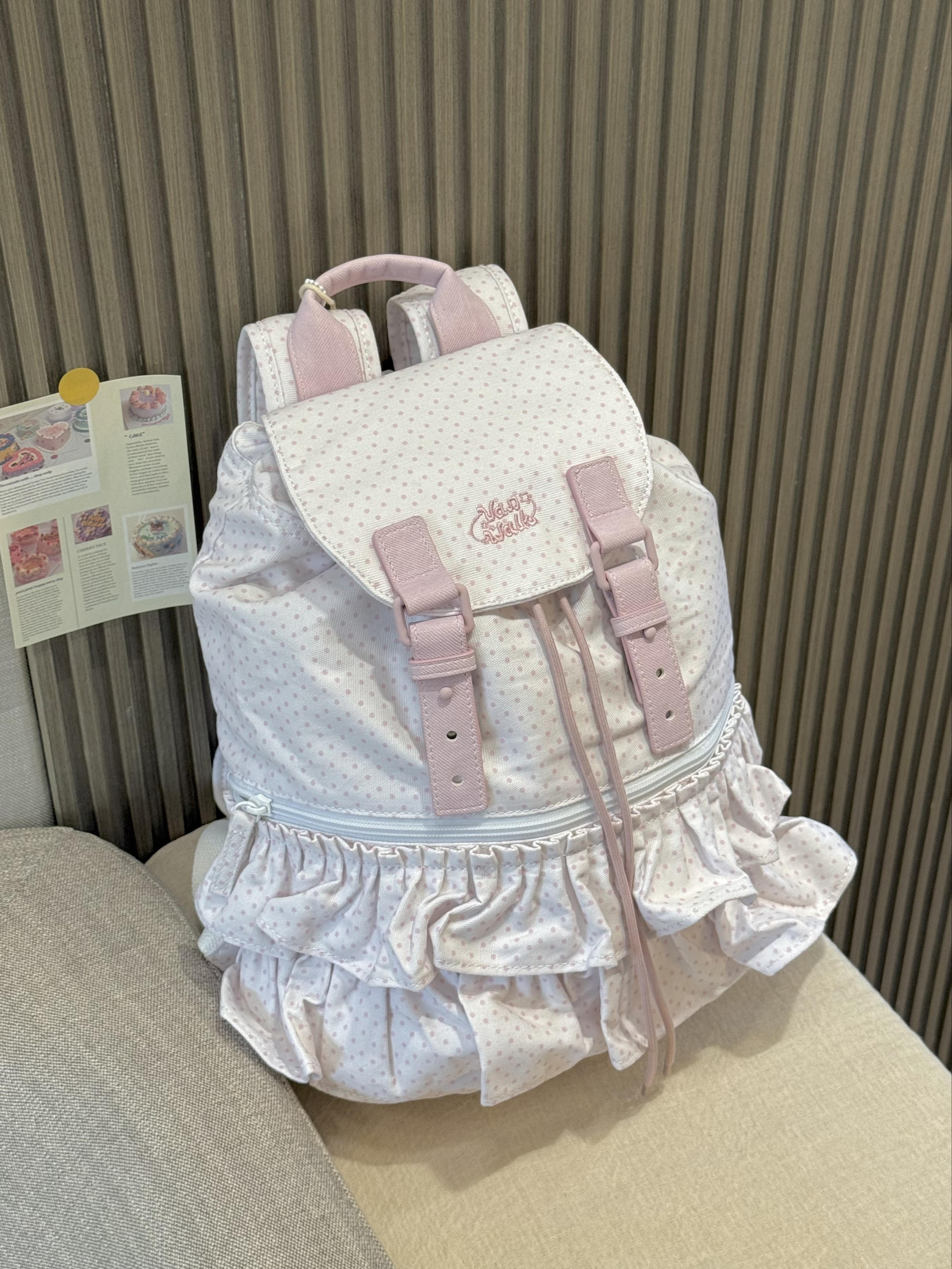 本篇笔记关联了VANWALK/出走 手账系列 新款裙边波点芭蕾风出游通勤小众书包双肩包 奶白等商品,为用户提供真实的使用体验和购买参考。