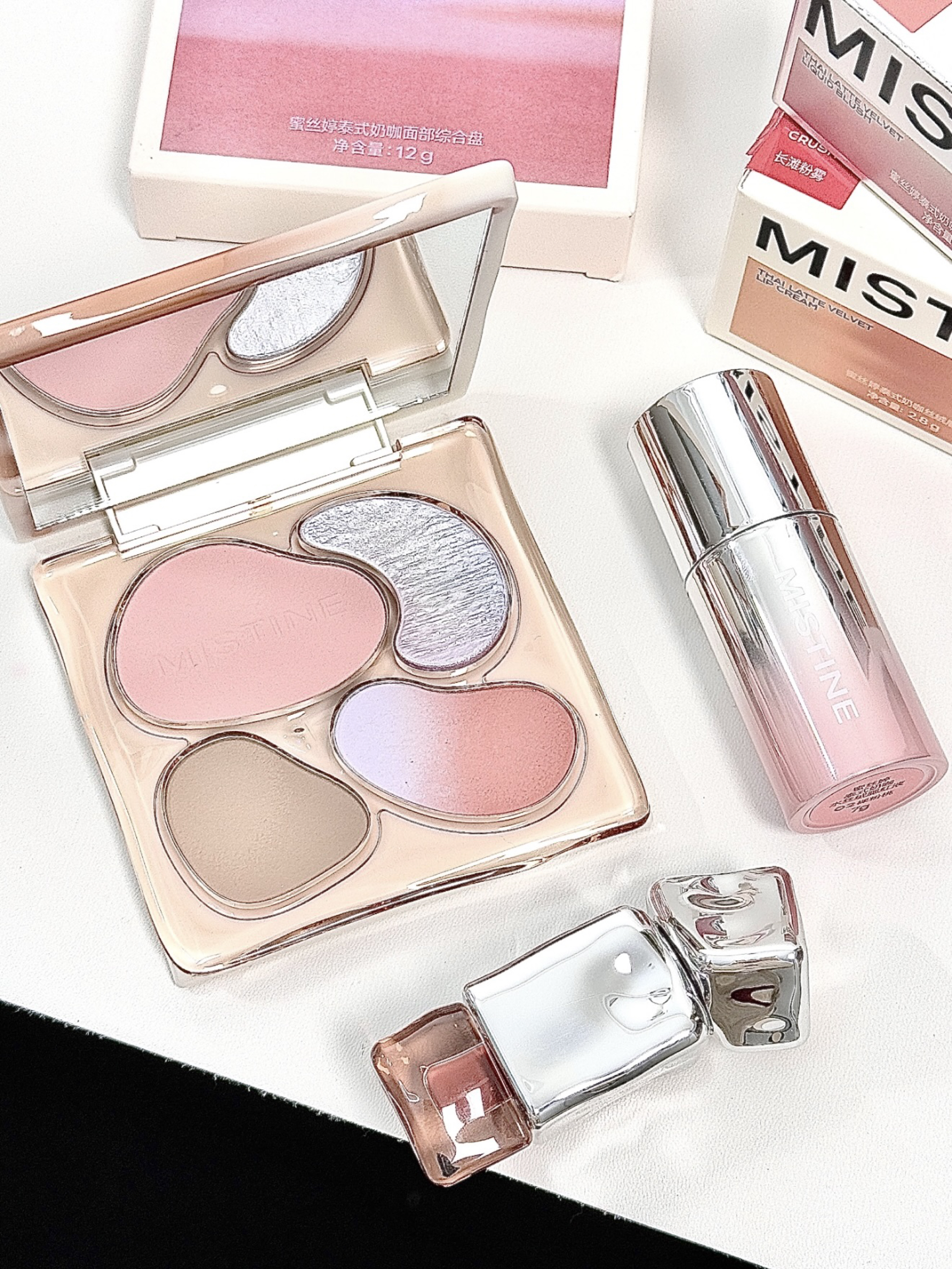 本篇笔记关联了Mistine/蜜丝婷 37℃热带泰式奶咖水丝绒腮红液 持妆显色融肤 7g 01白沙滩、Mistine/蜜丝婷 泰式奶咖彩妆盘 美容修饰提亮脸部三合一 12g 02海岸花火 冷色调白皮,橄榄皮等商品,为用户提供真实的使用体验和购买参考。