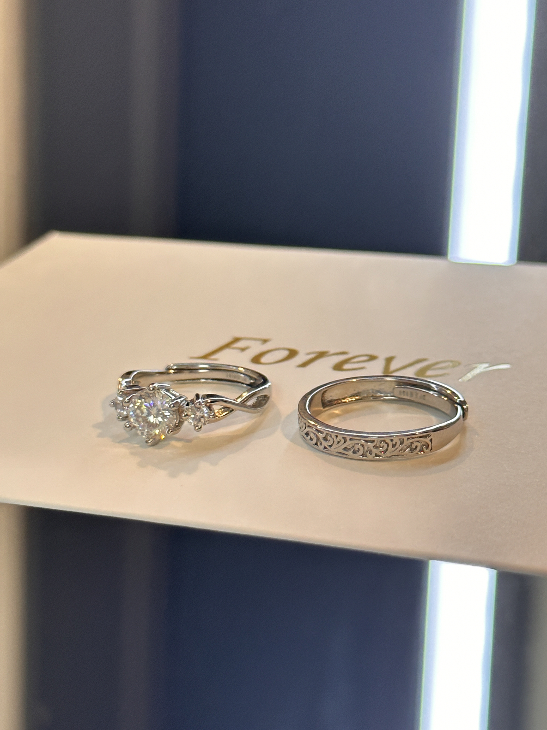 和对象选了很久的情侣戒,最终入了这款东方佳人莫比乌斯环对戒💍 1克拉莫桑石好闪,在灯光下像真钻一样亮眼,999足银质感很高级,戴久了也没掉色✨ 男女同款戴着很搭,日常戴或当婚戒都合适,轻奢不撞款~