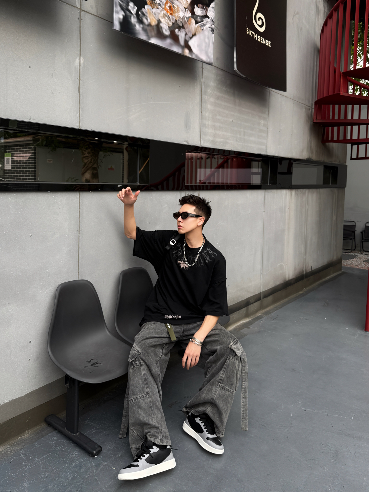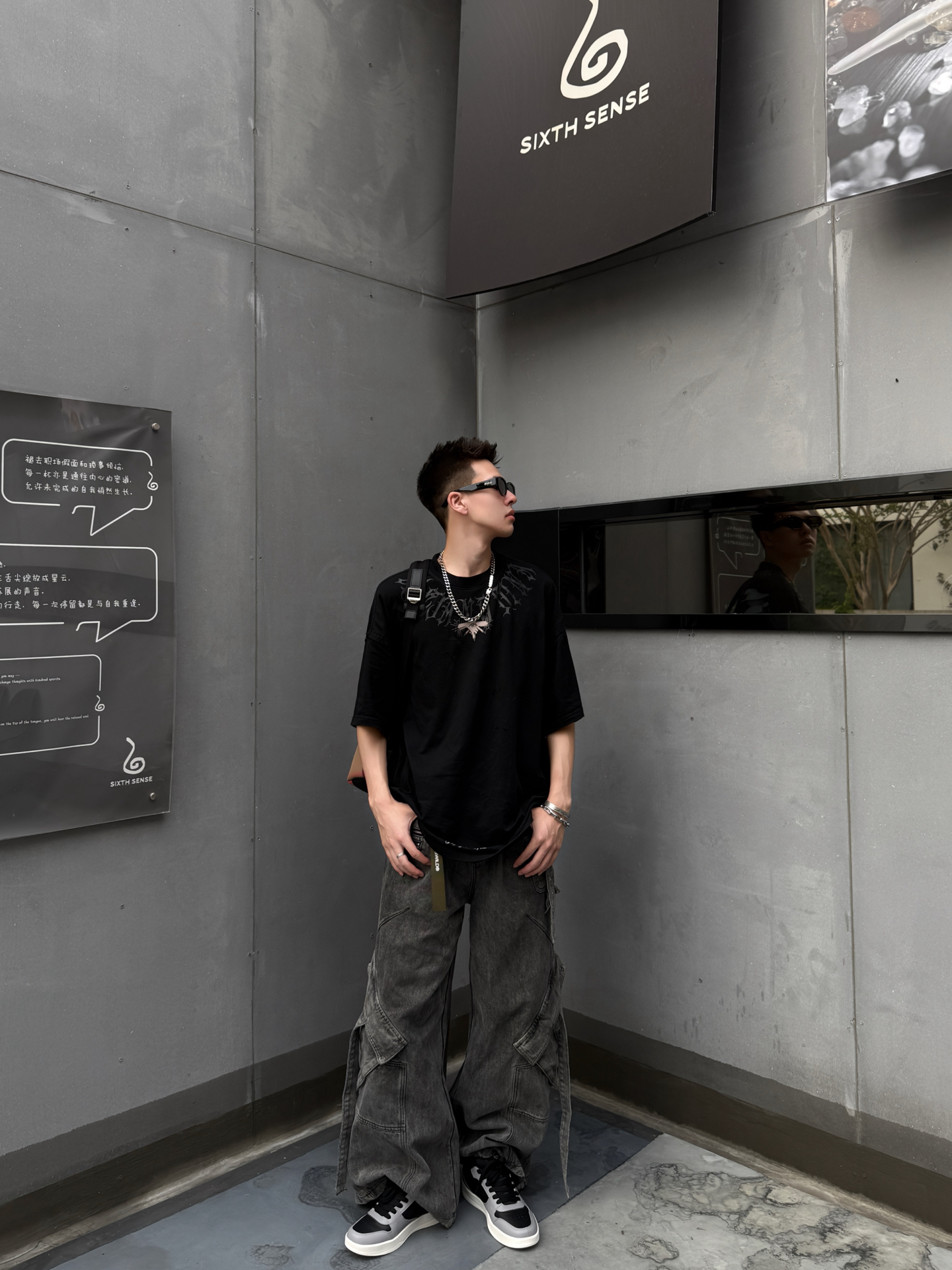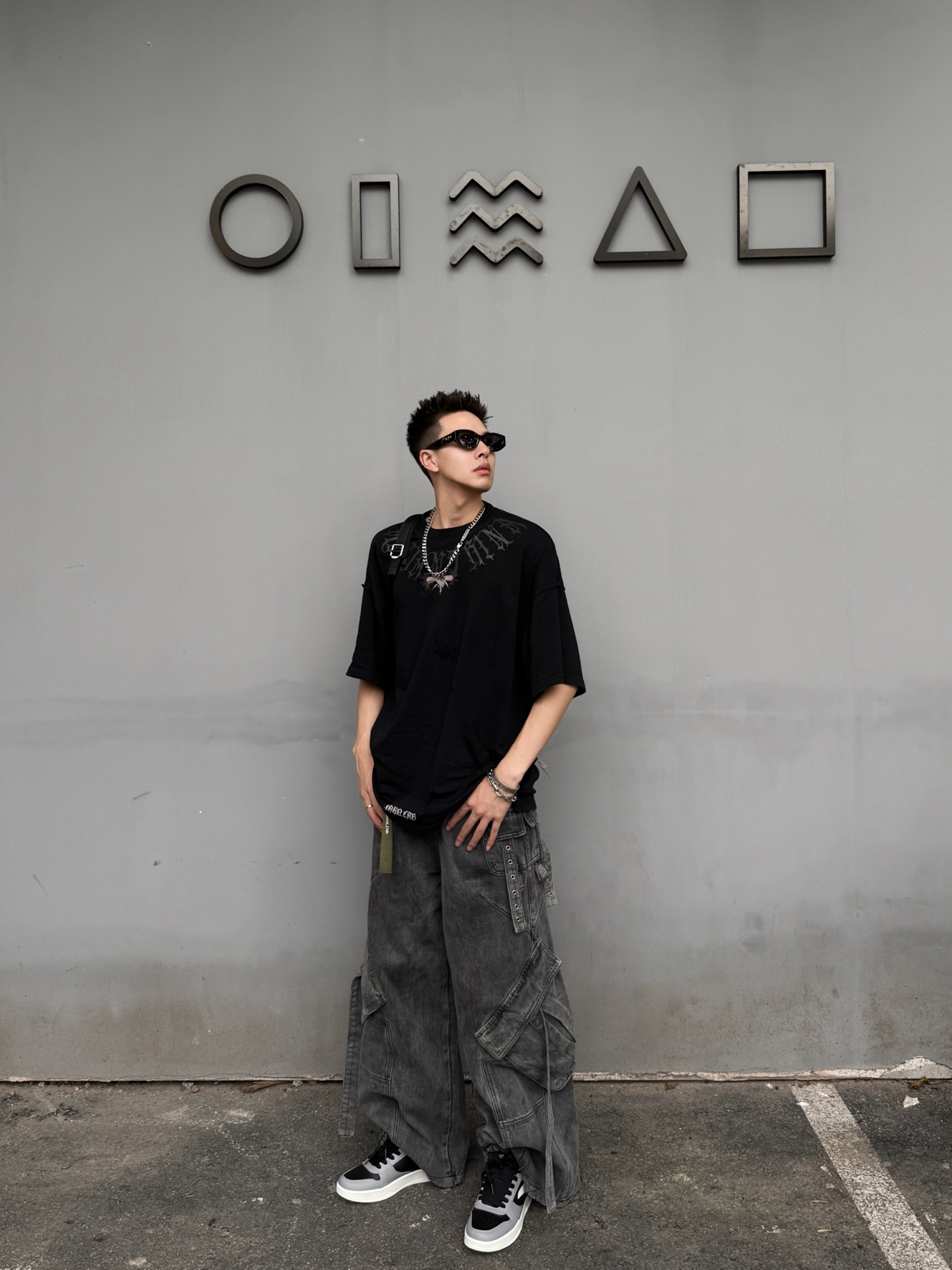 谁懂啊!这一身机能风穿搭直接把“酷”字焊在我身上了😎 黑色印花廓形T恤+做旧工装阔腿裤,把街头感拉满,重点是脚上这双 #安踏 黑白灰撞色板鞋,和整体风格适配度100%!鞋底软乎乎的,走路一天都不累,黑白配色还巨百搭,机能风、休闲风切换毫无压力~ 再叠戴几条金属项链和墨镜,挎个包,走在路上回头率直接拉满!男生夏天想帅得毫不费力,这套直接抄作业📝 #Anta安踏 #好物分享高颜值安踏鞋 #静默...