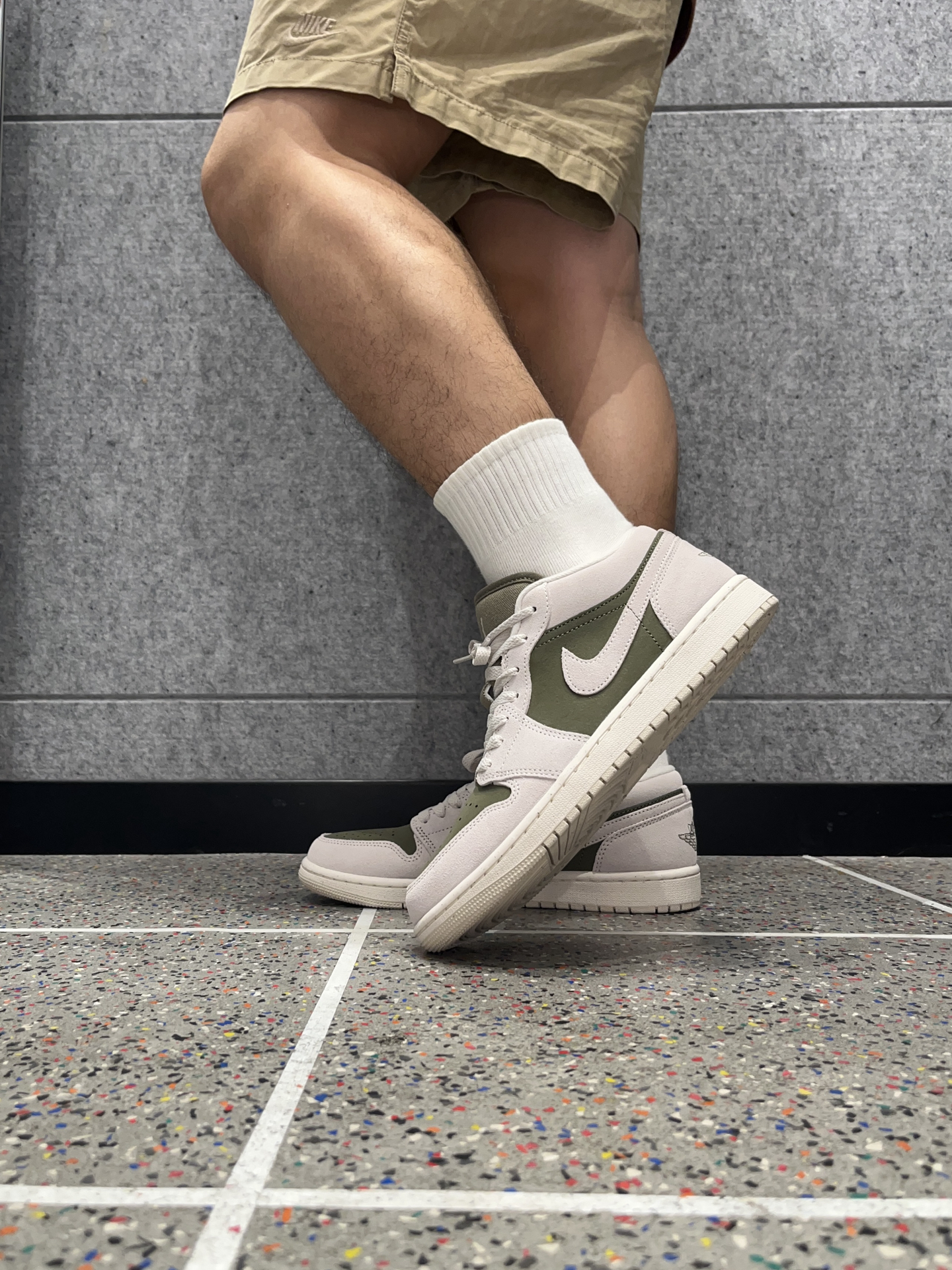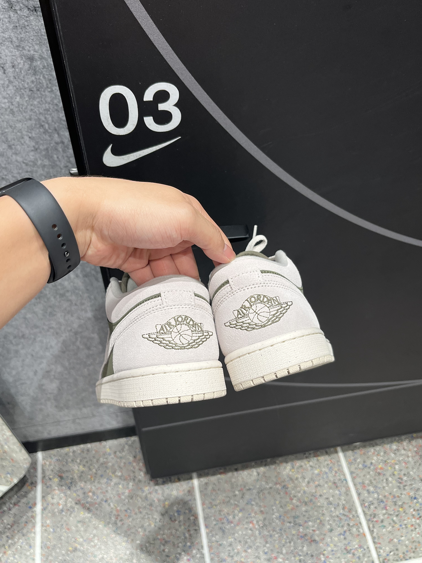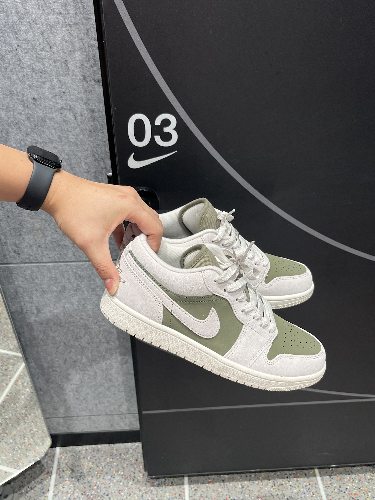 近期发现这双AJ1橄榄绿,和倒钩8.0颜色相近,实物颜色比想象中更柔和~ 不是那种很深的绿,带点抹茶色调,麂皮鞋面细腻,摸起来有质感;但脚感方面中规中矩,比较平一点 米灰和橄榄绿的搭配,复古又干净,秋冬配牛仔裤、工装裤都很合适。 只不过平时清洁要注意,麂皮别沾水,用软刷打理即可~ #新鞋零时差 #球鞋真心话 #好物分享橄榄绿AJ1 #橄榄绿配色Nike #开学先迈哪只脚