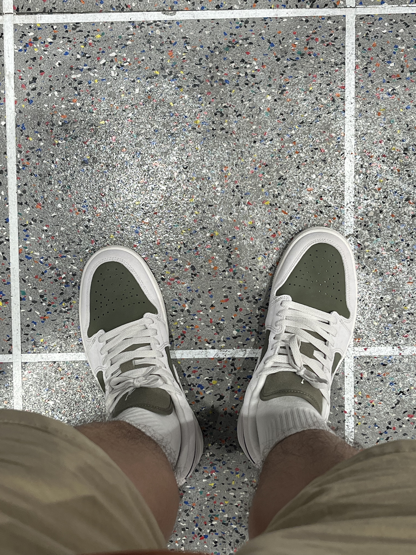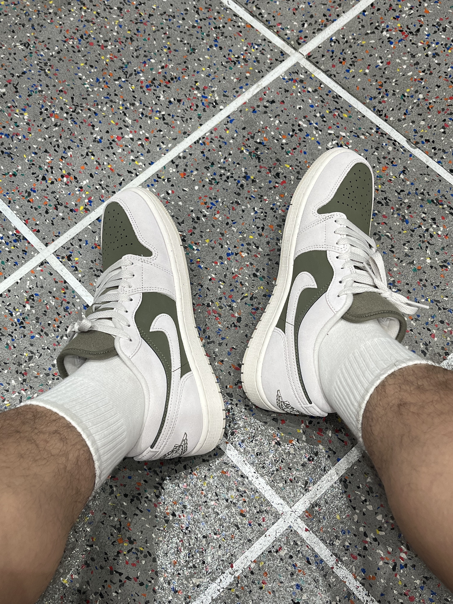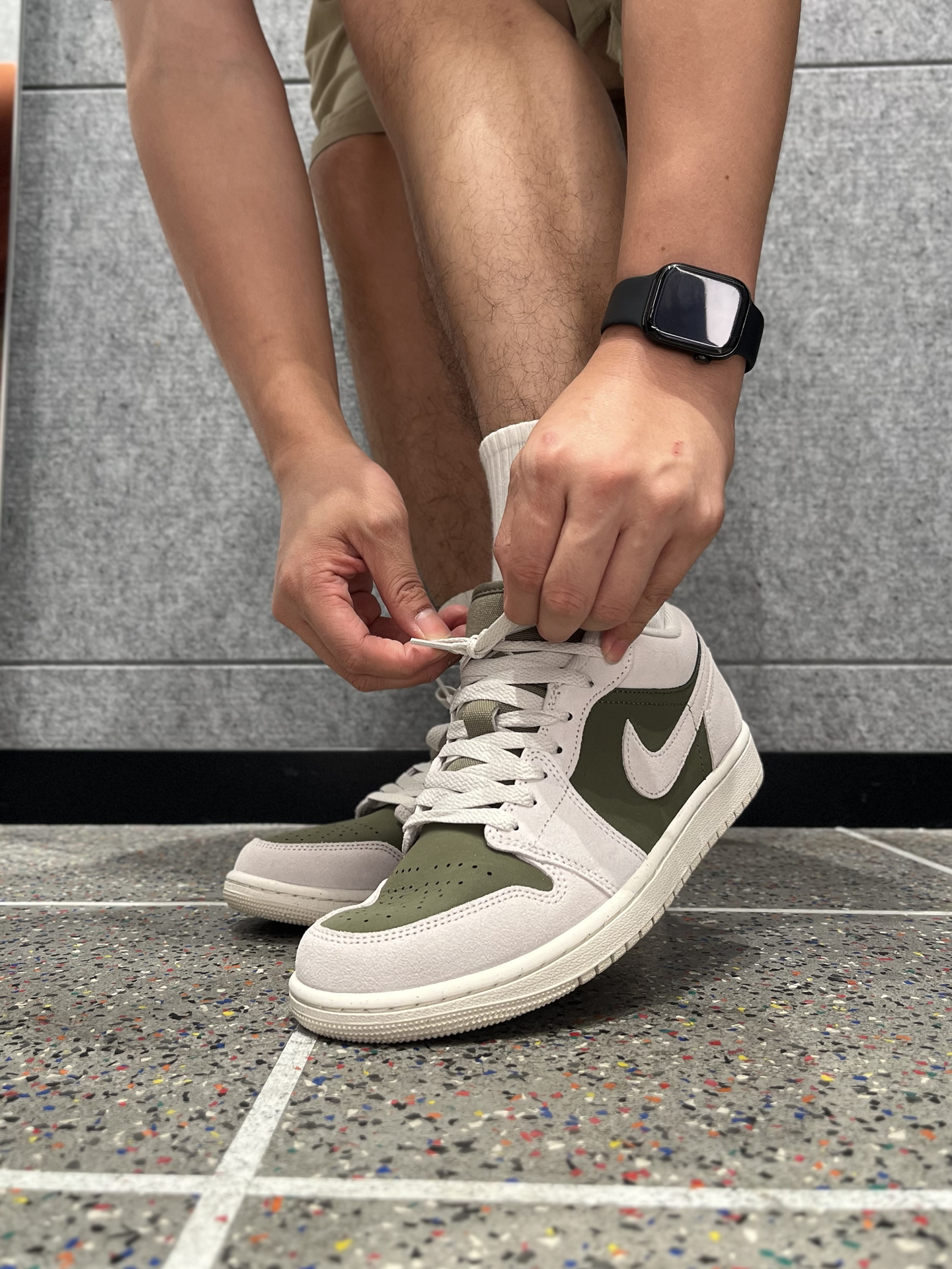 近期发现这双AJ1橄榄绿,和倒钩8.0颜色相近,实物颜色比想象中更柔和~ 不是那种很深的绿,带点抹茶色调,麂皮鞋面细腻,摸起来有质感;但脚感方面中规中矩,比较平一点 米灰和橄榄绿的搭配,复古又干净,秋冬配牛仔裤、工装裤都很合适。 只不过平时清洁要注意,麂皮别沾水,用软刷打理即可~ #新鞋零时差 #球鞋真心话 #好物分享橄榄绿AJ1 #橄榄绿配色Nike #开学先迈哪只脚