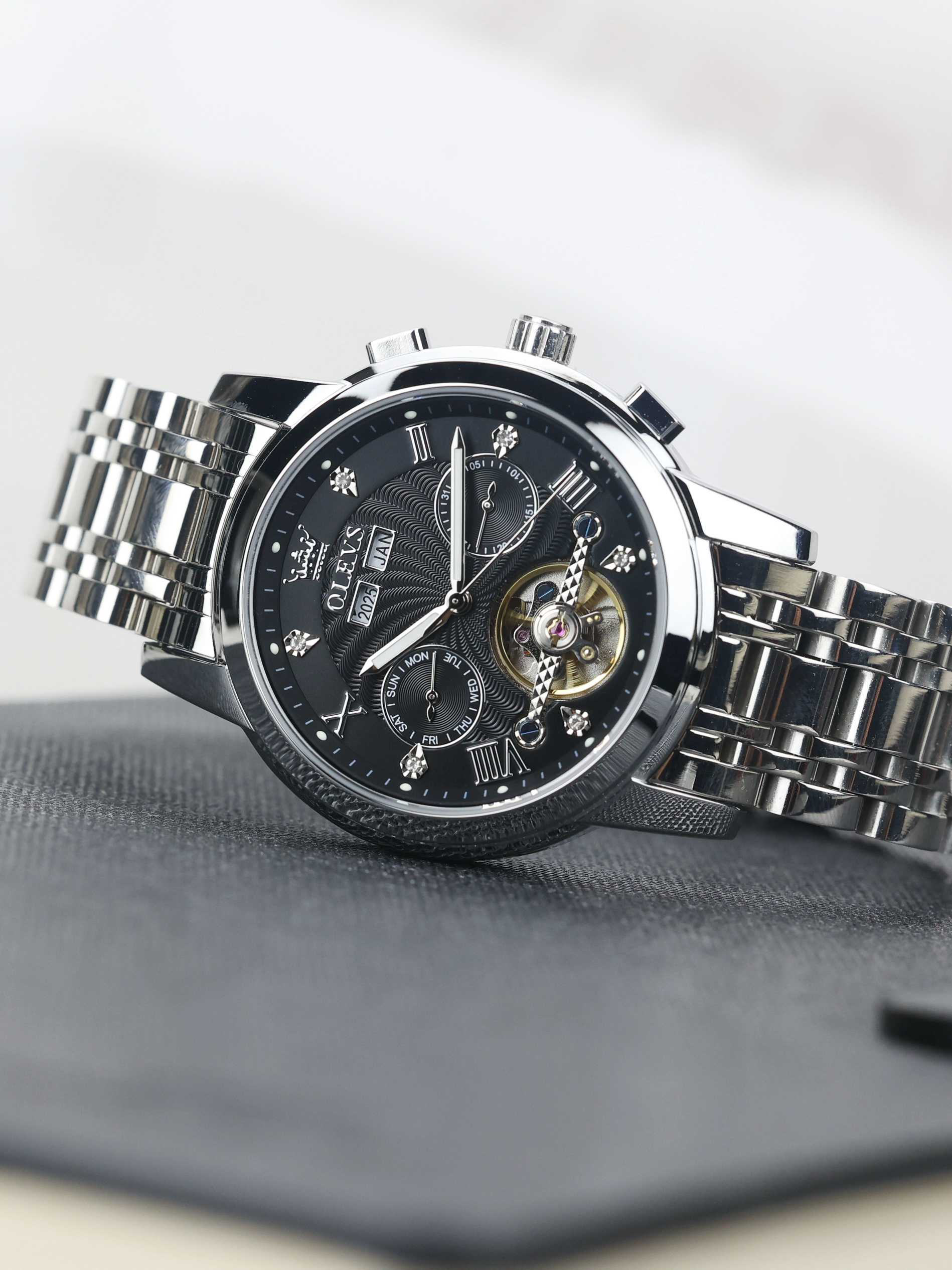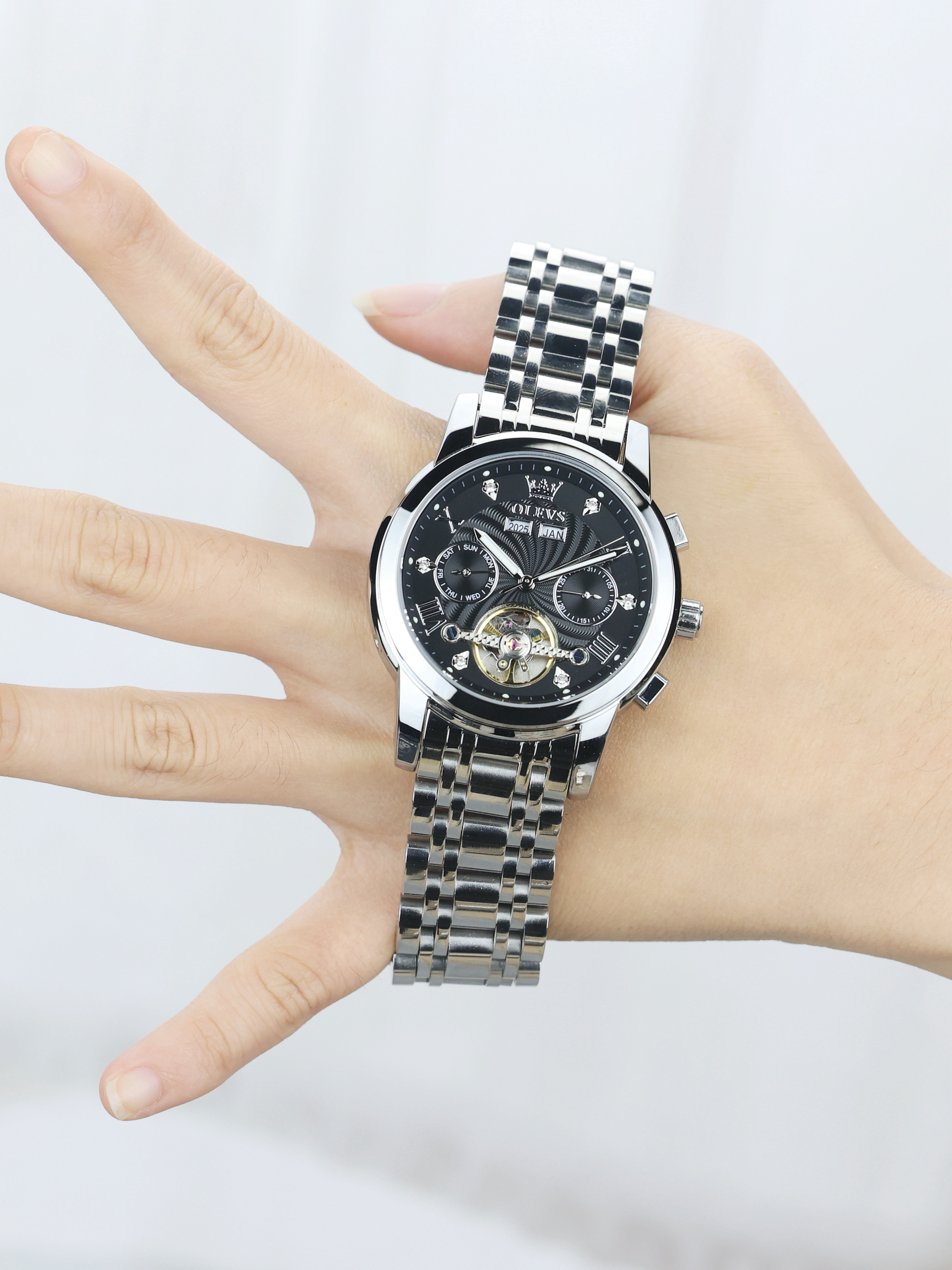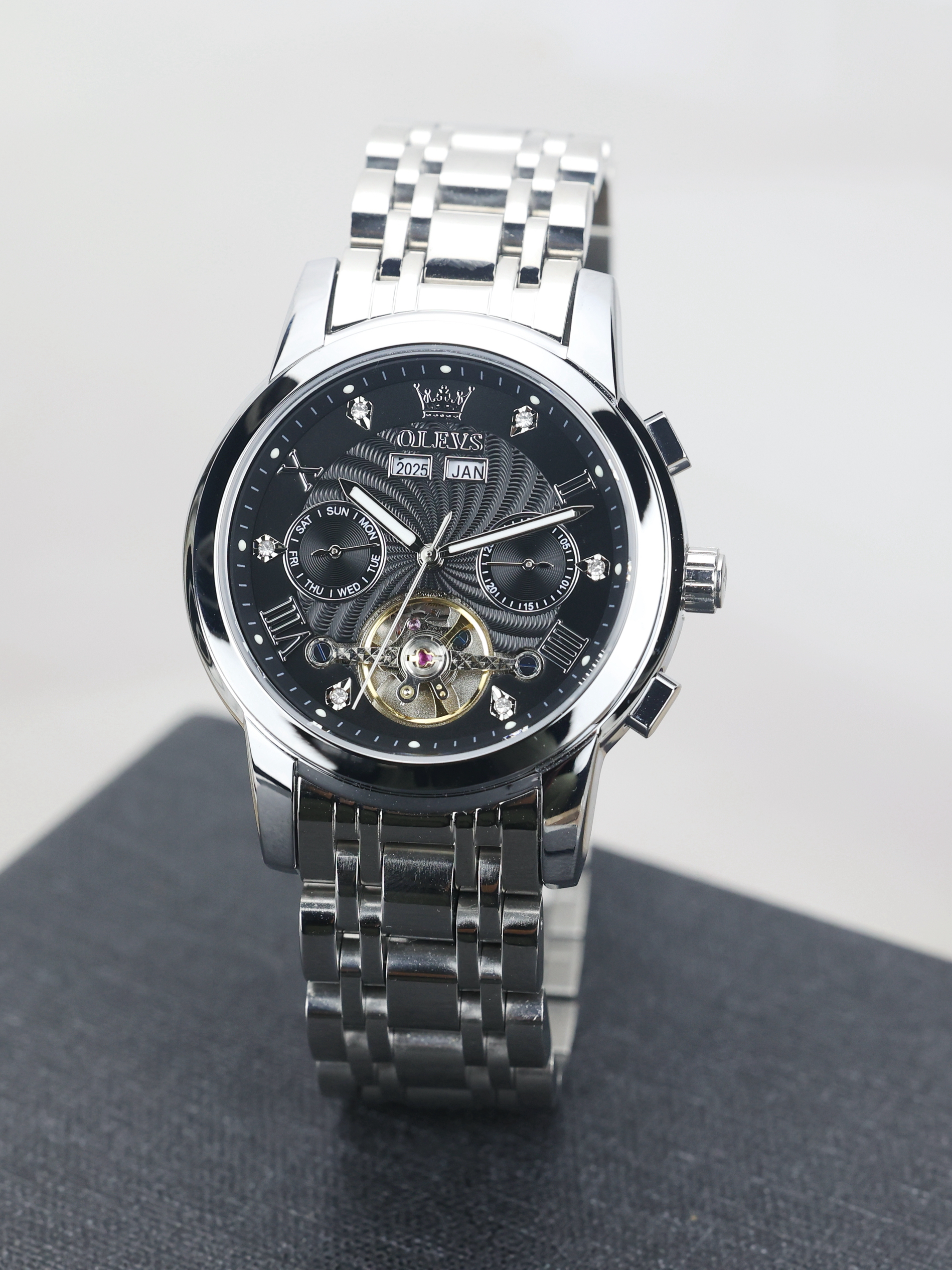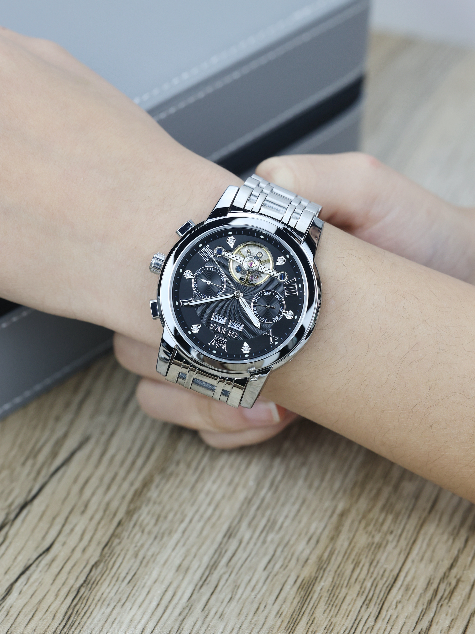 本篇笔记关联了OLEVS/欧利时 瑞士认证品牌双日历黑科技高档钢带霸气多功能夜光防水运动镂空机械男士手表 本色黑面、OLEVS/欧利时 瑞士认证品牌双日历黑科技高档钢带霸气多功能夜光防水运动镂空机械男士手表 【礼盒装】钢带本黑等商品,为用户提供真实的使用体验和购买参考。