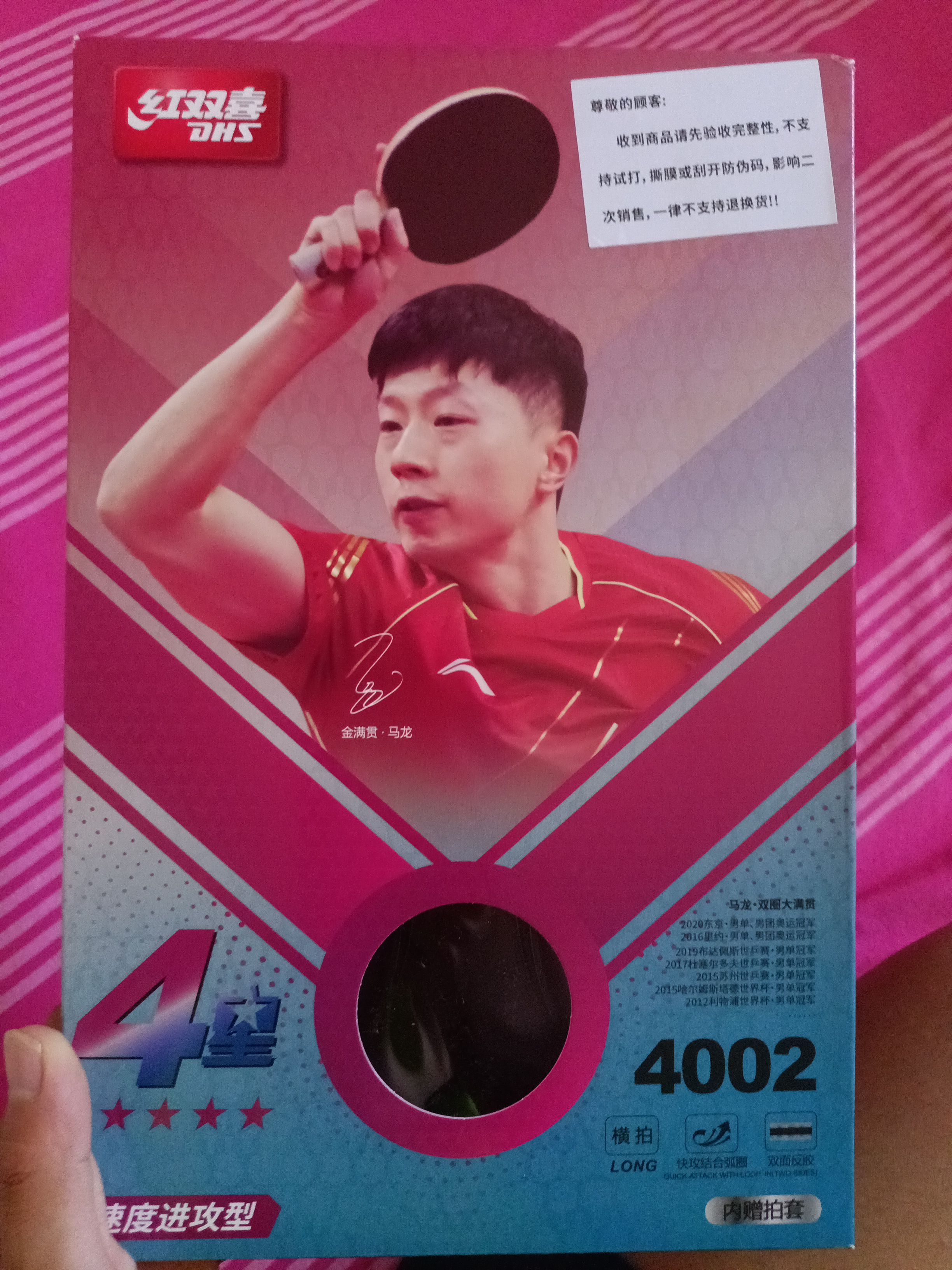 本篇笔记关联了DHS/红双喜 H系列 耐打 长柄 四星级 专业级 横拍 直横 双面反胶 全木 单拍 乒乓球拍 长柄横拍/H4002等商品,为用户提供真实的使用体验和购买参考。