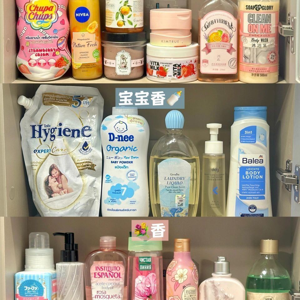 嗨嗨姐妹们下午好呀! 今天给大家分享我的香香洗护好物 致力于把自己腌入味 我什么东西都要用香的!嘿嘿 比较注重留香的时间和使用感受 这都是我长期使用下来的好物积累版 全部无广 分享的全部都是自己自费买的且使用时间超过一年以上的 味道都是一个比一个的好闻 我心中的top还是属芍药柔顺剂 把它跟水按1:2的比例混合 直接放到洗衣机里的柔顺剂口就好啦 如果家里的洗衣机是那种翻盖的 没有放柔顺剂的凹槽 可...