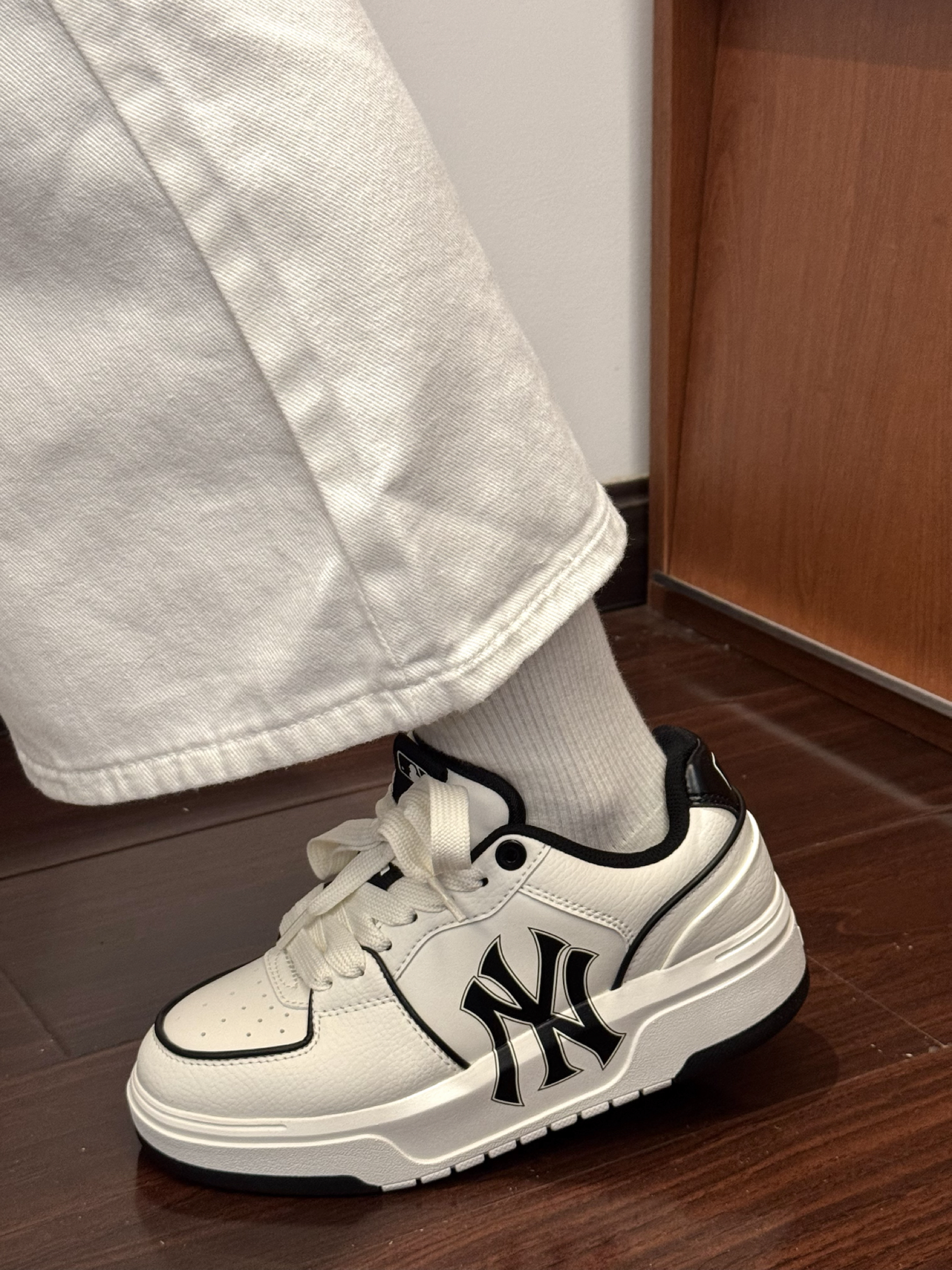 这个MLB的小白鞋谁穿谁知道 这个厚底增高效果真挺明显的 而且整体的黑白配色就是很百搭 我觉得上脚的脚感很软,鞋底和鞋垫双重脚感 平时我搭配一个白色牛仔裤穿着出门就很时尚