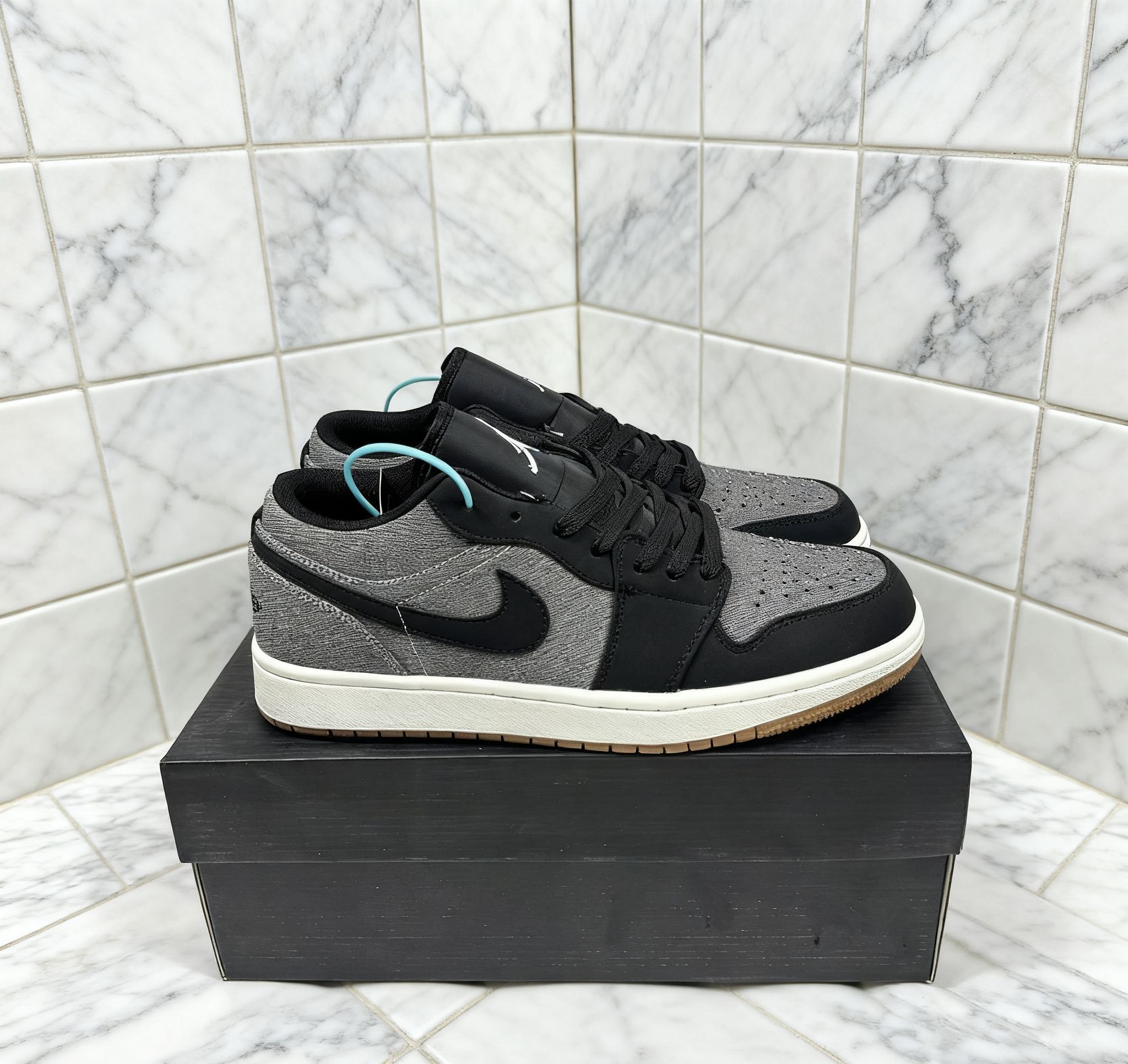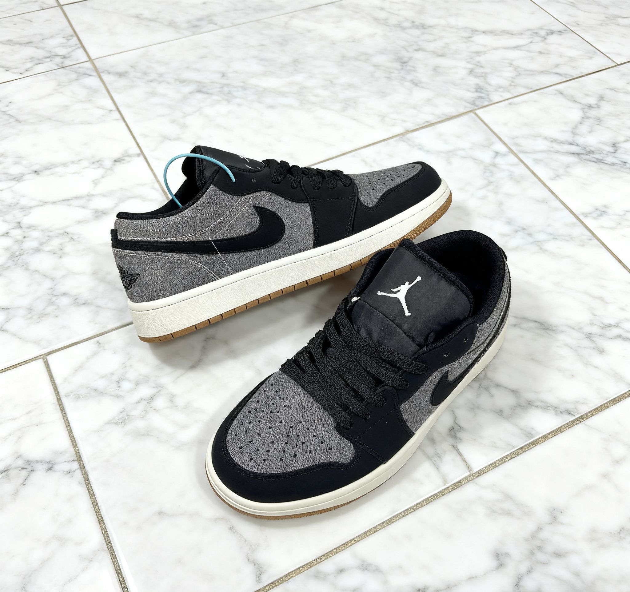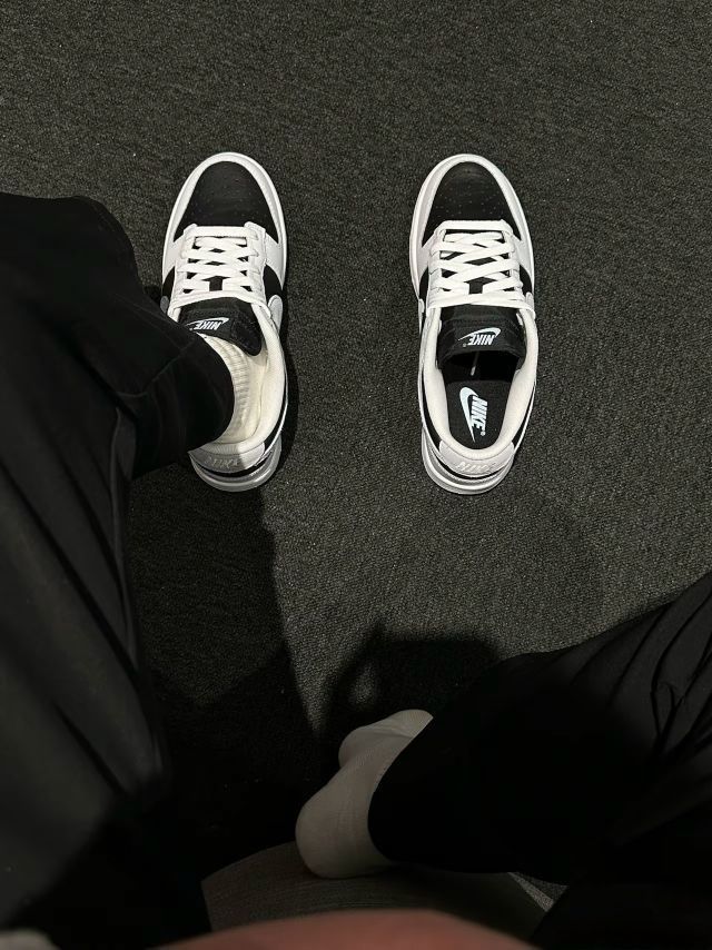 鞋面拼接设计很有质感,灰黑配色低调又高级,日常搭配牛仔裤、休闲裤都很绝,完全不挑风格~脚感比想象中舒服,长时间走路也不会太累,而且这个配色特别耐脏,懒人狂喜😝!细节处的飞人logo和后跟图案很精致,穿上很有辨识度,小众又不会撞款。