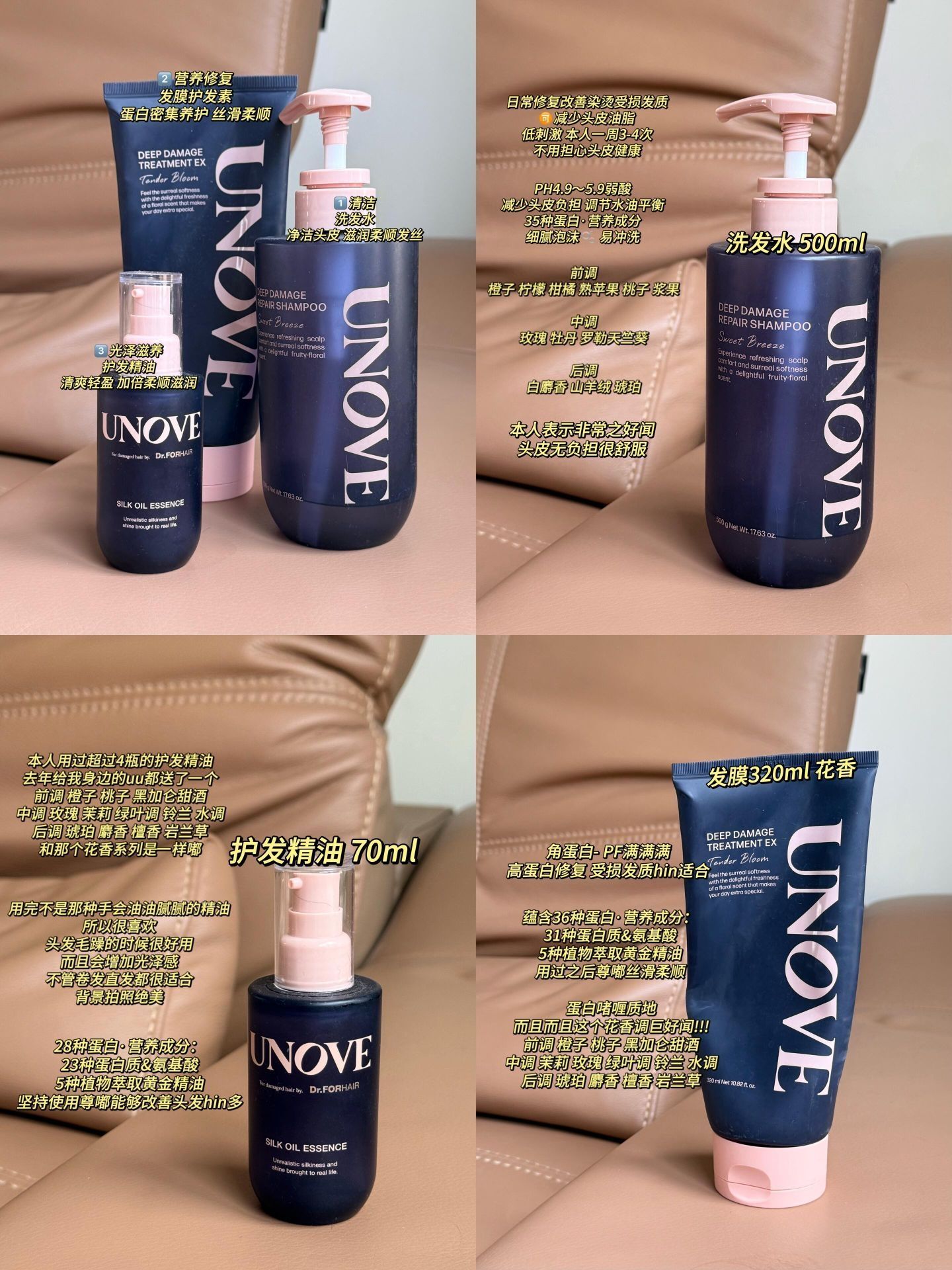 本篇笔记关联了UNOVE 深层烫染修复发膜 改善干枯 木制花香、UNOVE 丝柔护发精油 蛋白柔顺滋养留香防毛躁 修复受损、UNOVE 营养柔顺去屑洗发水 持久留香改善缠结修护损伤发质 控油蓬松等商品,为用户提供真实的使用体验和购买参考。
