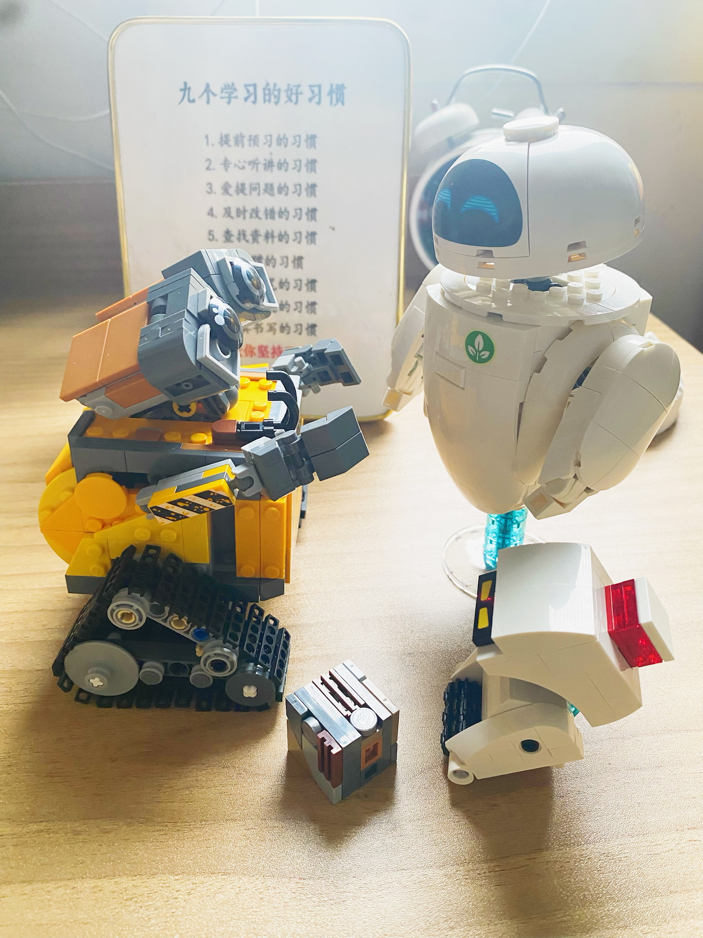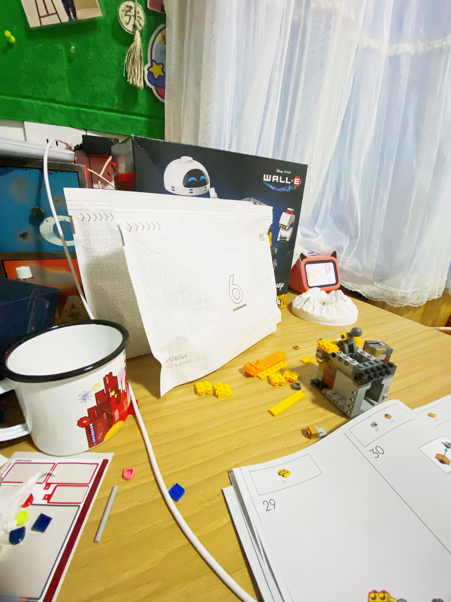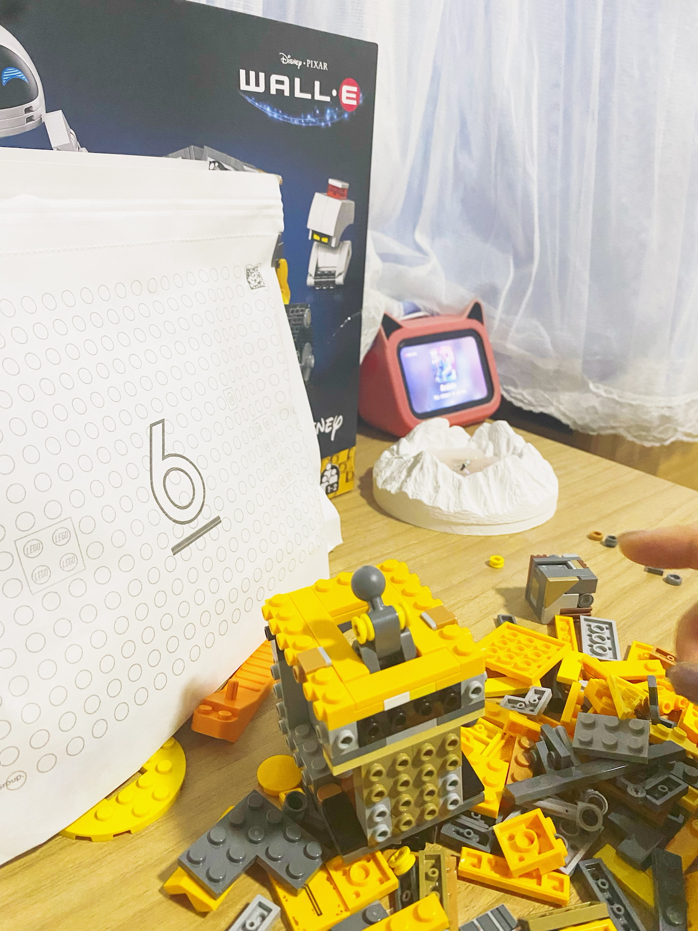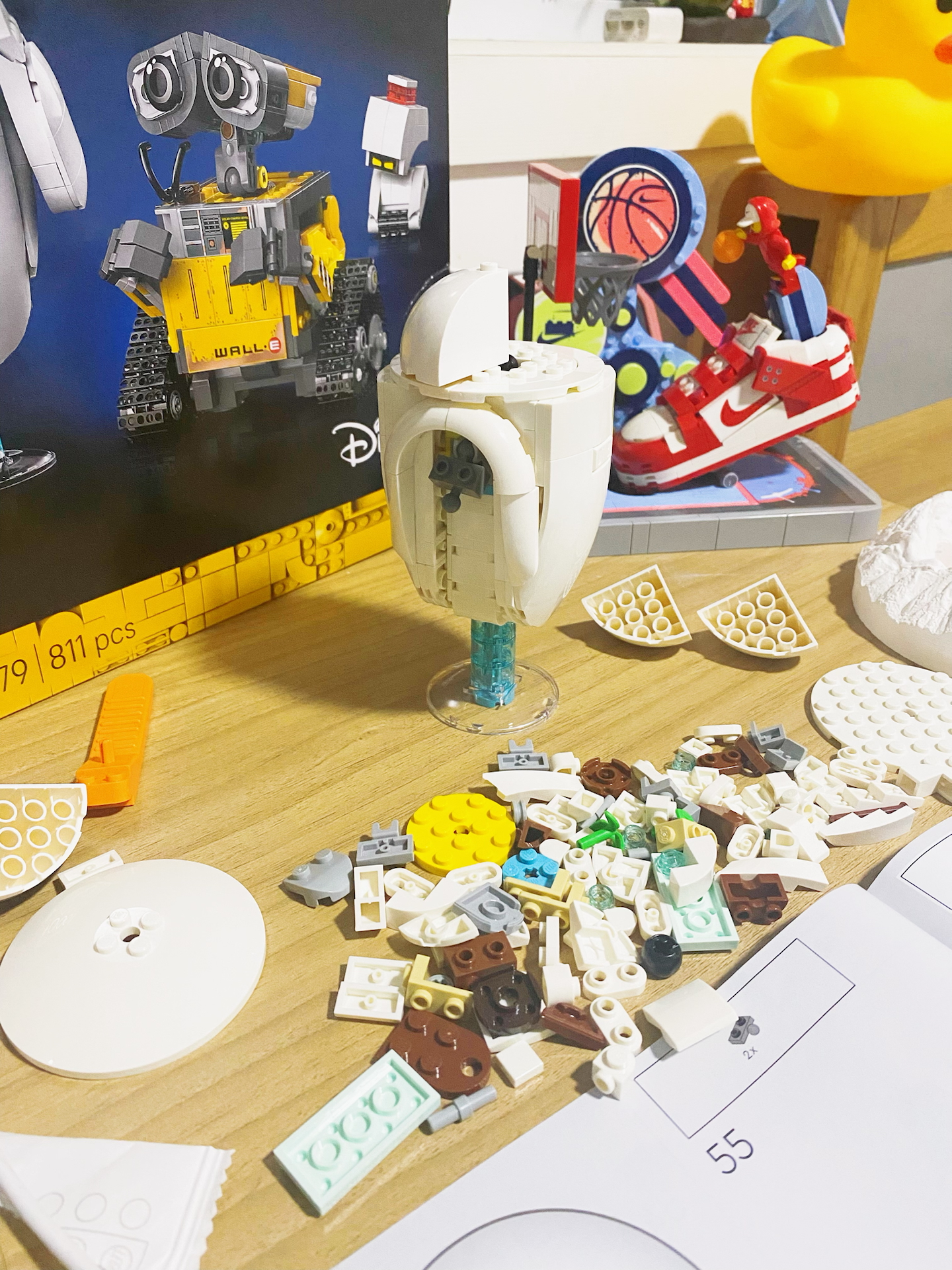 我买这个来哄自己玩~拼的时候花了两个晚上大概六小时,分成三个主体七袋零件,瓦力那袋零件最多~拼好后和之前21303款看着区别不大,但细节真的多!瓦力肚子能开,还有小蟑螂;伊娃肚子里藏着小鞋子,这些小设计好戳我🥹 就是拼的时候得耐着性子找零件,不过拼完摆桌上,每次看都好治愈!