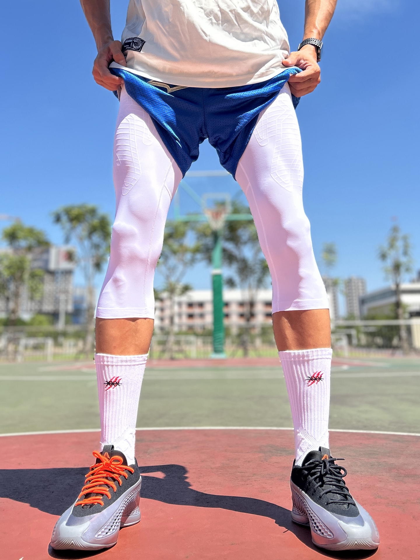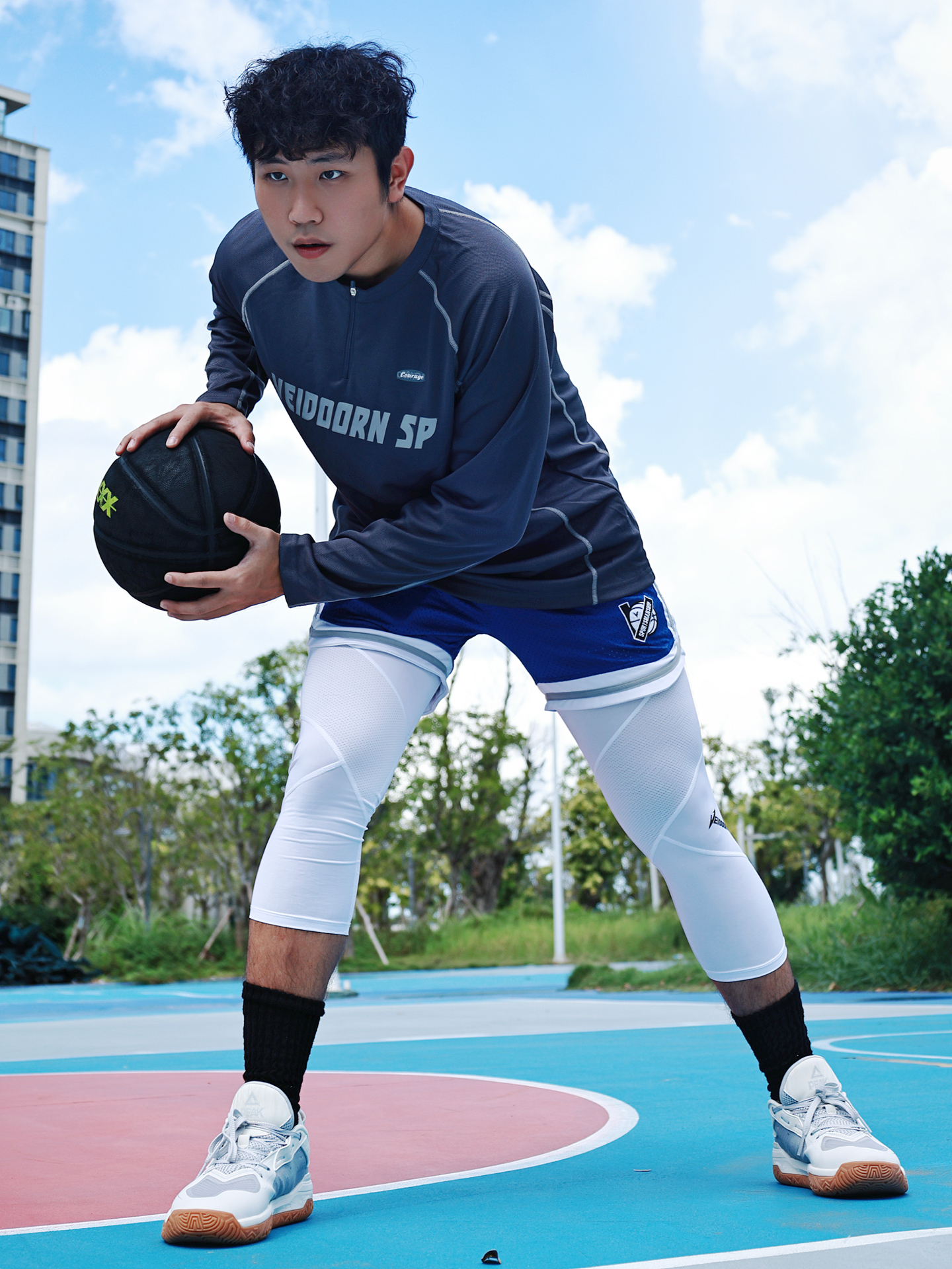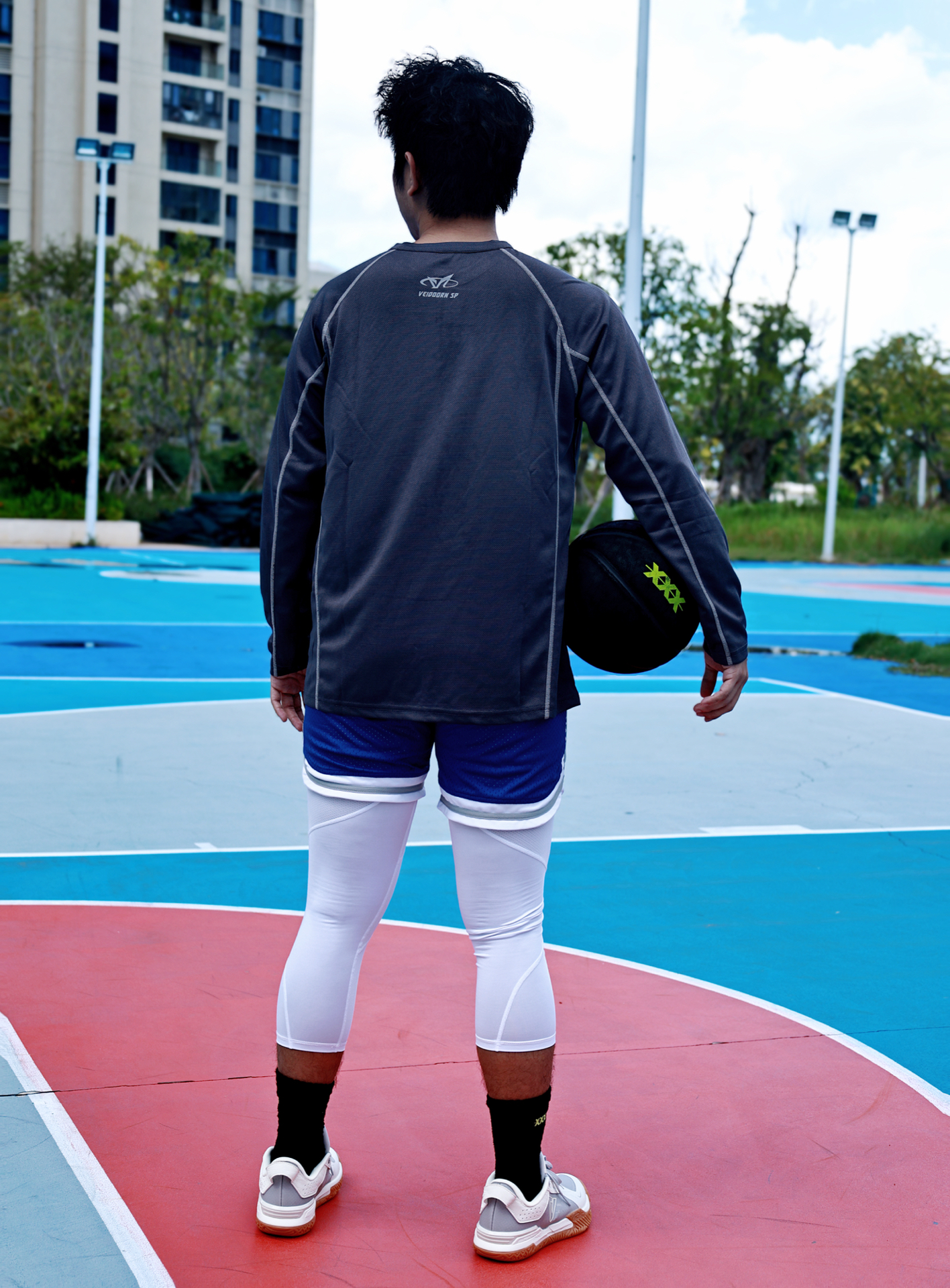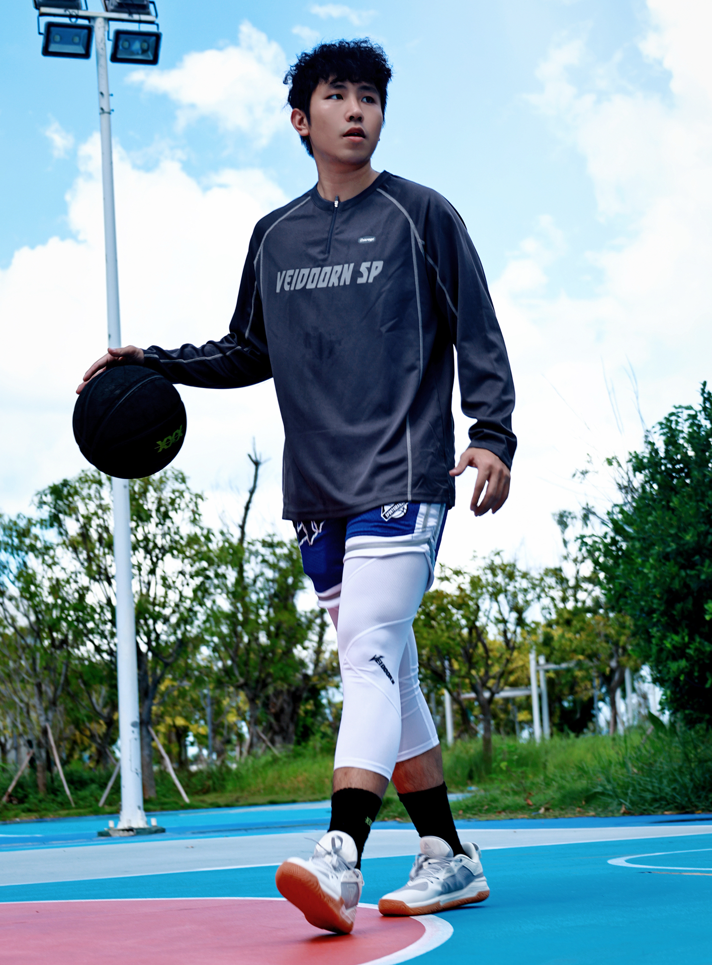 上身VEIDOORN SP灰色长袖,半拉链设计利落有范,面料透气不闷汗,运动时自在无拘✨ 下身蓝短裤叠穿白色紧身七分裤,撞色吸睛还能保护肌肉,跑跳突破更有底气💪 身高175、体重150的兄弟直接冲L码,版型宽松不拖沓,不管是实战还是出街都能轻松驾驭😎 #维动半拉链长袖投篮服 #秋冬鞋柜大焕新 #我要打篮球 #篮球生必不可少的训练裤 #打球男生穿搭
