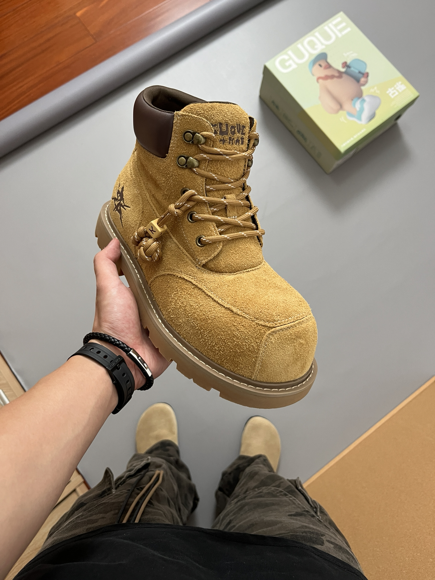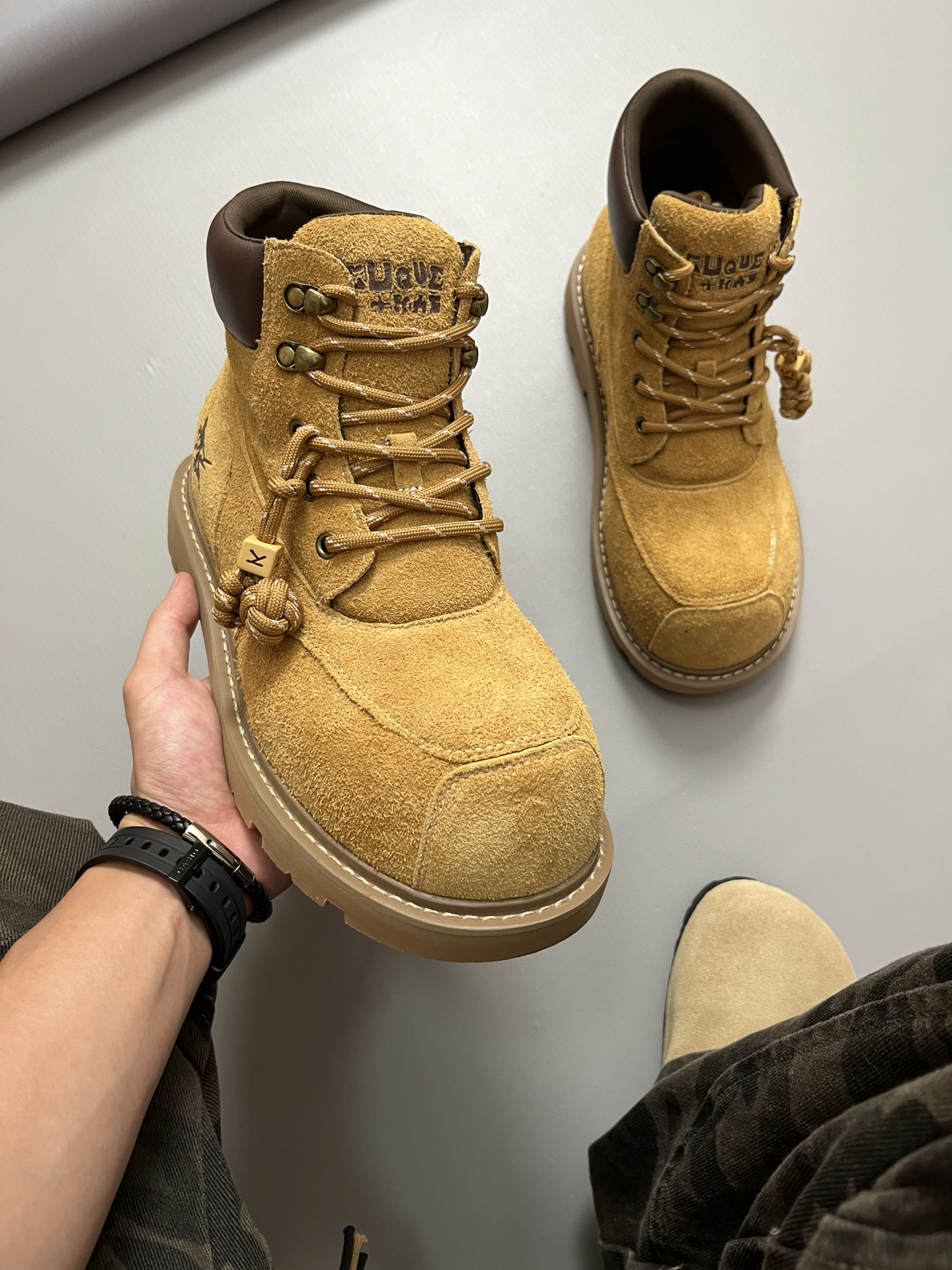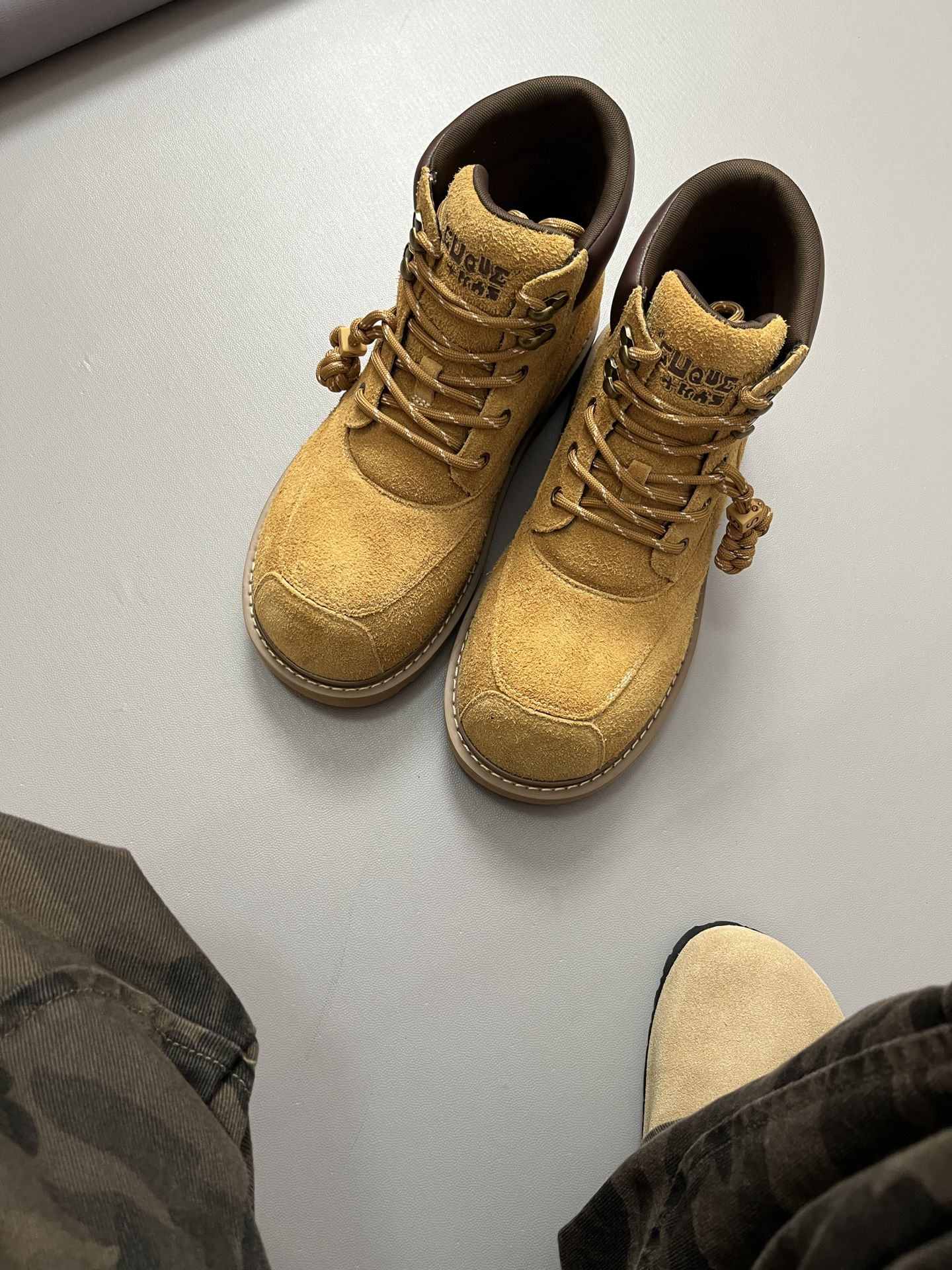 哇趣!!现在马丁靴也卷颜值和独特了吗? 好喜欢 #古雀 家这双不一样的大黄靴!🔥 翻毛皮的鞋面摸着好有质感☁️ ✅鞋头做了圆鼓设计,视觉效果更佳的 ✅各处小细节点缀,让它区别于普款 上脚舒适有温度,没有特别的厚重感‼️ 日常搭配一条美式工装迷彩裤,炸街很简单! ⚠️尺码参考:170/120 穿着 41 不偏码的 @潮流精选 #古雀GUQUE #今日宝藏百搭马丁靴 #秋冬的第一双大黄靴 ...