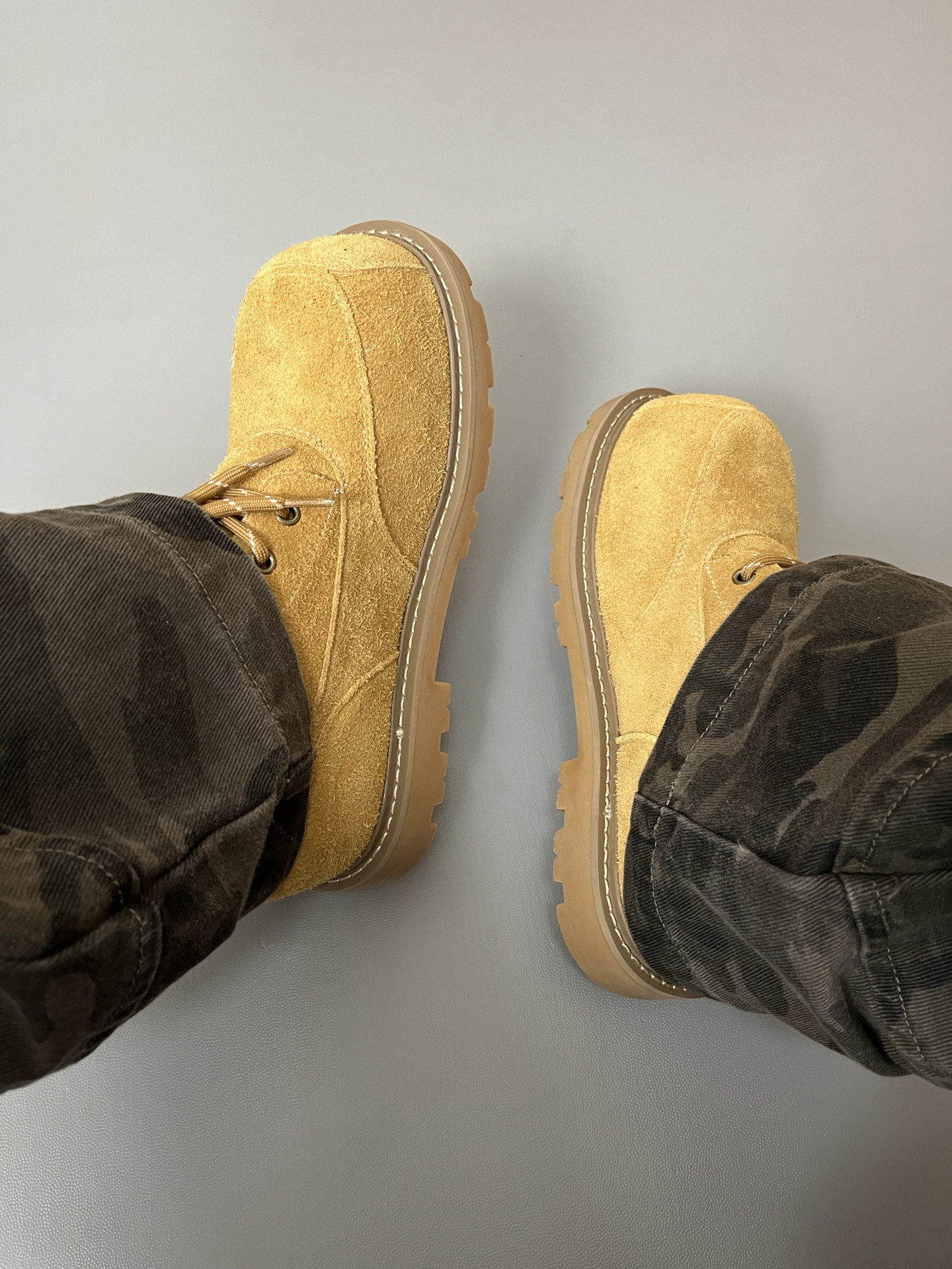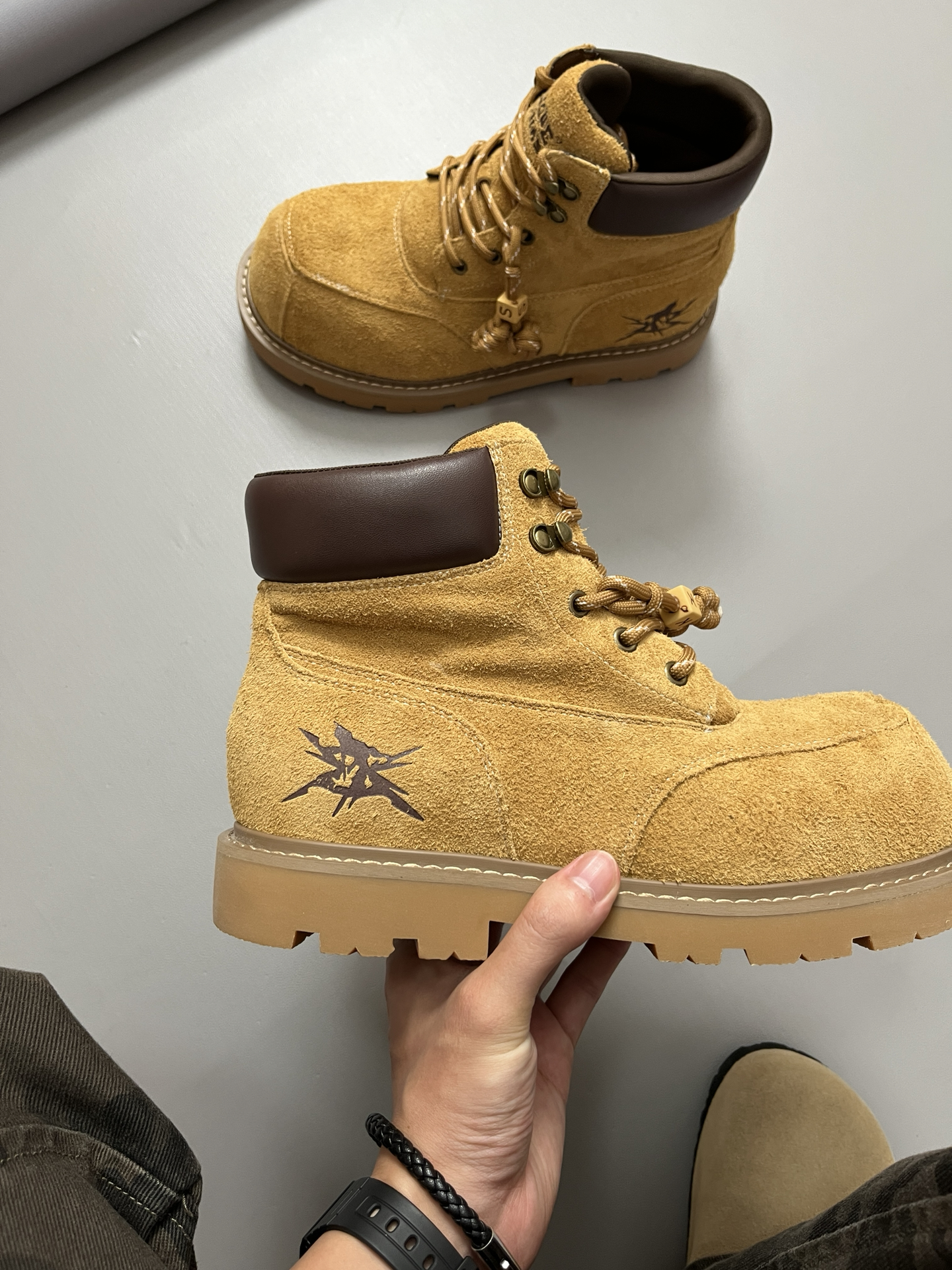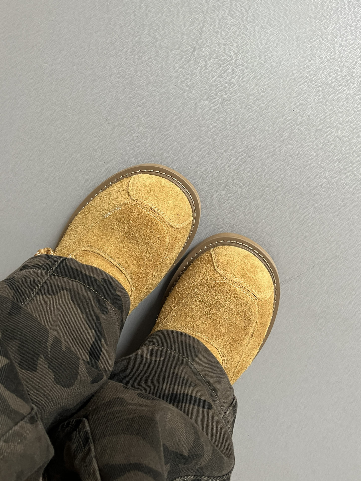 哇趣!!现在马丁靴也卷颜值和独特了吗? 好喜欢 #古雀 家这双不一样的大黄靴!🔥 翻毛皮的鞋面摸着好有质感☁️ ✅鞋头做了圆鼓设计,视觉效果更佳的 ✅各处小细节点缀,让它区别于普款 上脚舒适有温度,没有特别的厚重感‼️ 日常搭配一条美式工装迷彩裤,炸街很简单! ⚠️尺码参考:170/120 穿着 41 不偏码的 @潮流精选 #古雀GUQUE #今日宝藏百搭马丁靴 #秋冬的第一双大黄靴 ...