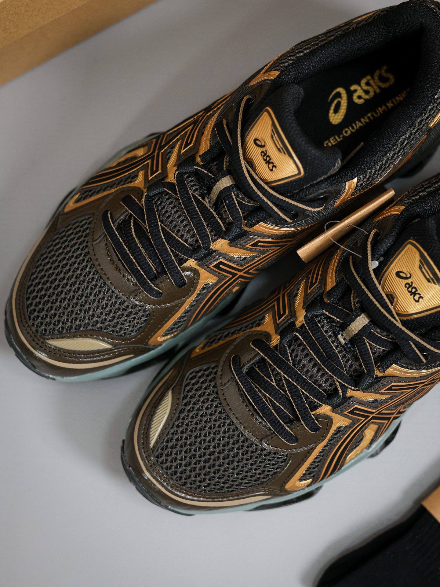 本篇笔记关联了Asics/亚瑟士 Gel-Quantum Kinetic 跑鞋 人造革减震防滑耐磨拼接网面透气圆头合成革复古长跑 黑色/金色等商品,为用户提供真实的使用体验和购买参考。