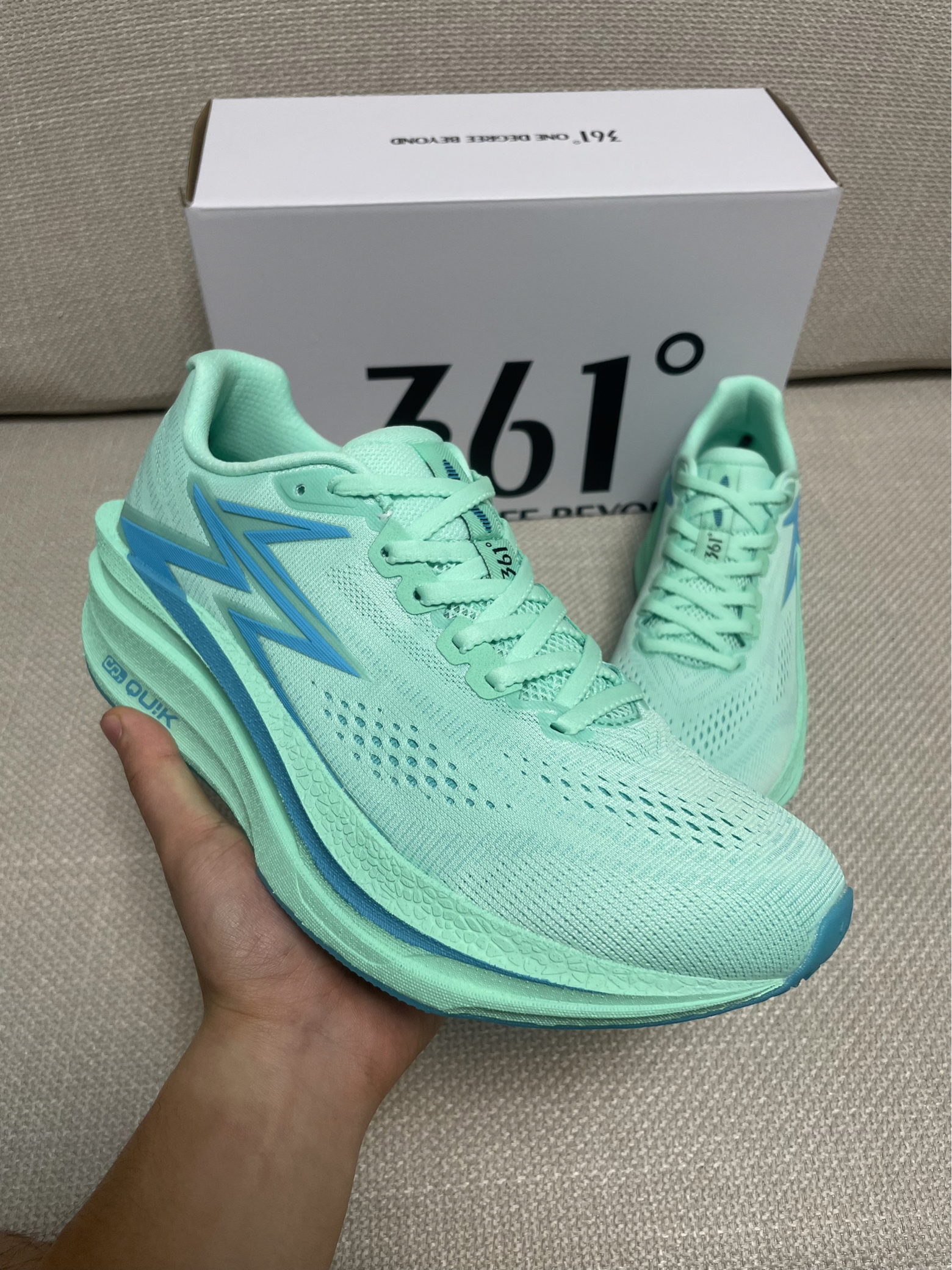 用的是361°的Q弹超科技中底,我72kg踩上去不硬邦邦,跑15公里后膝盖也没“硌得慌”的感觉。体考生天天刷圈,穿它练一个月,脚踝和膝盖都没喊过累。