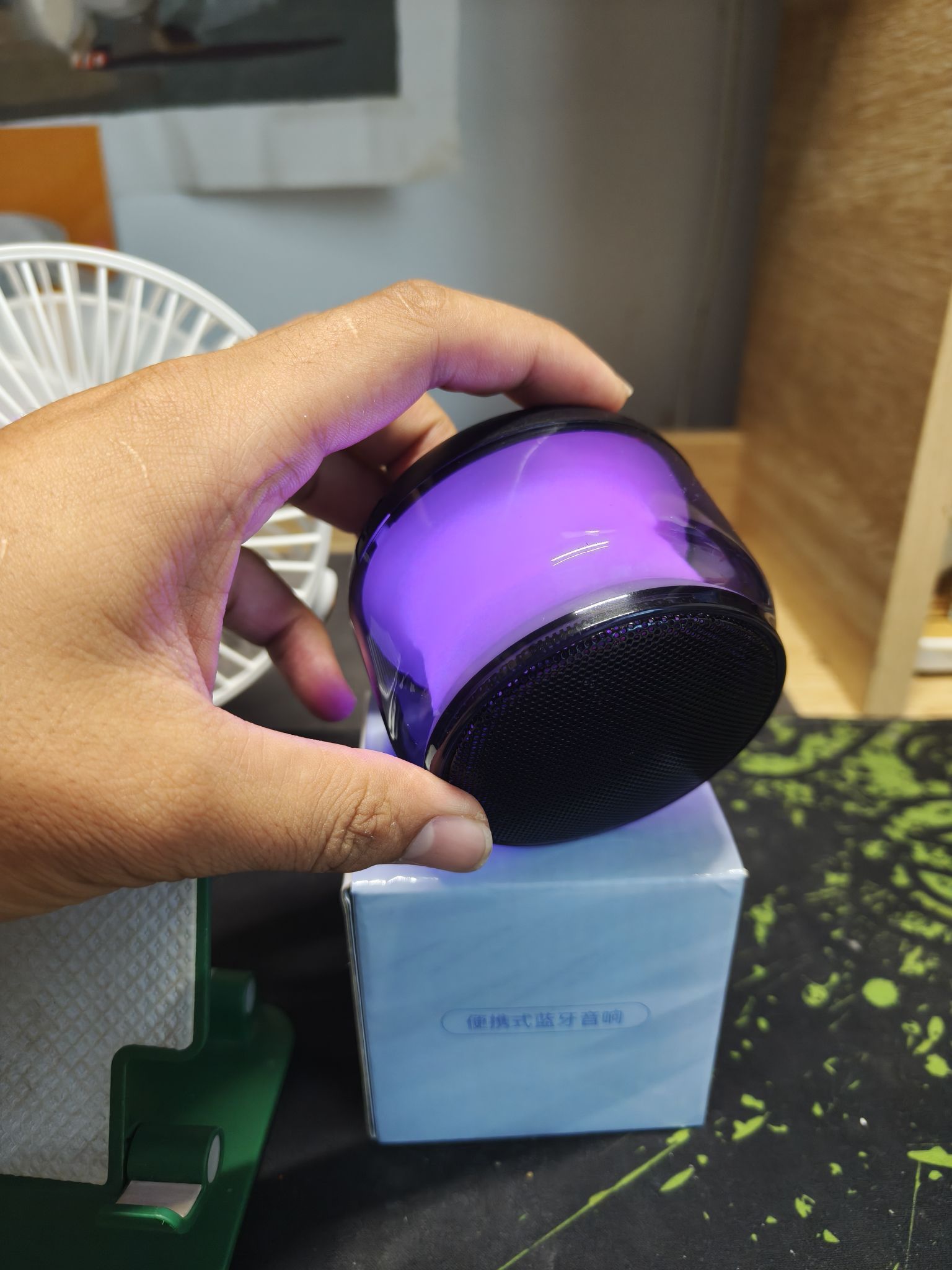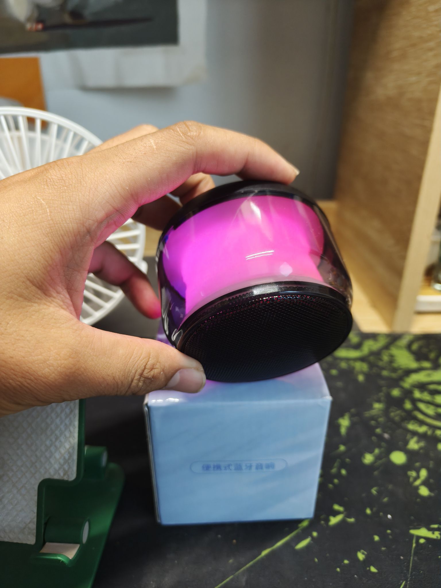 被颜值戳中!它的外观设计精致小巧,通透的机身搭配灯光效果,摆在桌面很吸睛,外出揣兜里、放包里也不占地方,随时能带着走~ 音质超出预期!别看它体积不大,播放音乐时声音清晰,低音部分也有不错表现,不管是听流行歌的节奏感,还是纯音乐的氛围感都能hold住,平时用来放松听歌、跟朋友分享喜欢的曲目都很合适~ 连接很方便!蓝牙配对速度快,和手机、平板等设备连接后很稳定,基本不会出现断连情况,想换设...