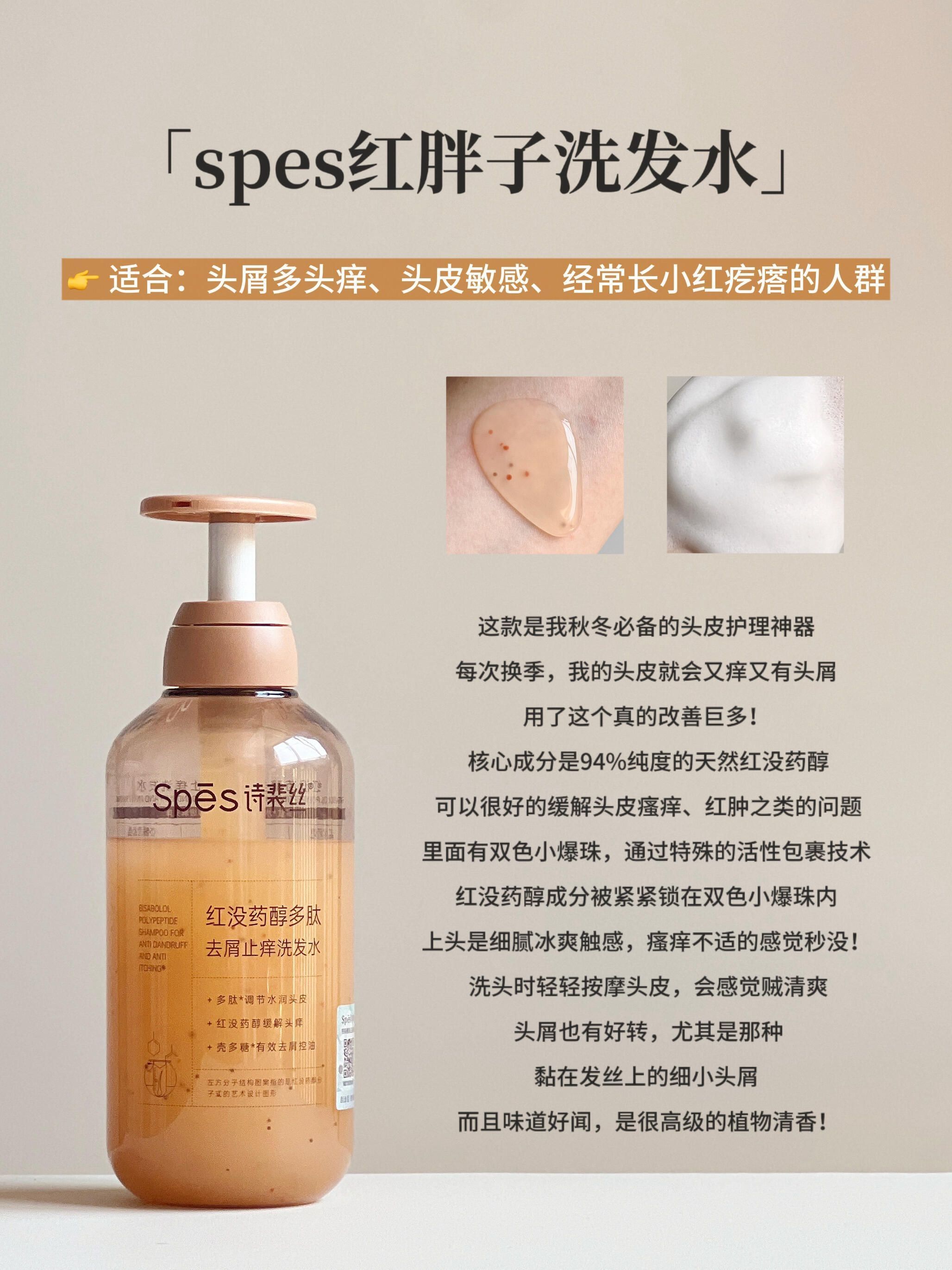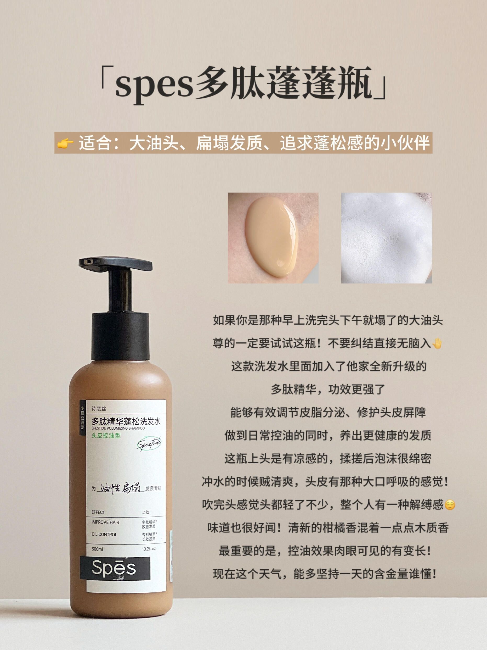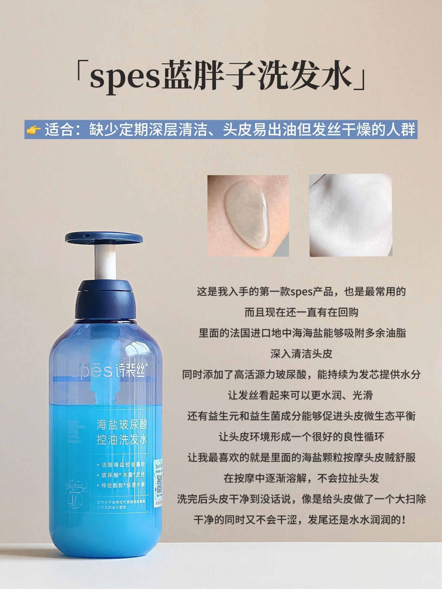 本篇笔记关联了spes 蓝胖子海盐玻尿酸控油洗发水 去屑止痒长效 控油蓬松、spes 红没药醇多肽洗护套装 止痒蓬松 洗发水500ml+护发素500ml、【宋佳同款】spes 多肽精华蓬松洗发水 清爽控油柔顺温和配方改善发质强韧发丝 发丝修护型等商品,为用户提供真实的使用体验和购买参考。