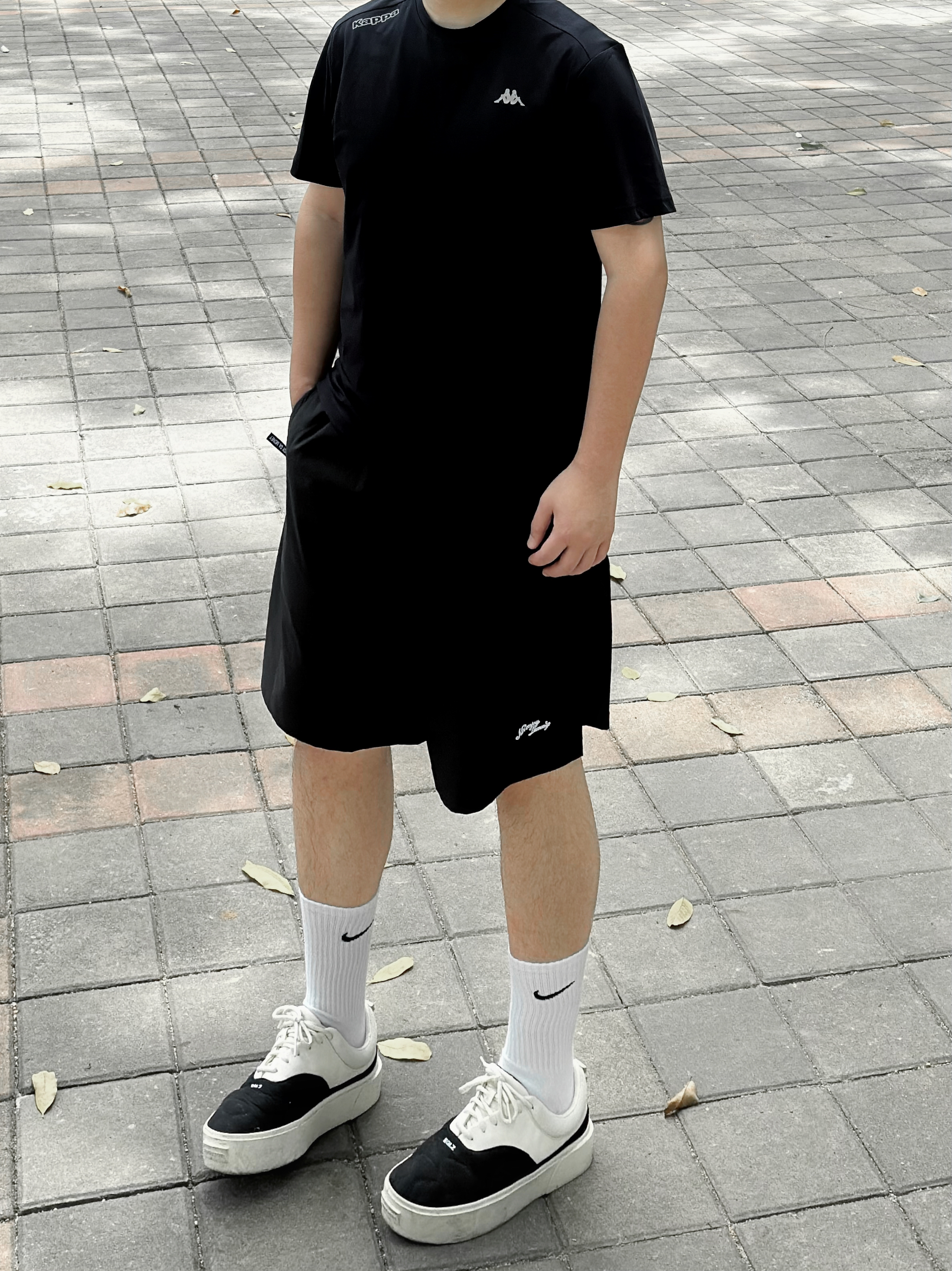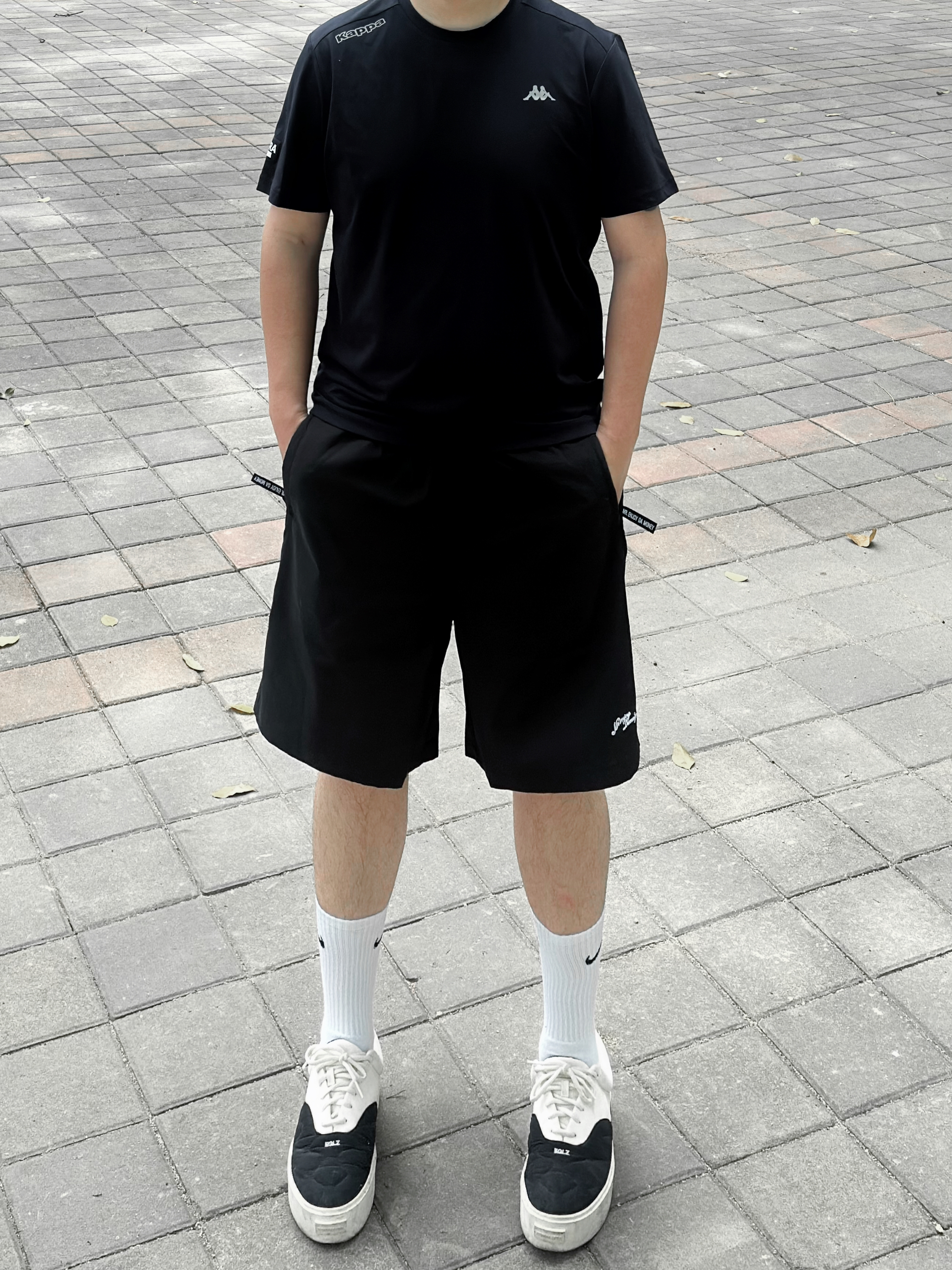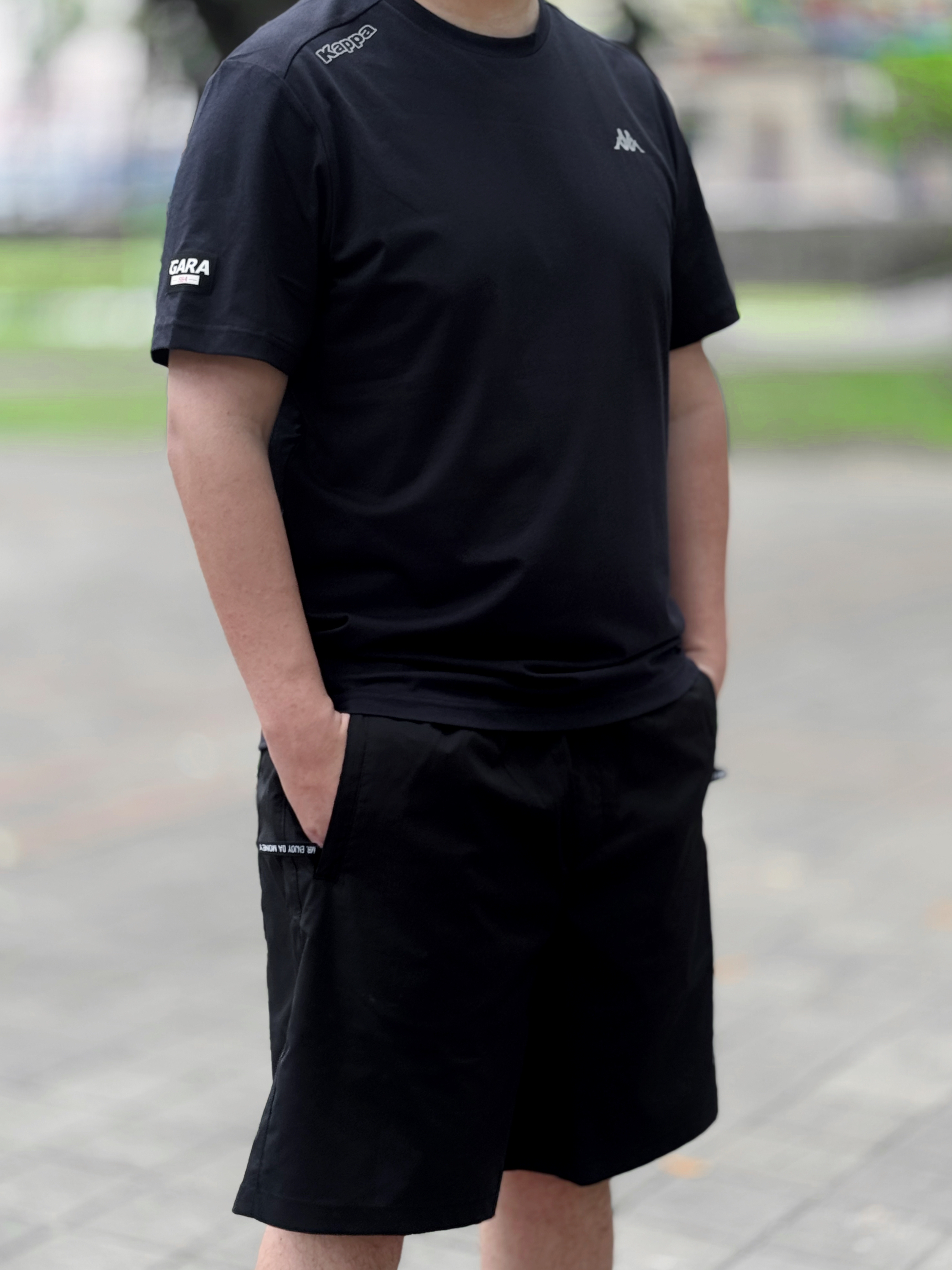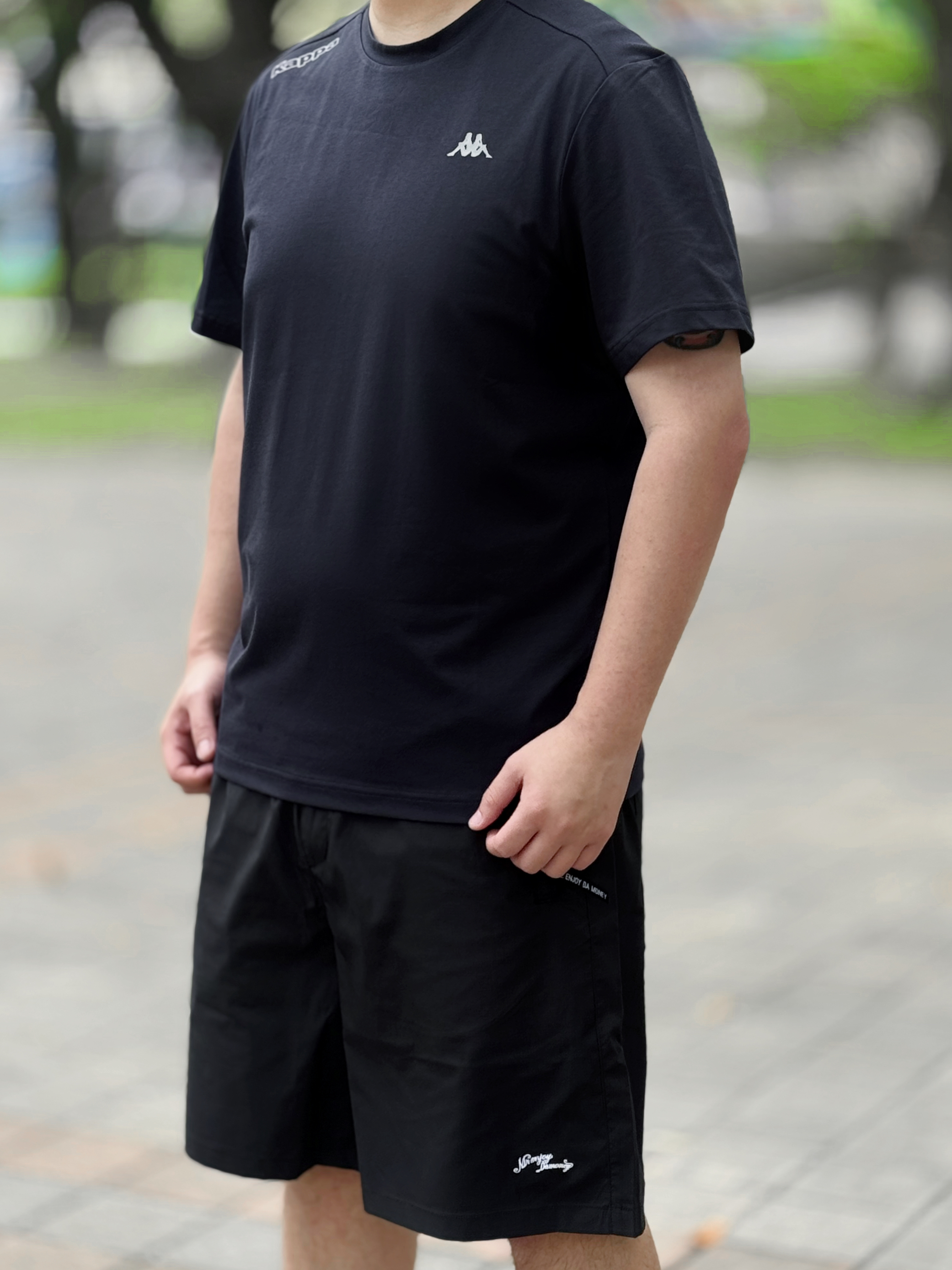 👔 今日穿Kappa GARA系列黑色防晒速干T恤 修身版型显身材 凉感的面料上身舒适度高 👖下身搭配条美式运动短裤和一双百搭板鞋 身高丨体重丨尺码 : 178丨90kg丨XXL