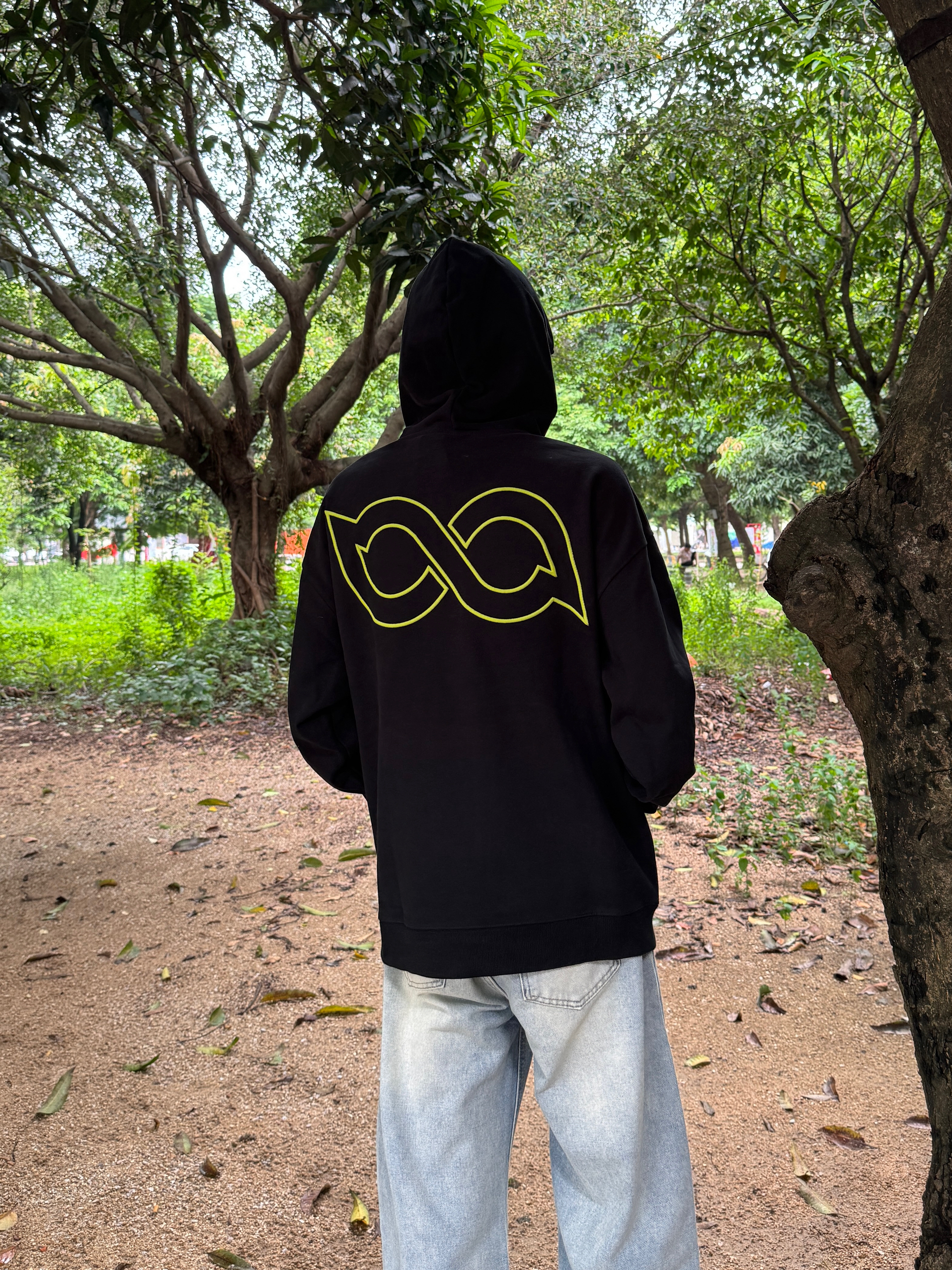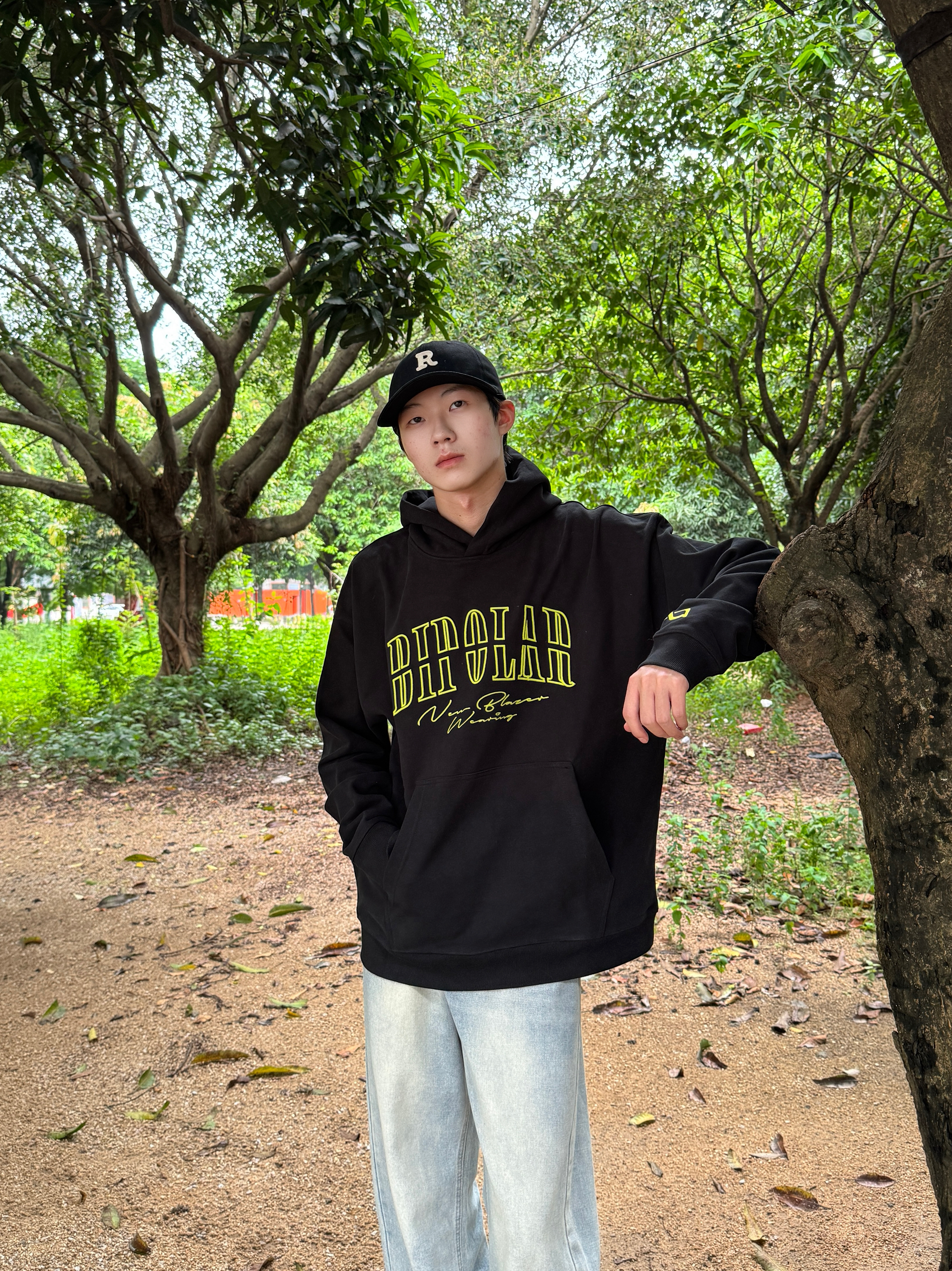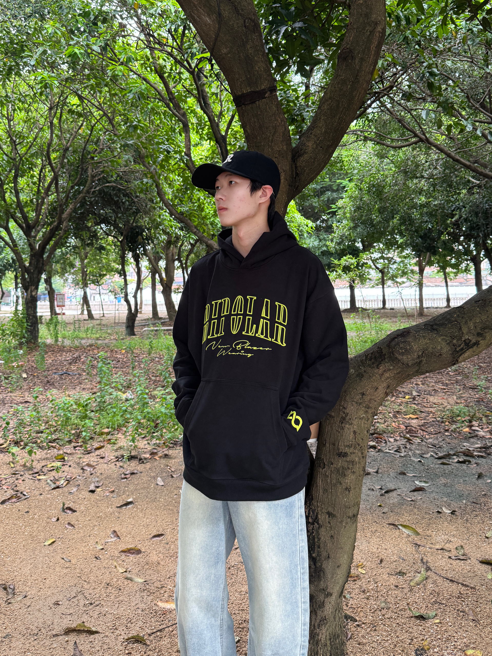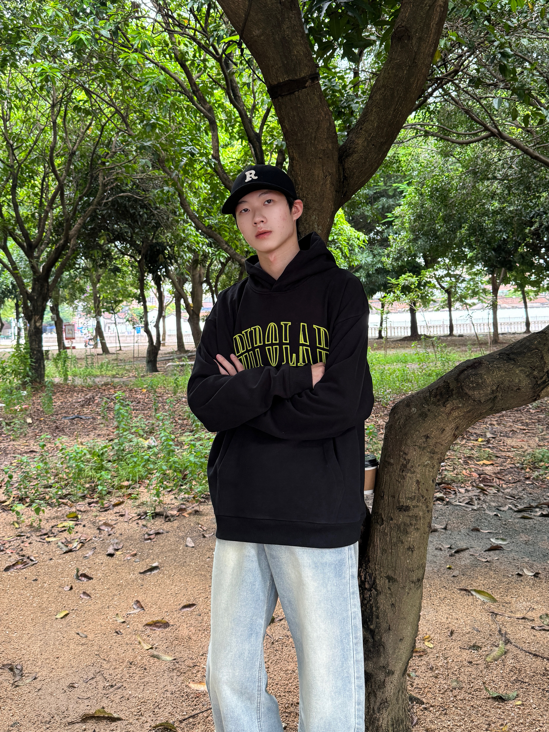这件卫衣超有料 断开字母的硅胶立体绣超带感 廓形连帽设计街头范儿拉满~ 搭配经典水洗蓝牛仔裤 磨白做旧效果和黑色碰撞出随性不羁的气质 一套穿出门直接帅到失语