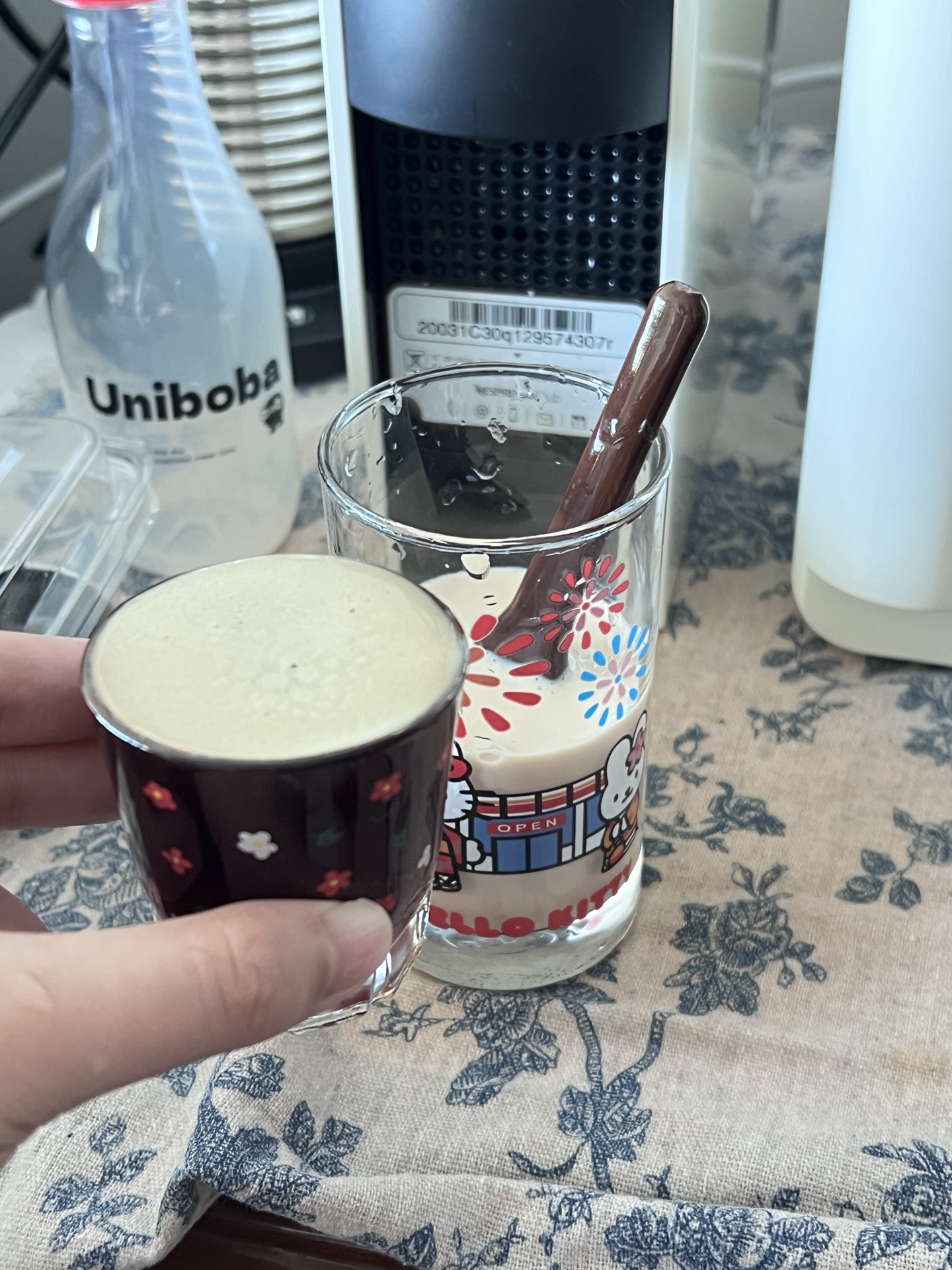我发现用这台咖啡机搞DIY奶茶好快乐! 先倒红茶奶,再萃杯意式浓缩,勺子一搅分层绝绝子~ 就是胶囊消耗快,得囤货😂 但架不住它做咖啡做特调都顺手哇!