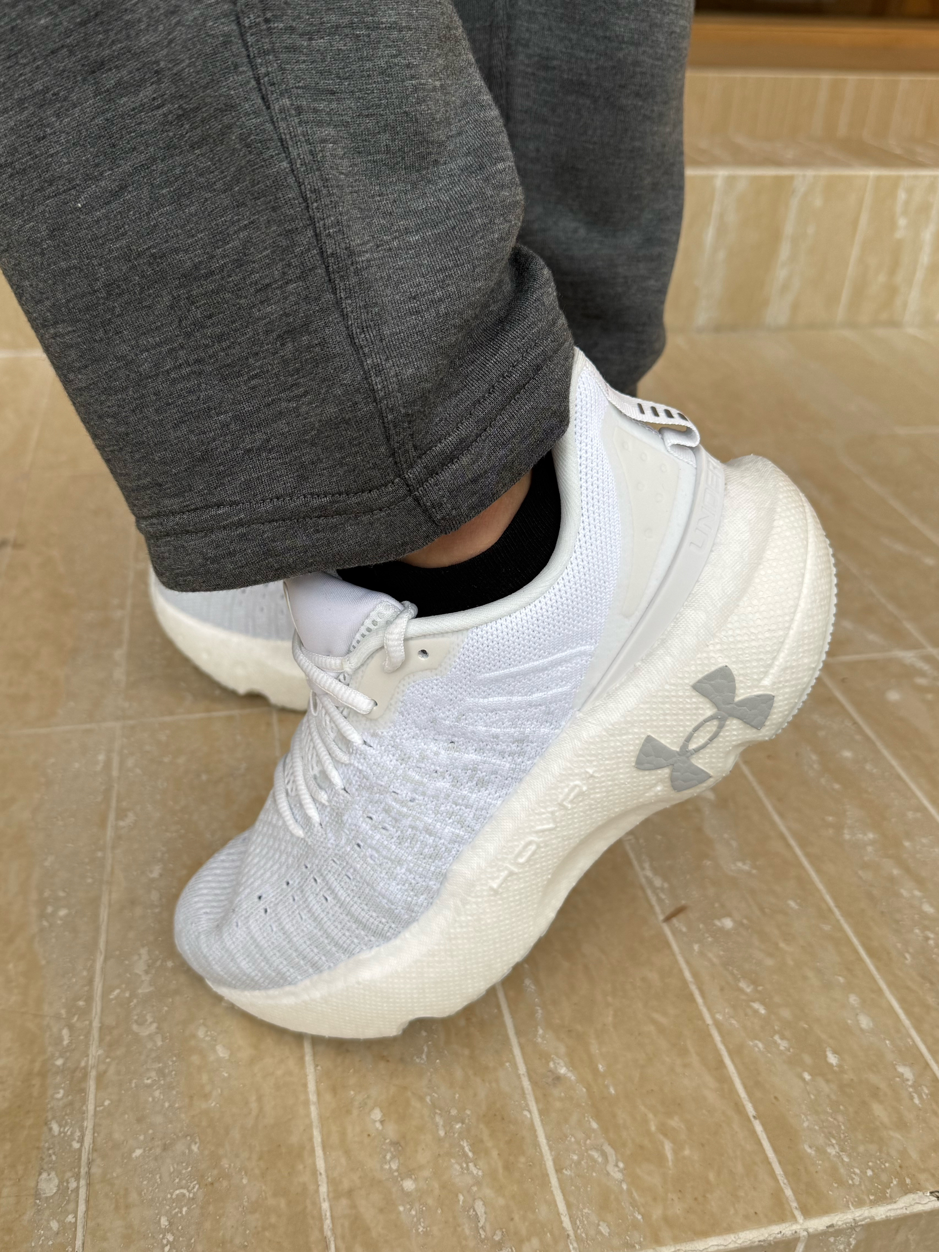 最近超爱这种轻松自在的运动感穿搭 尤其这件 自Under Armour 立领长袖T 领口利落不卡脖 面料轻薄又速干起风的时候微微飘起 整个人都显得很轻盈X QUnder Armour 鞋子是让我惊喜的部分纯白色+流畅鞋型 清爽又容易搭配~重点是鞋底又软又弹走起路来像踩着软垫 偷偷增高还不累脚 这一套不管是晨跑、逛街 还是出门喝杯咖啡 都舒服得不想换下来运动休闲?也可以悄悄好看