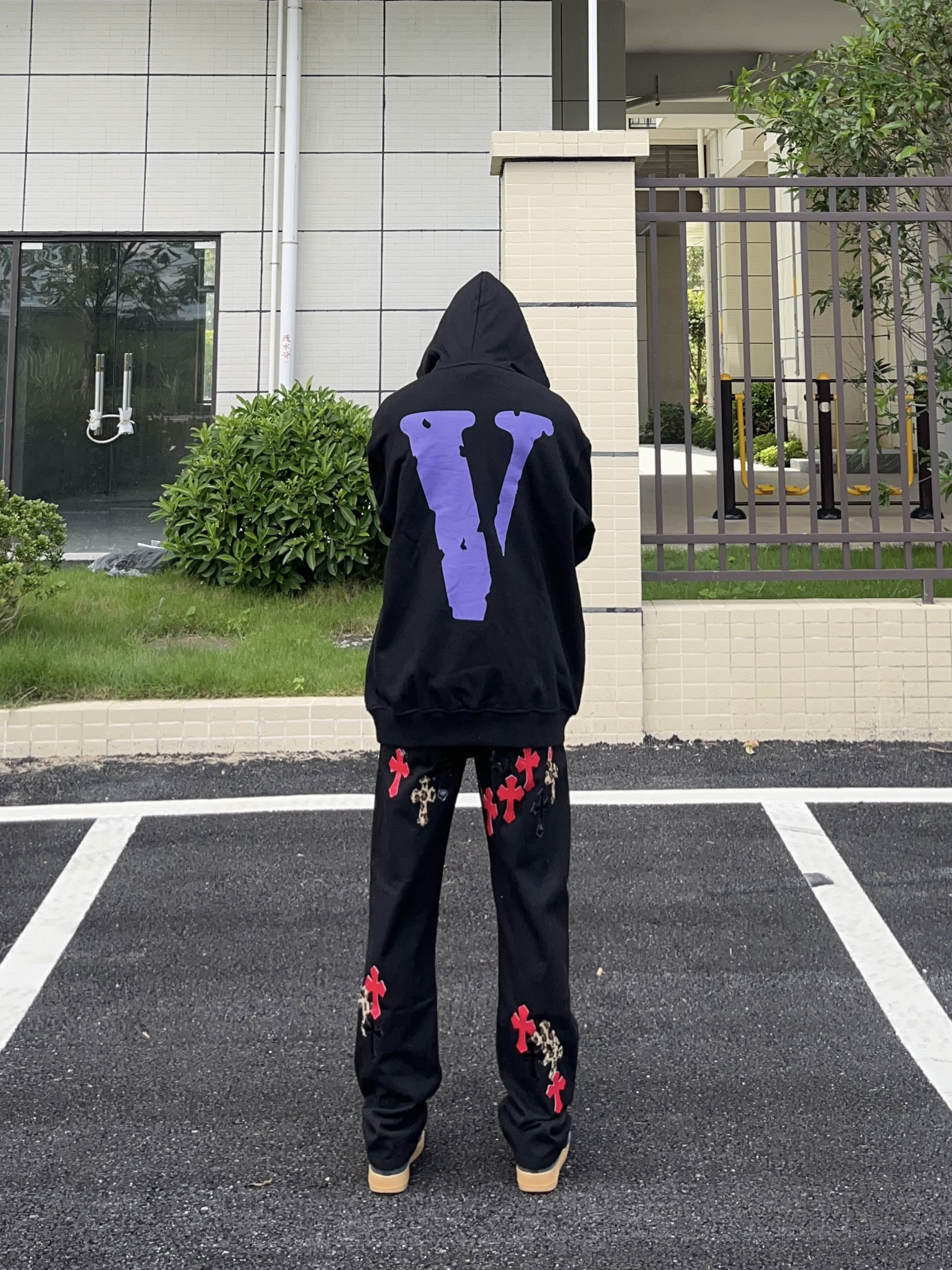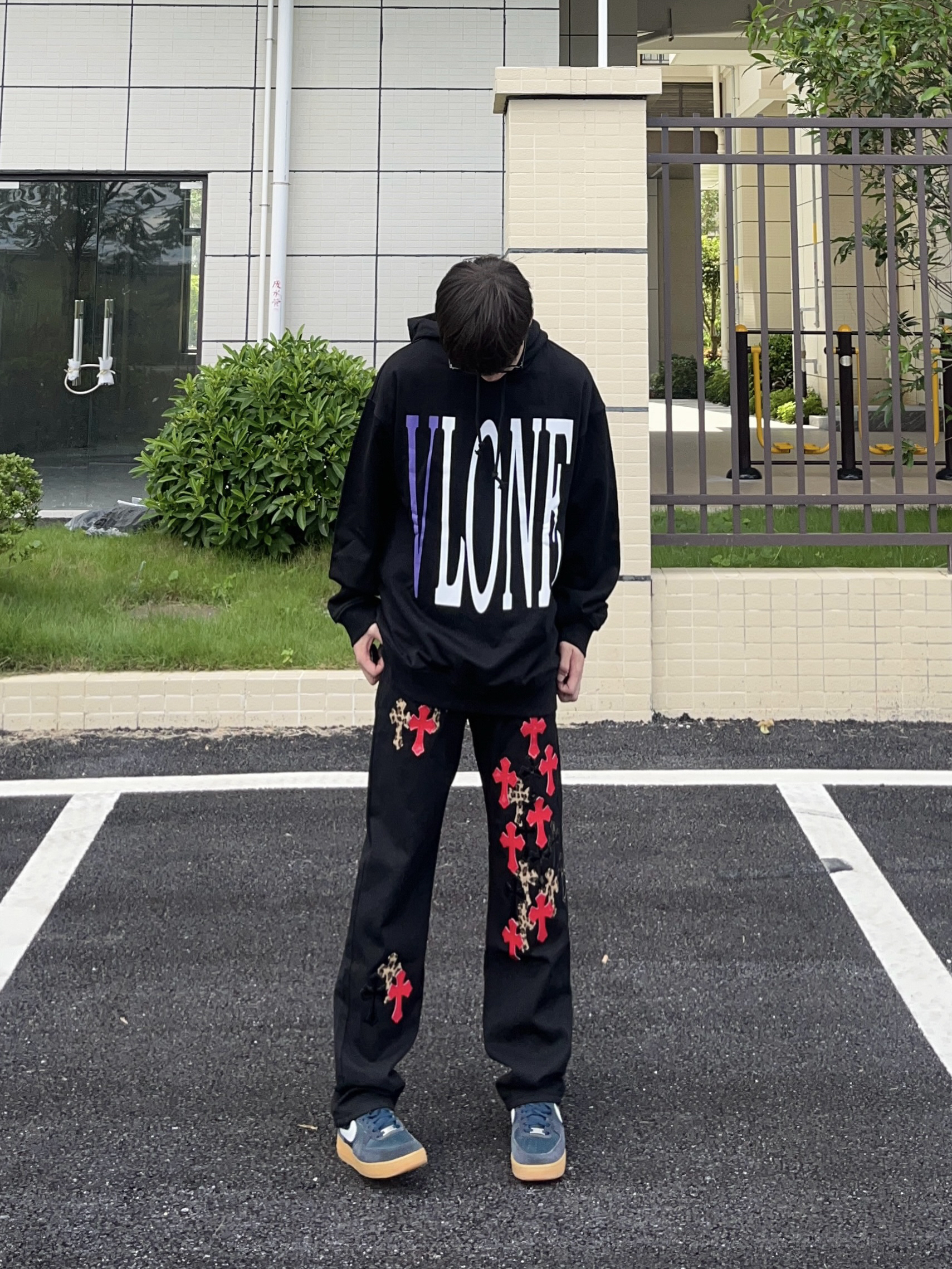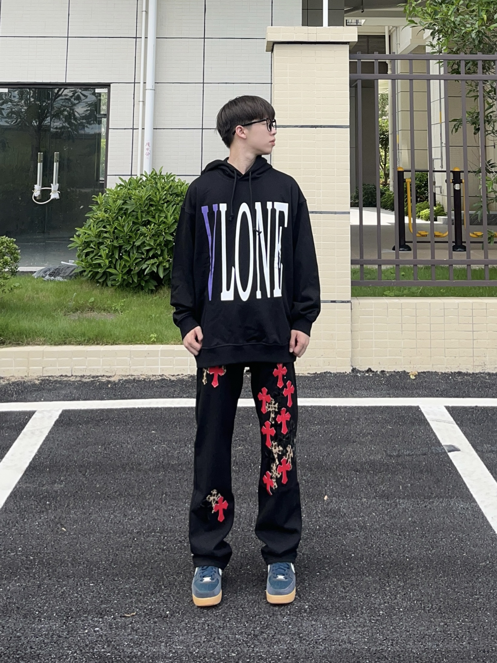 早秋来临 我也穿上了第一件Vlone卫衣👔 大v经典logo印花潮酷复古 上身质感满满🔥 再搭配一条十字架刺绣牛仔裤修饰腿型👖 一套搭配下来 末日感穿搭百搭又好看