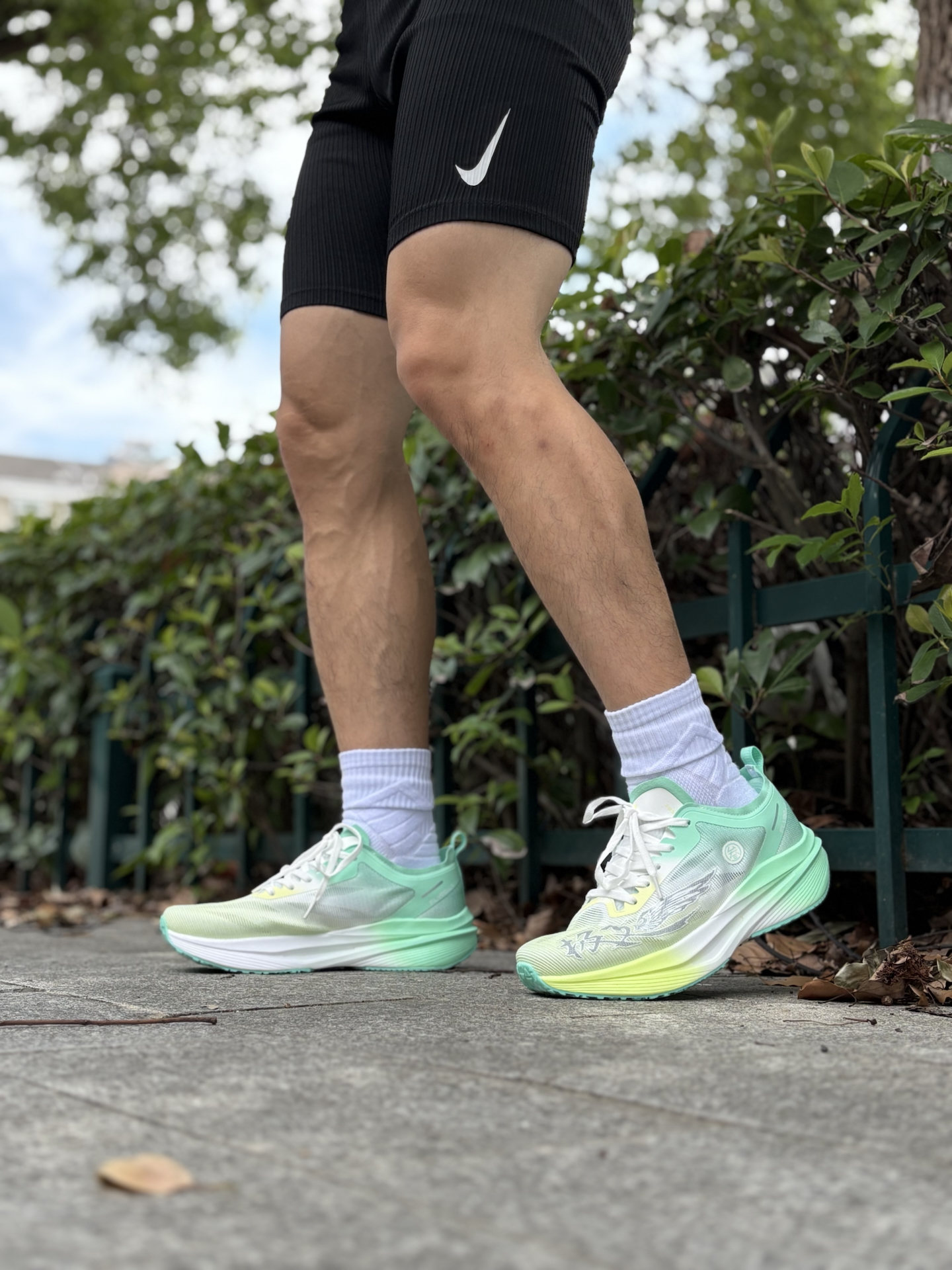 👟这双碳板跑鞋采用绞综鞋面材料,对脚部的包裹性很强,还是一脚蹬的设计,穿鞋很方便 🪝他这个鞋底弧形设计,可以更好地帮助我们在跑步时候减少力量的消耗,起到部分的助推感,有助于提升跑步的速度💨 📏平时穿40码的鞋子,这双鞋子会稍微有点点偏大,可接受范围之内,因为鞋带可以在调节 😍鞋领口处还有加厚,脚后跟紧紧贴合鞋子,起跑时候能后受力,跑个10公里也不回磨脚 🩳日常运动搭配 白色长袜子+运动短裤...