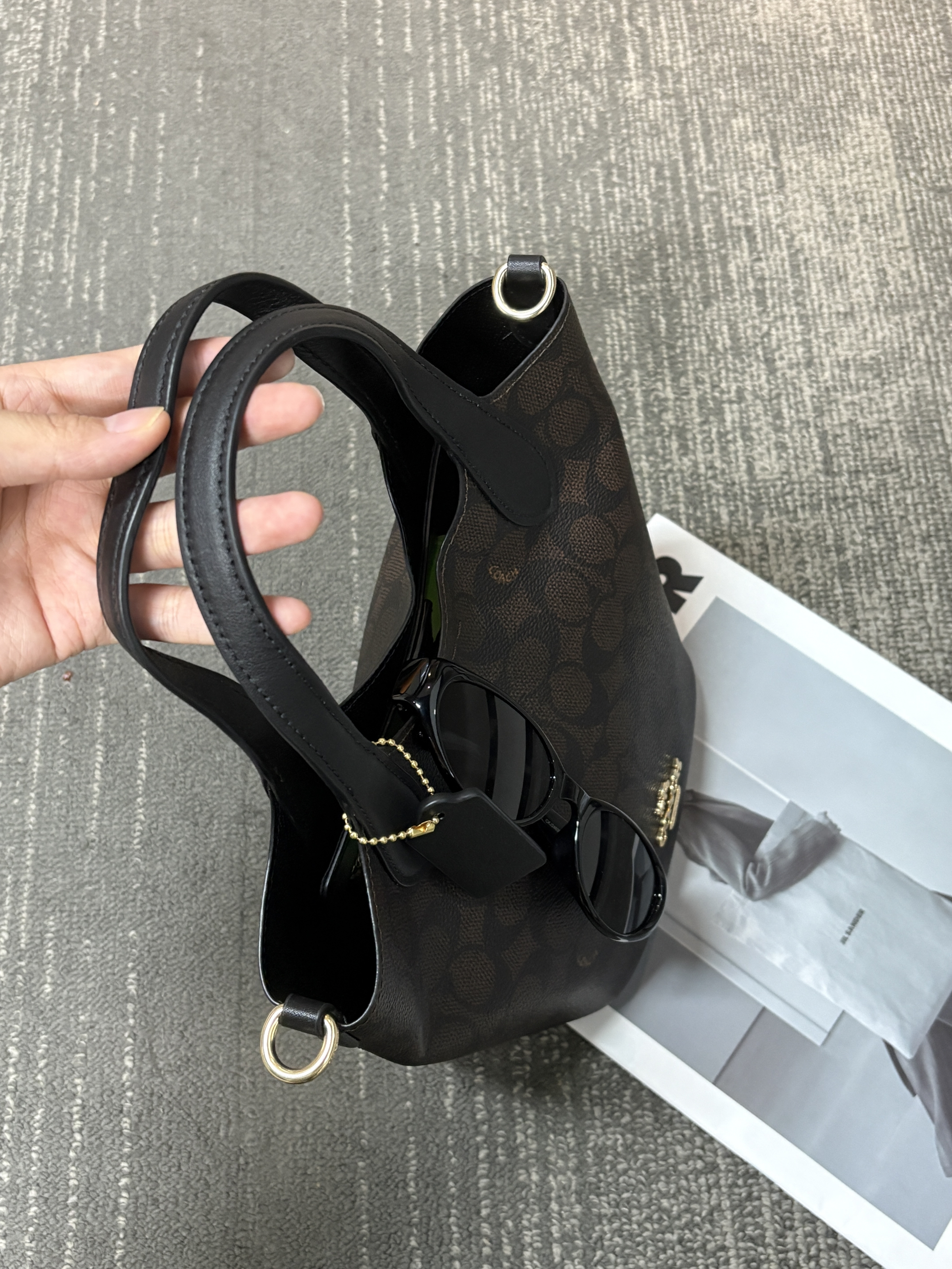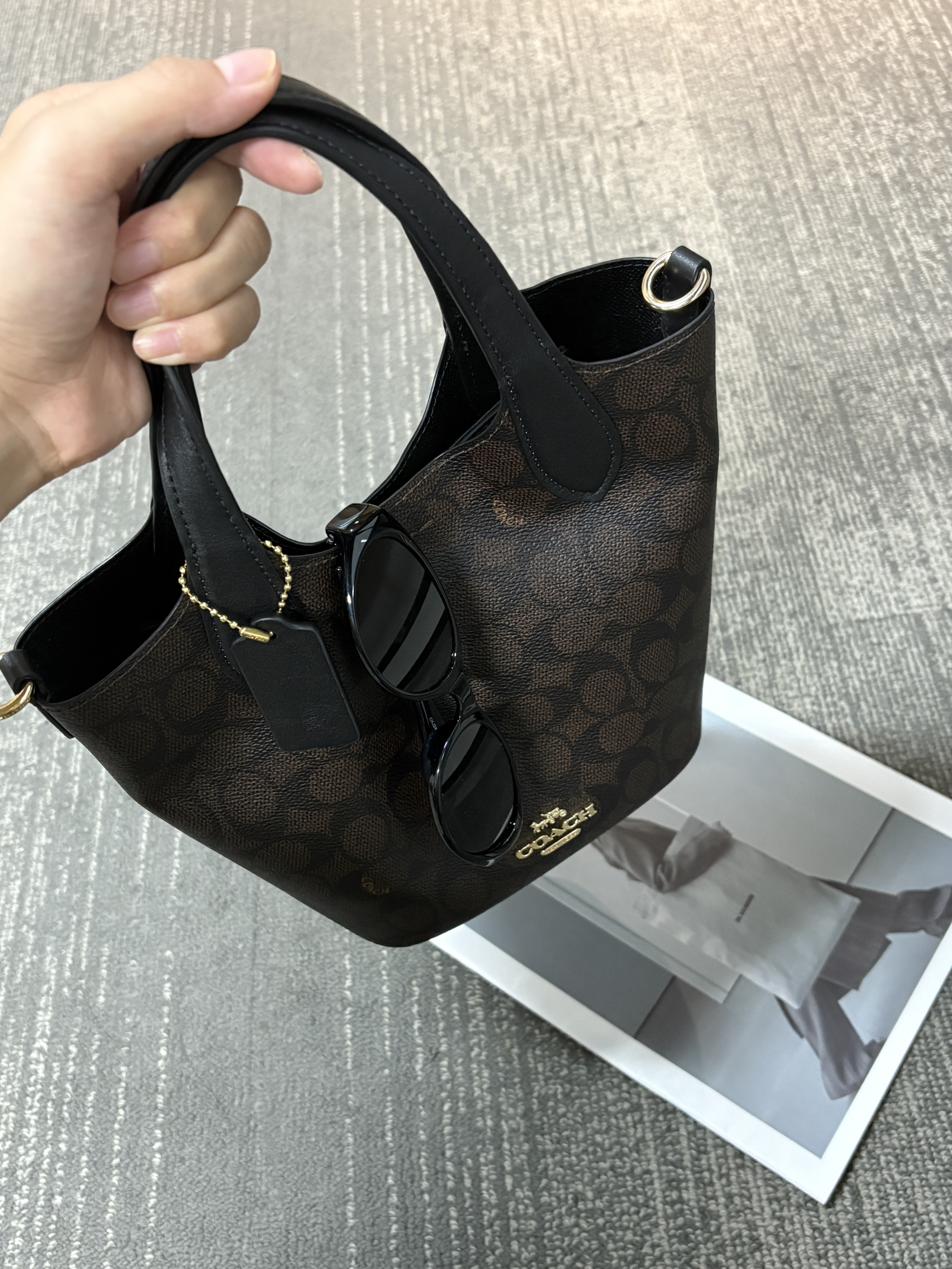 本篇笔记关联了Coach Hanna 17 小号 品牌Logo磁性按扣肩带可拆卸标志性涂层帆布拼光滑皮革水桶斜挎单肩包手提包 金色拼棕黑色、Coach Hanna 18 小号 磁扣开合人造革斜挎单肩水桶包手提包 胡桃木色等商品,为用户提供真实的使用体验和购买参考。
