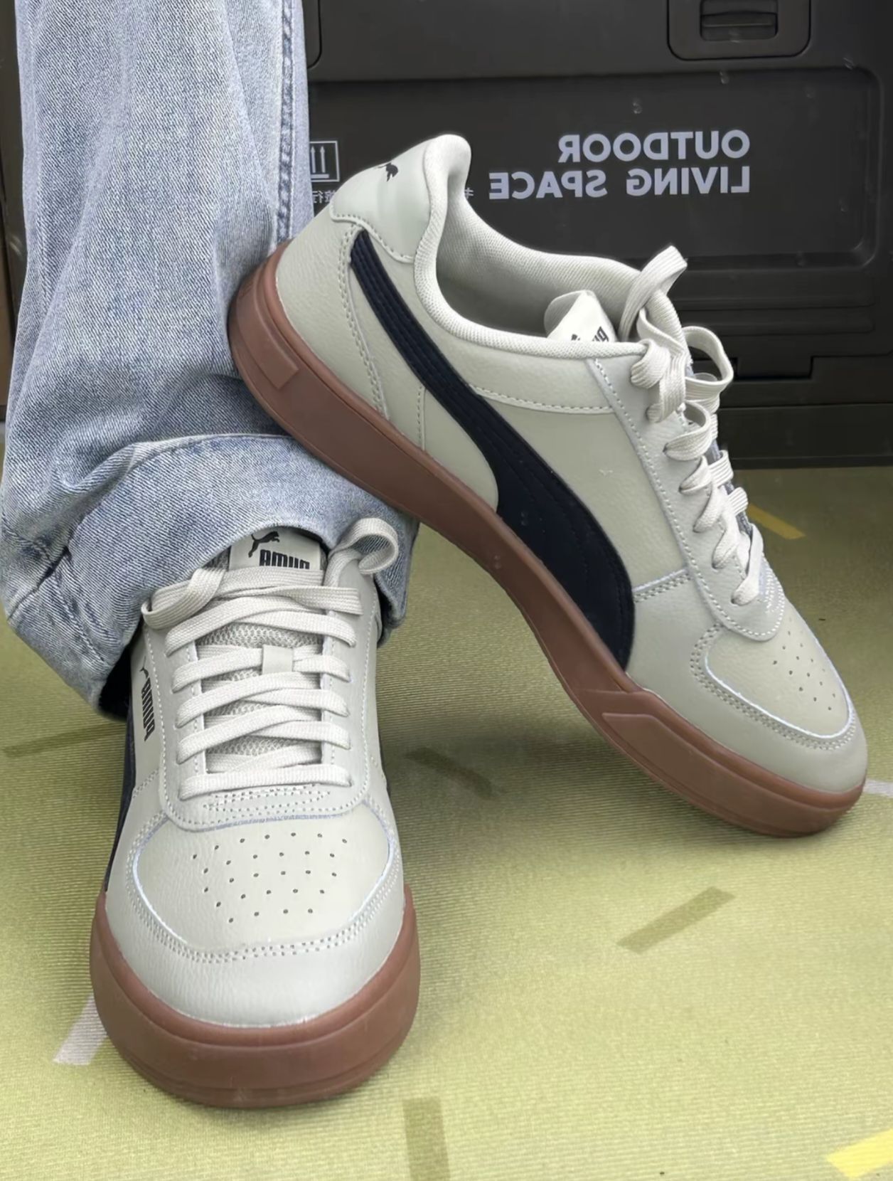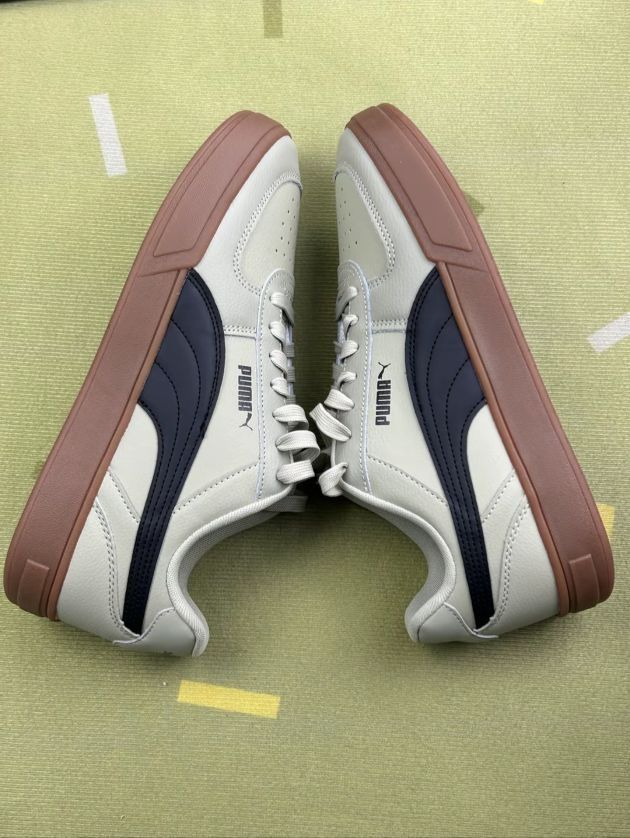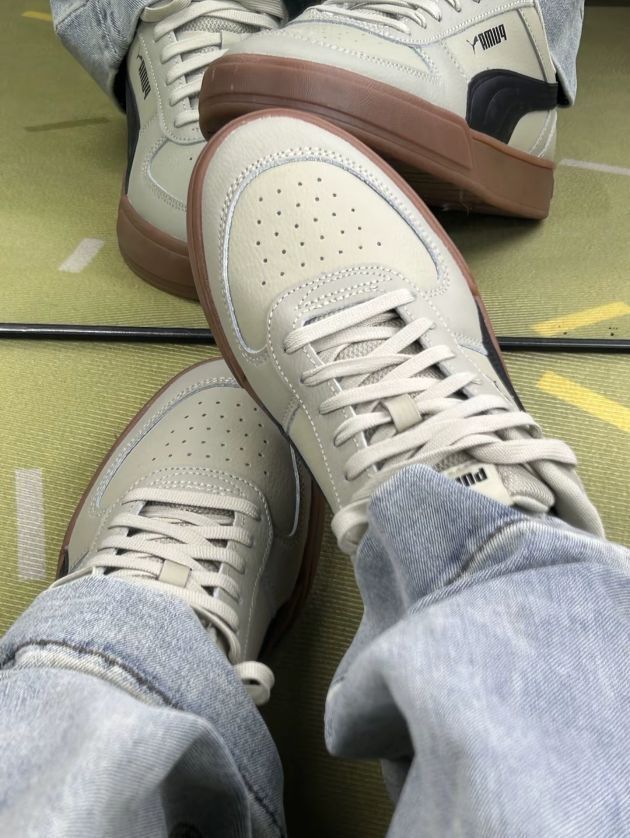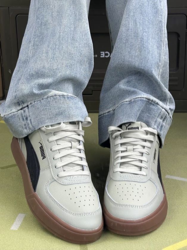 这双彪马板鞋,先说说穿着的感觉。皮质鞋面还算软和,平时走路久了,脚也不会觉得特别累,但也没到踩屎感那种程度😅。搭配牛仔裤还有工装裤啊都挺日常的,浅灰配生胶底,风格比较百搭。 但缺点也很明显,鞋面不太耐脏,稍微沾点灰就看得出来,得经常擦🧽。而且鞋型有点偏窄,脚宽的朋友穿久了会觉得挤脚,刚穿那几天得适应适应。另外,透气性一般,夏天穿的话,脚容易闷出汗。 总的来说,就是双很普通的日常板鞋,没什么特...