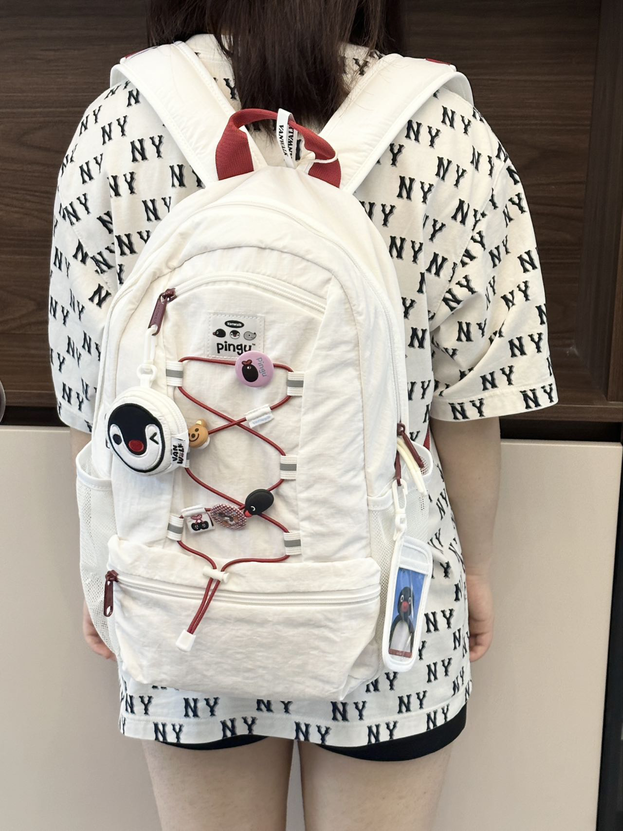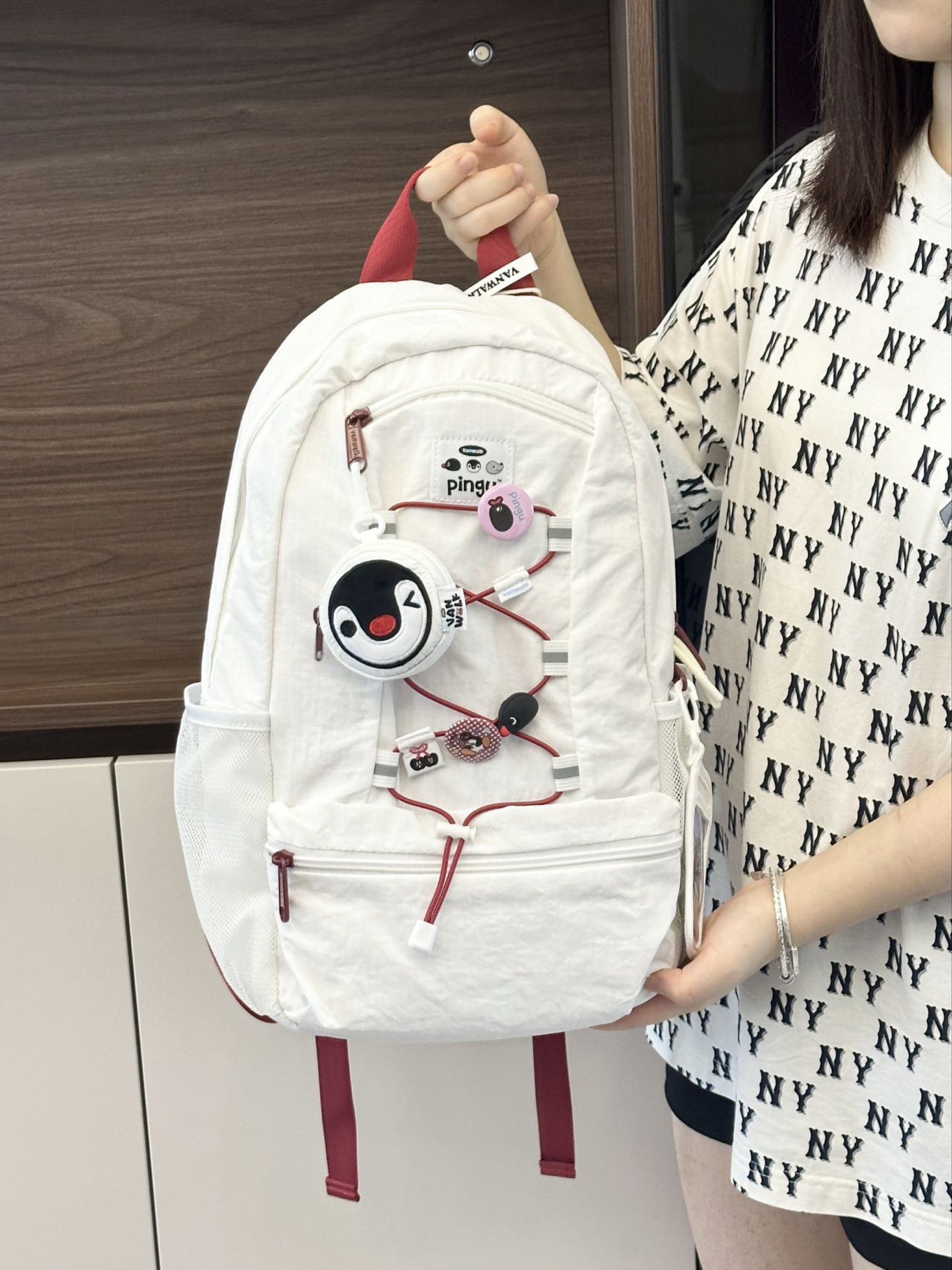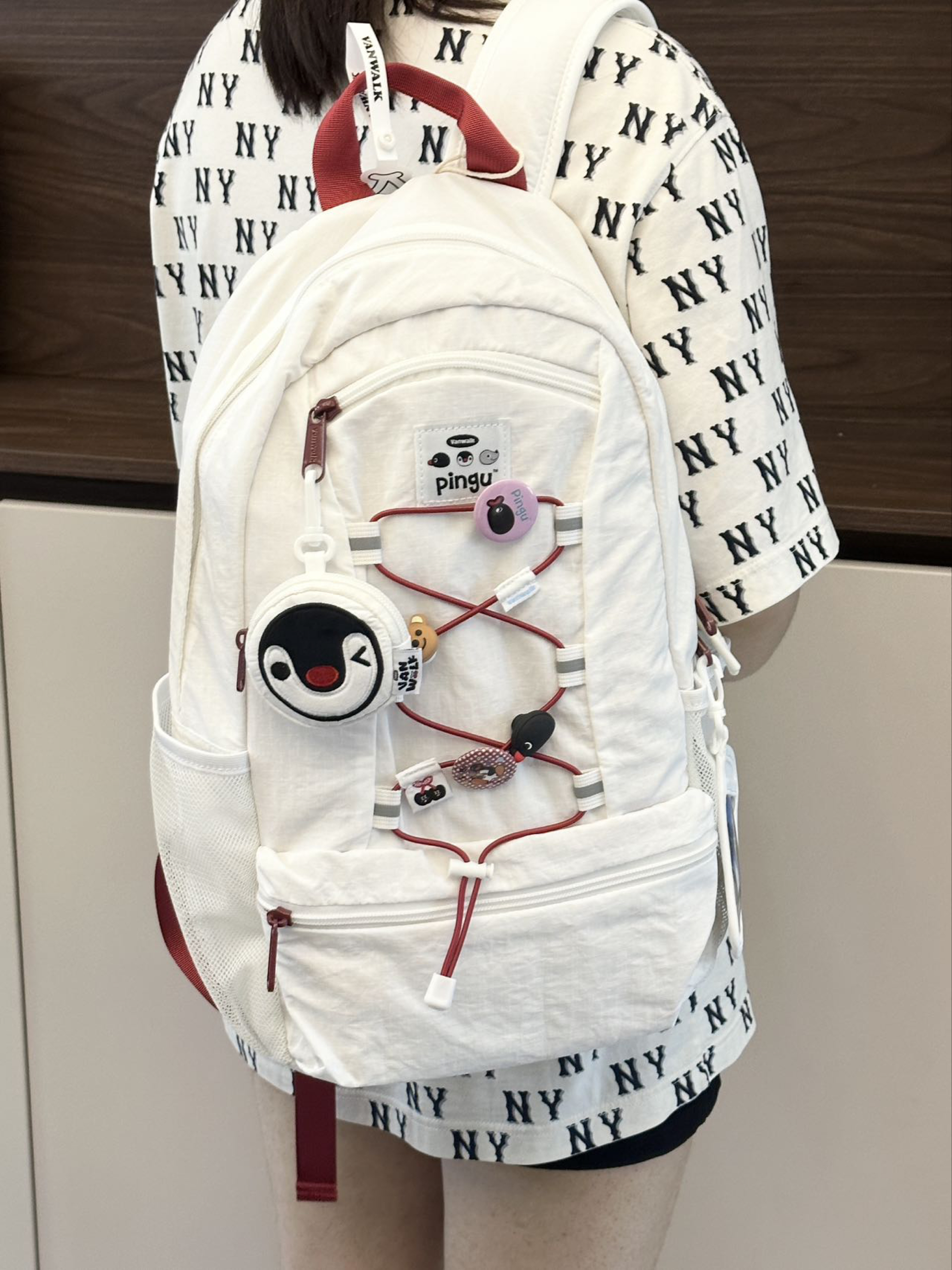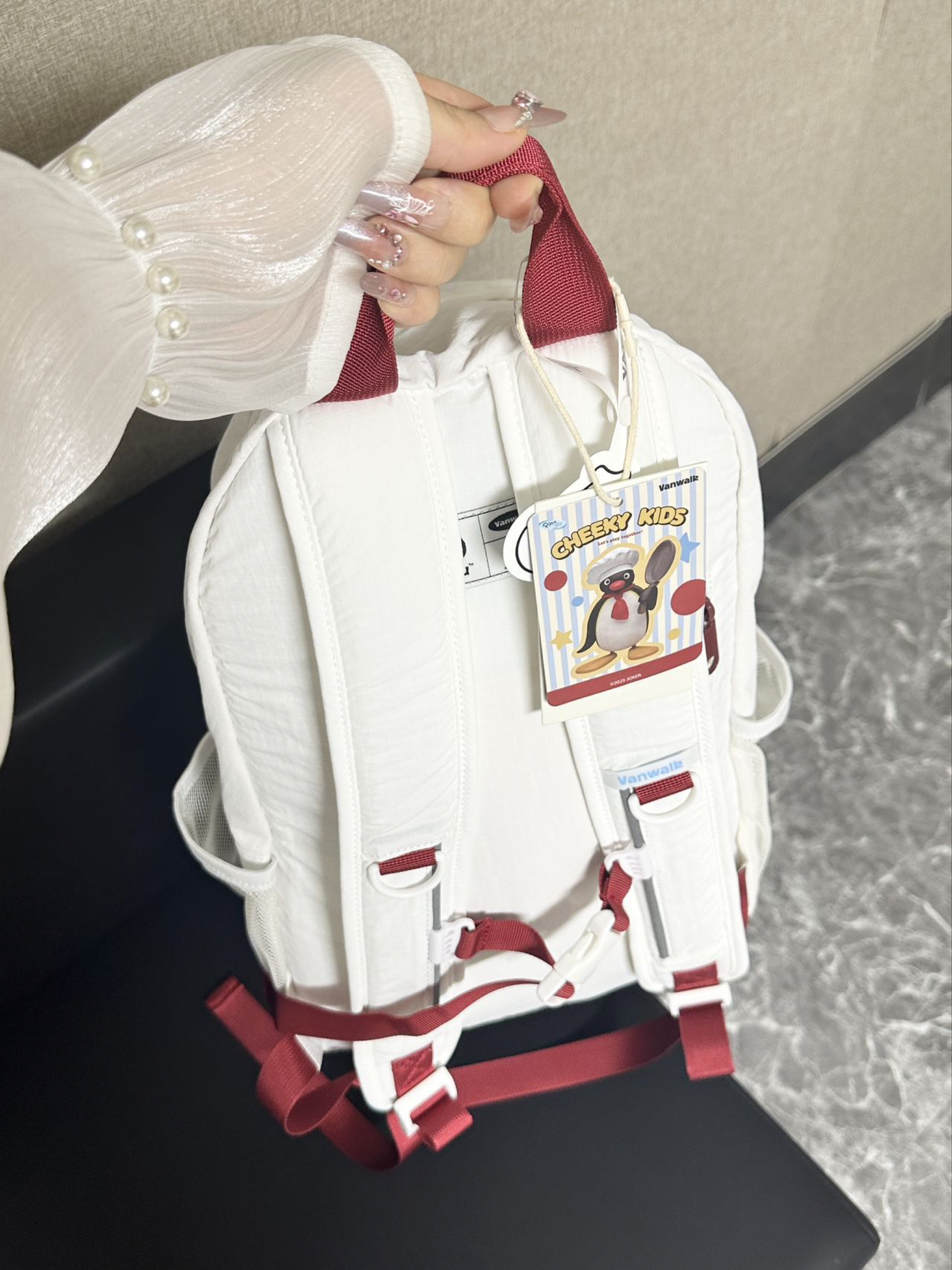 当然素介个vanwalk&pingu双肩包 不得不说介个pingu联名尊滴好可爱呢 红白的配色我觉得满满少年感呢! 容量真的好大适合我们装课本方便呢 介个包包好适合女孩子呢 旅游带出门好适合呢